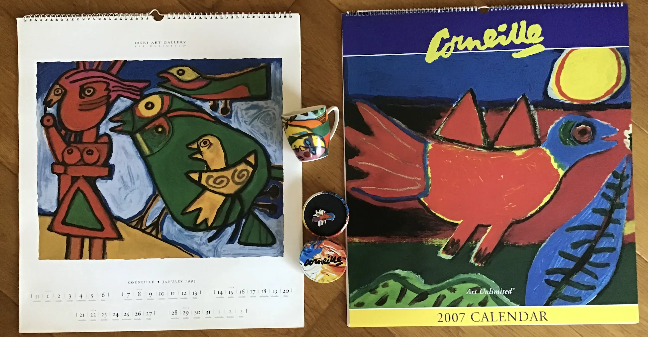 Corneille items Zilveren broche in originele verpakking, Kalender van Jaski Art 1995 Kalender Art unlimited 2007 Corneille mok, gesigneerd Ales is uitstekende conditie Kalenderbladen mooi zwaar papier en stuk voor stuk prachtige items om in te lijste
