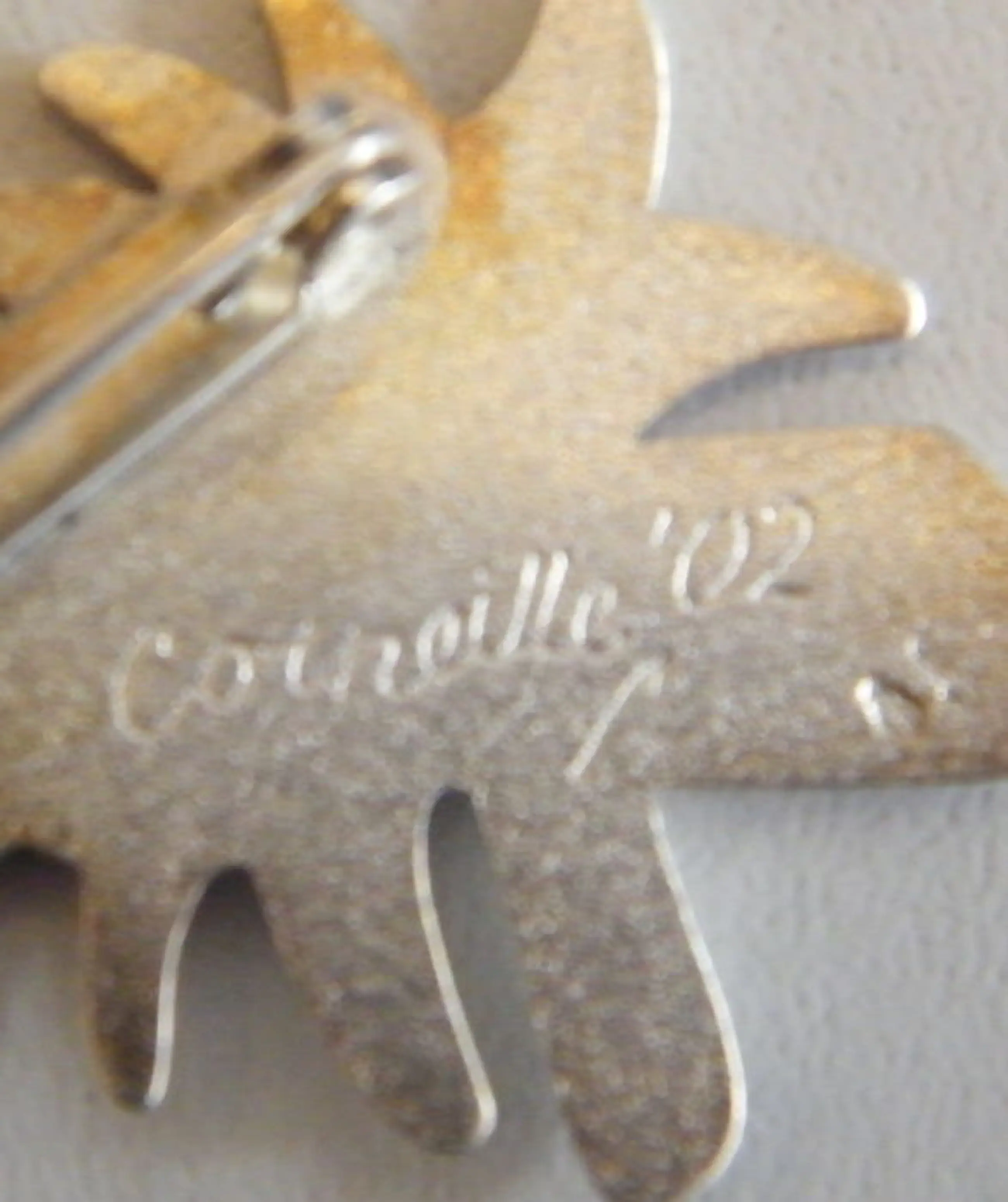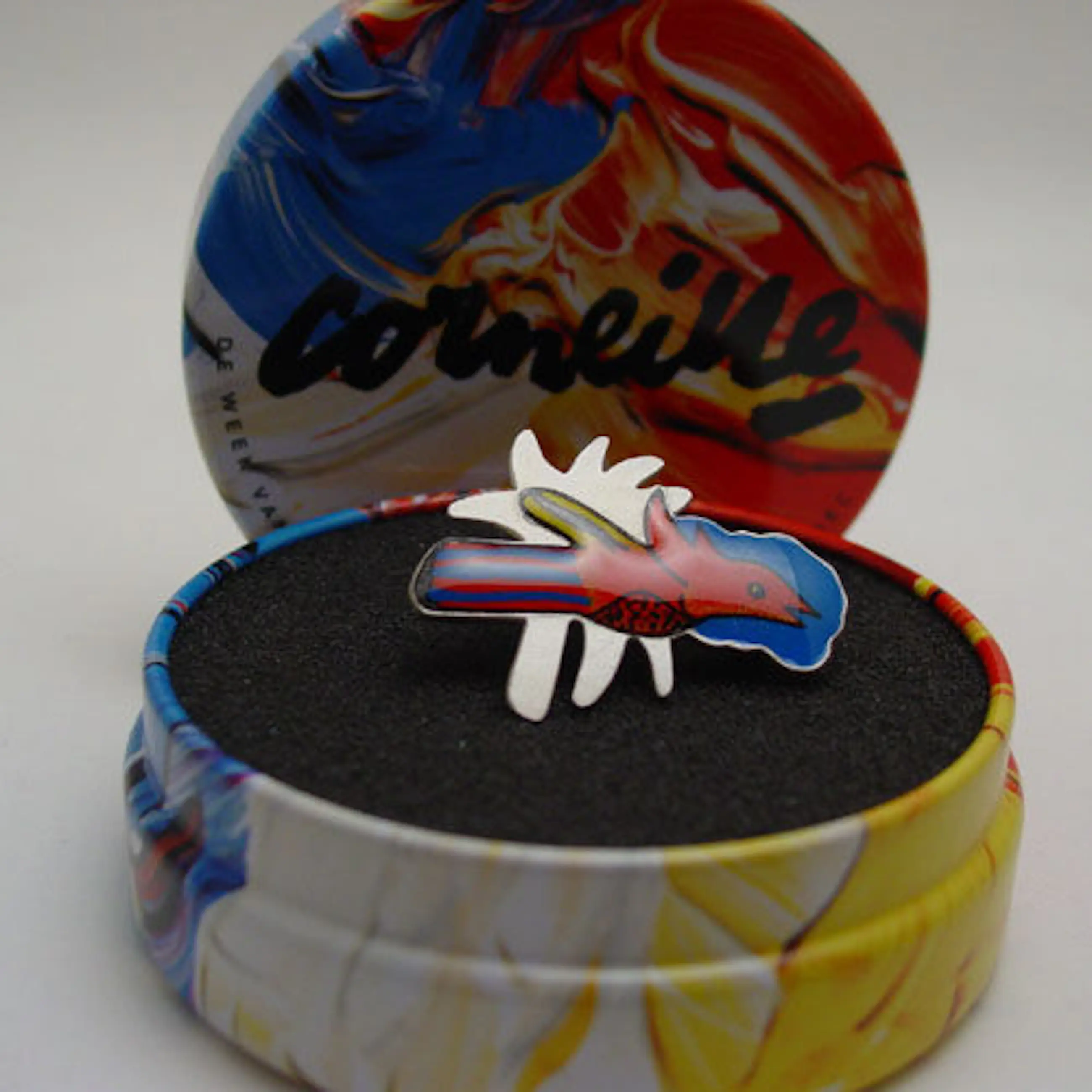 Deze leuke broche is gemaakt van zilver met op de voorzijde een kleurrijke vogel in email. Op de achterzijde staat de signatuur van Corneille en het zilverkeurmerk. De broche wordt geleverd in het bijbehorend originele doosje, eveneens van Corneille.