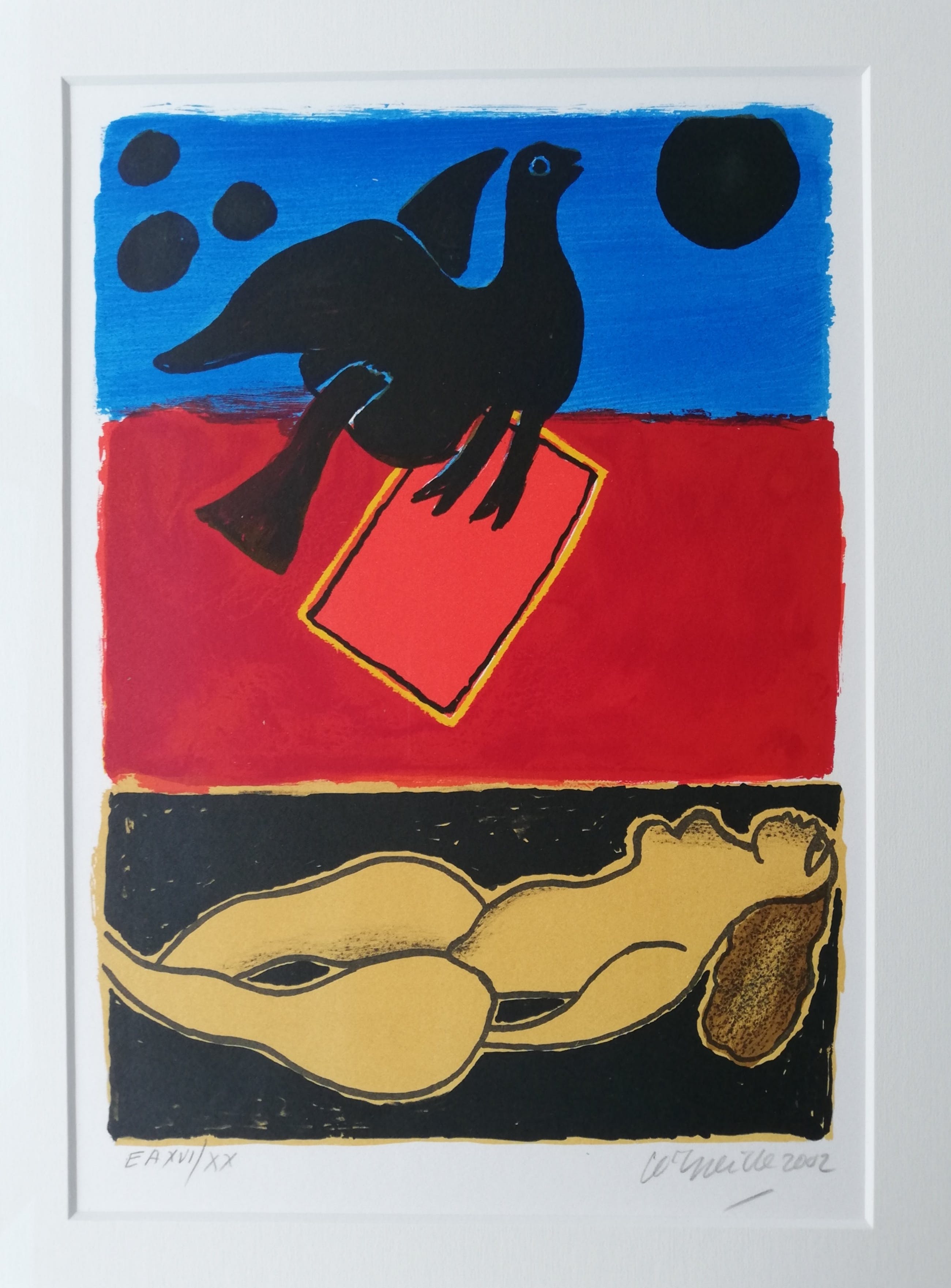 Schaarse lithografie van Cobra kunstenaar Corneille. Betreft een epreuve d'artiste ofwel kunstenaarsexemplaar in een oplage van 20 stuks. Dit is nummer 16. Handgesigneerd en genummerd in potlood.