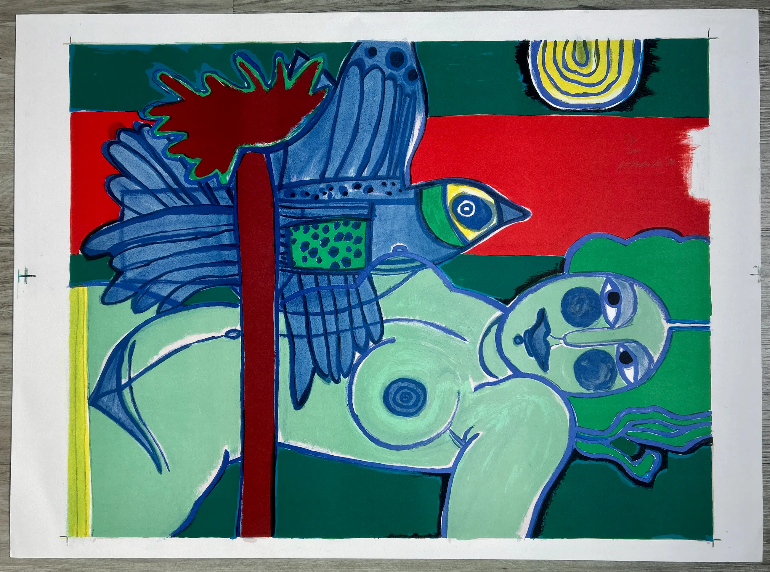 Conditie: zeer goed. Rechtsonder hoek vel heeft licht vouwtje, zie foto's. Editie: 52/200. Wordt zorgvuldig verpakt en verzekerd verzonden.