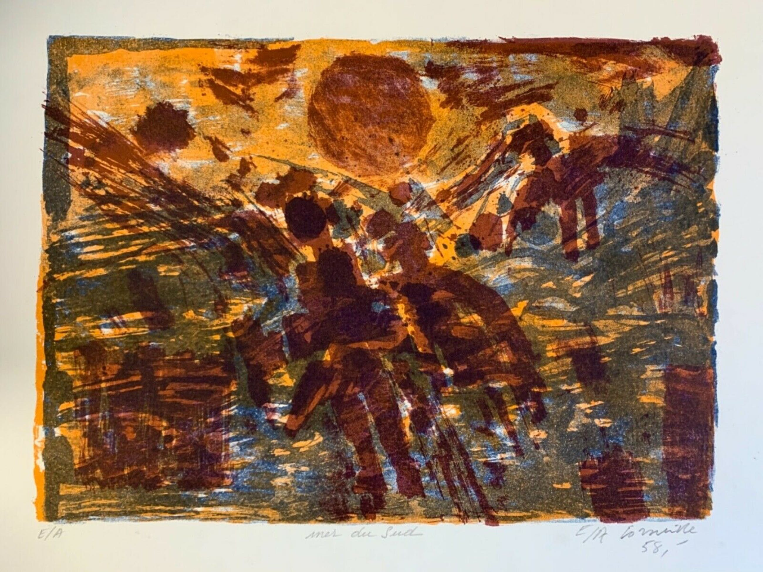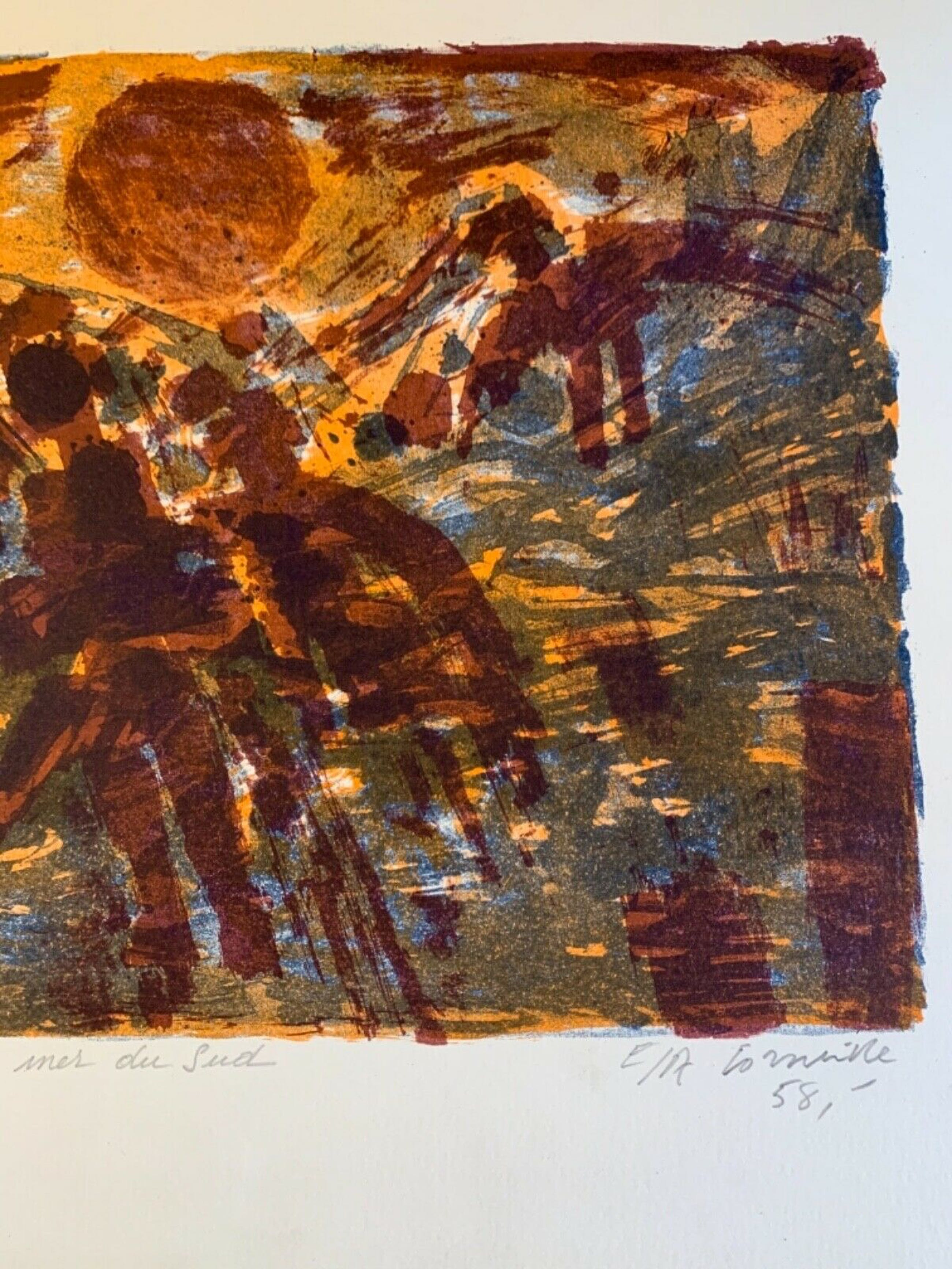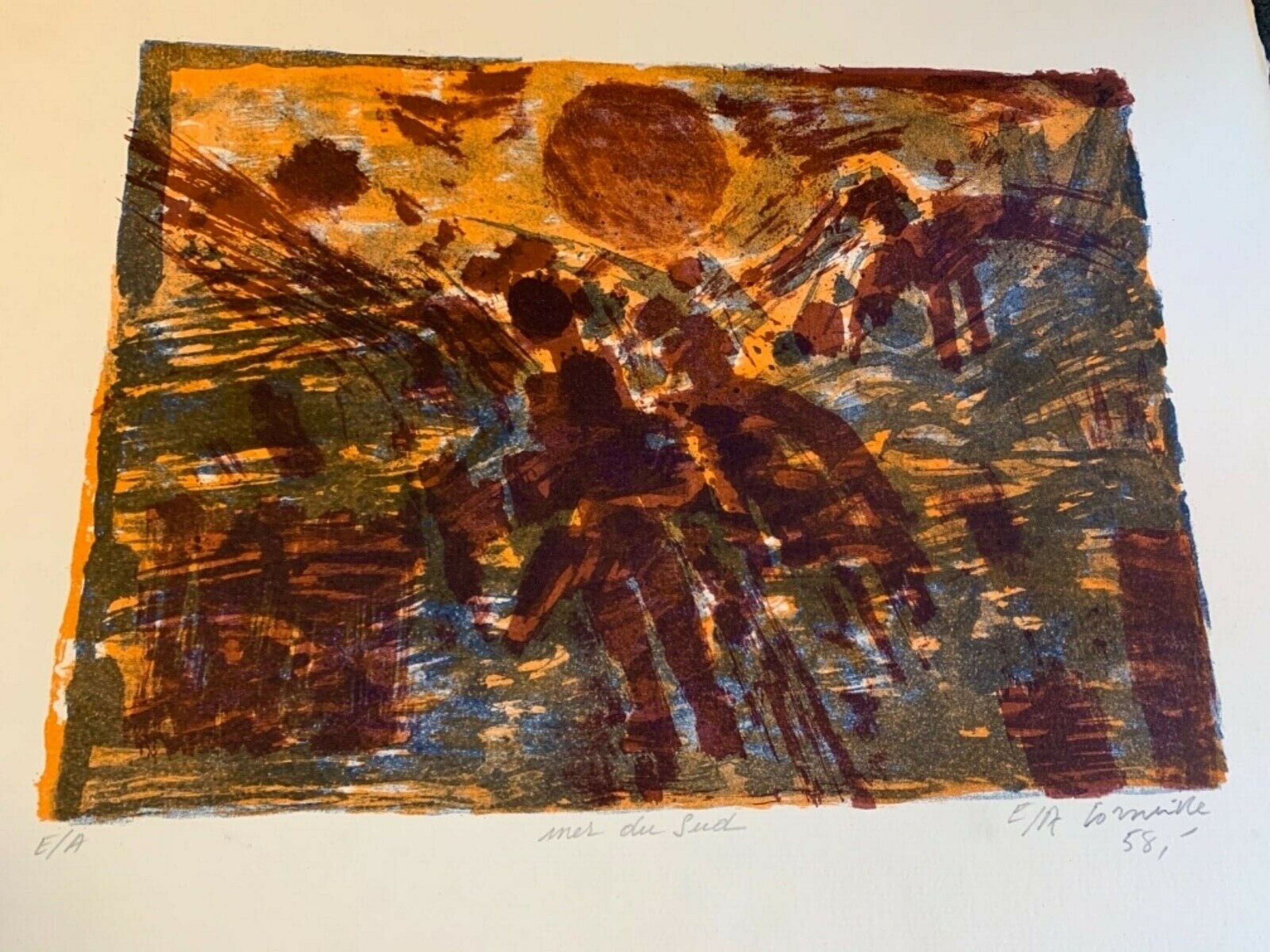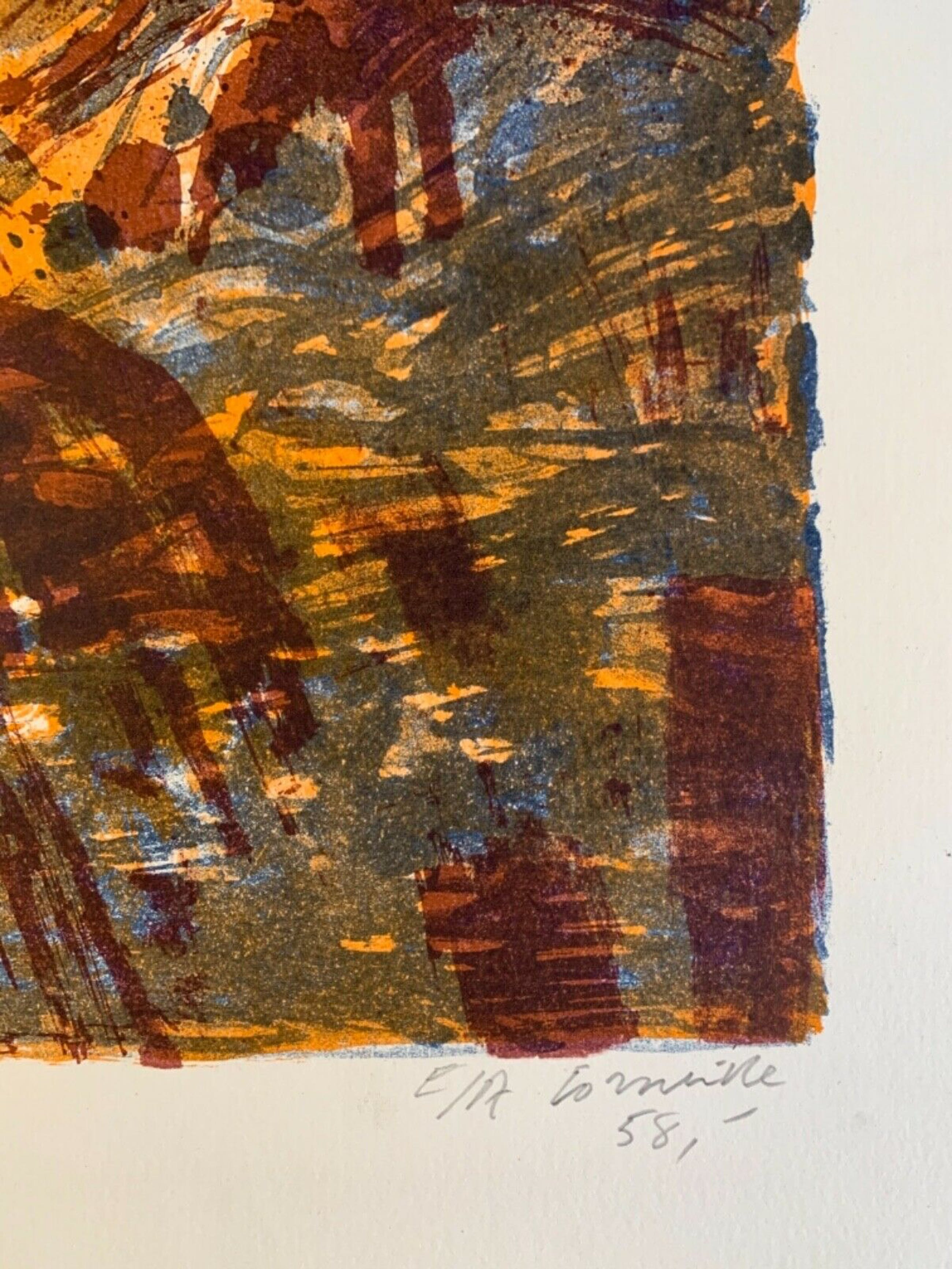 Originele litho uit 1958 van de schilder-reiziger, tevens stichtend lid van de Cobra-groep met Asger Jorn, Karel Appel, Constant, Dotremont, Alechinsky en Jacques Doucet.