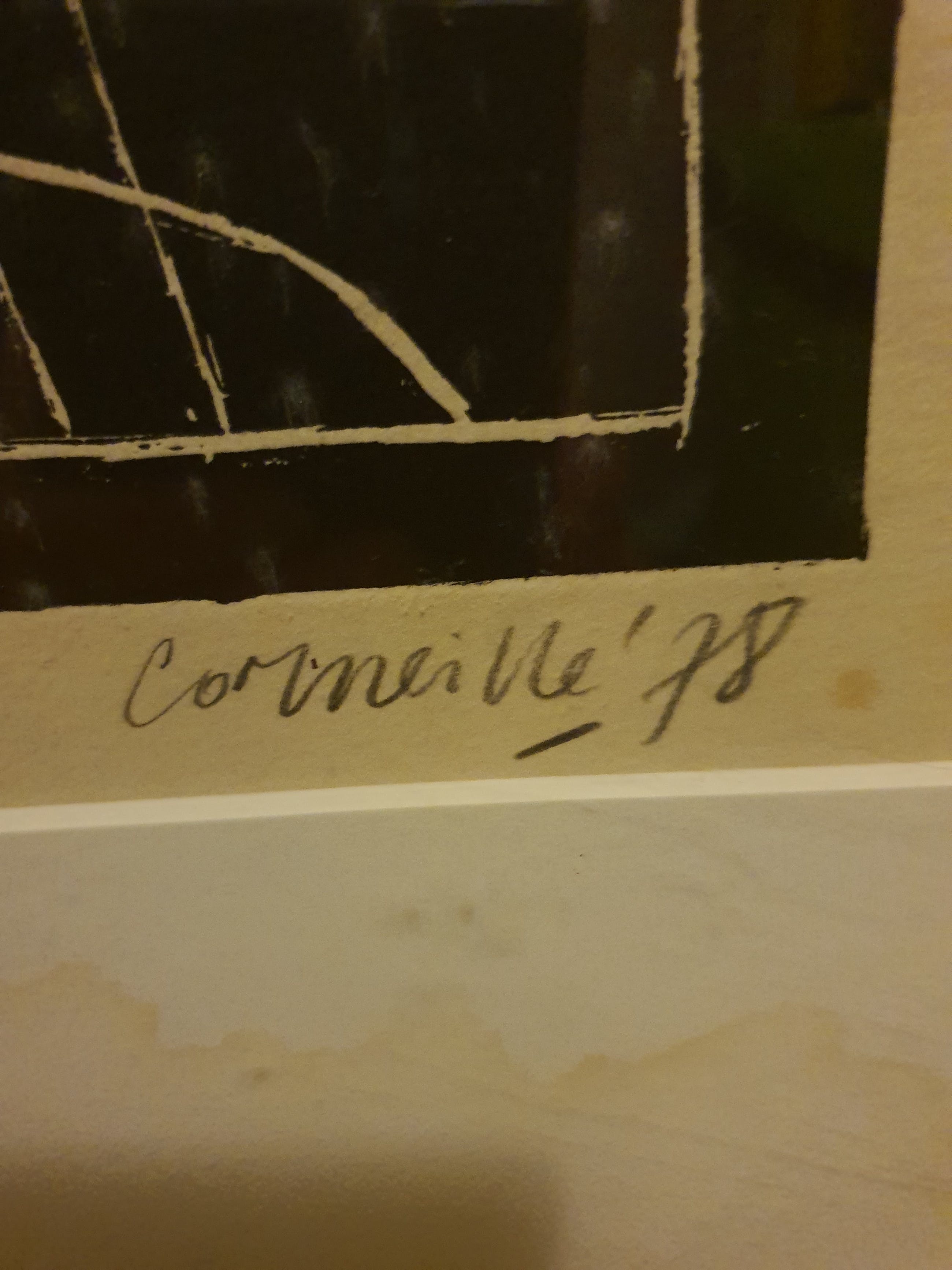Zwart wit werk van Corneille, beperkte oplage. Het heeft lange tijd op kantoor gehangen. Lijst moet vervangen worden.