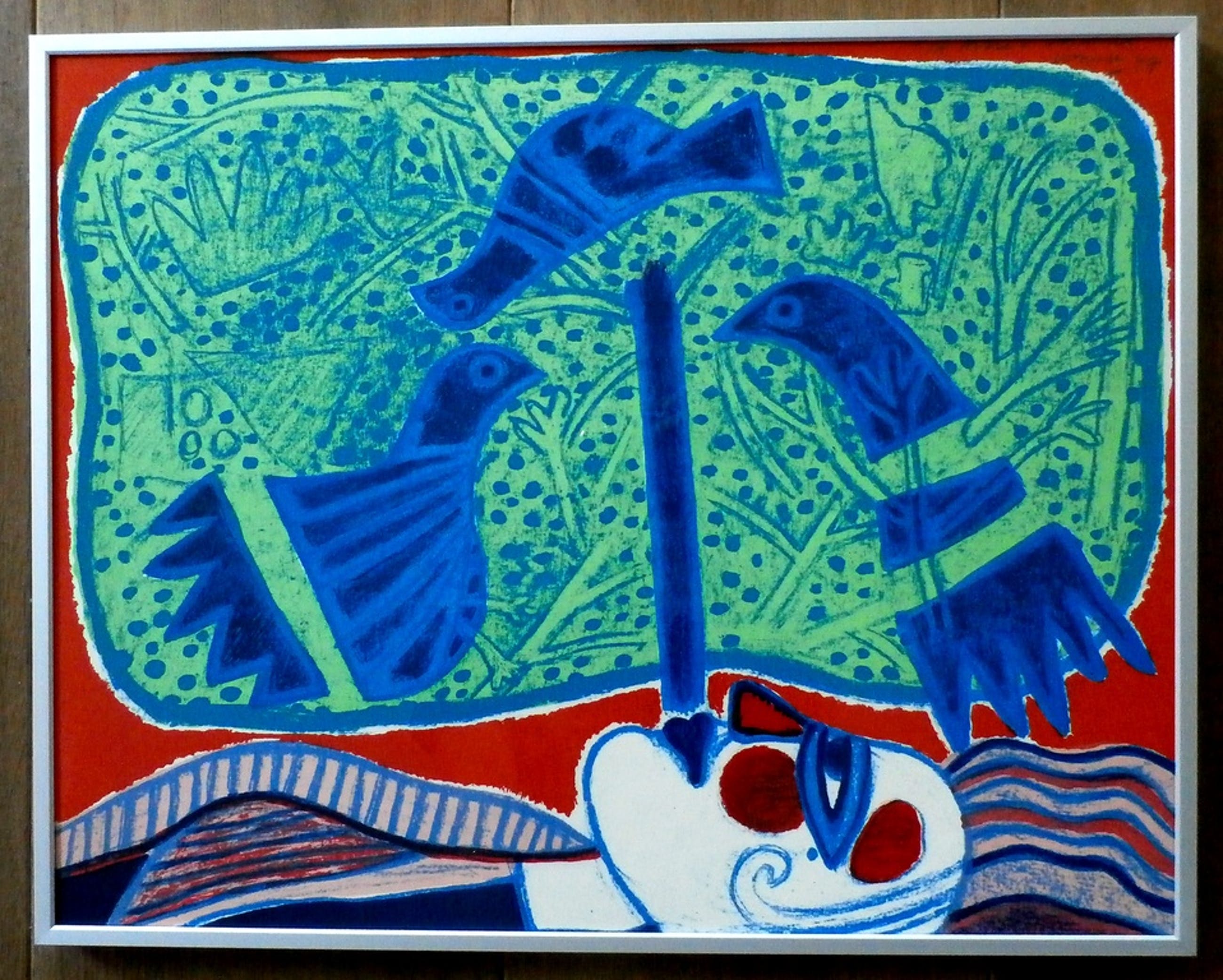 Ingelijste litho van Corneille met de titel: Autre a oiseaux. Jaar: 1977. Afmetingen incl. lijst: H41 x b51 cm. Afmetingen voorstelling: H40 x b50 cm. De authenciteit van dit werk wordt volledig gegarandeerd. Een certificaat van echtheid kan, op aanvraag, worden meegestuurd.