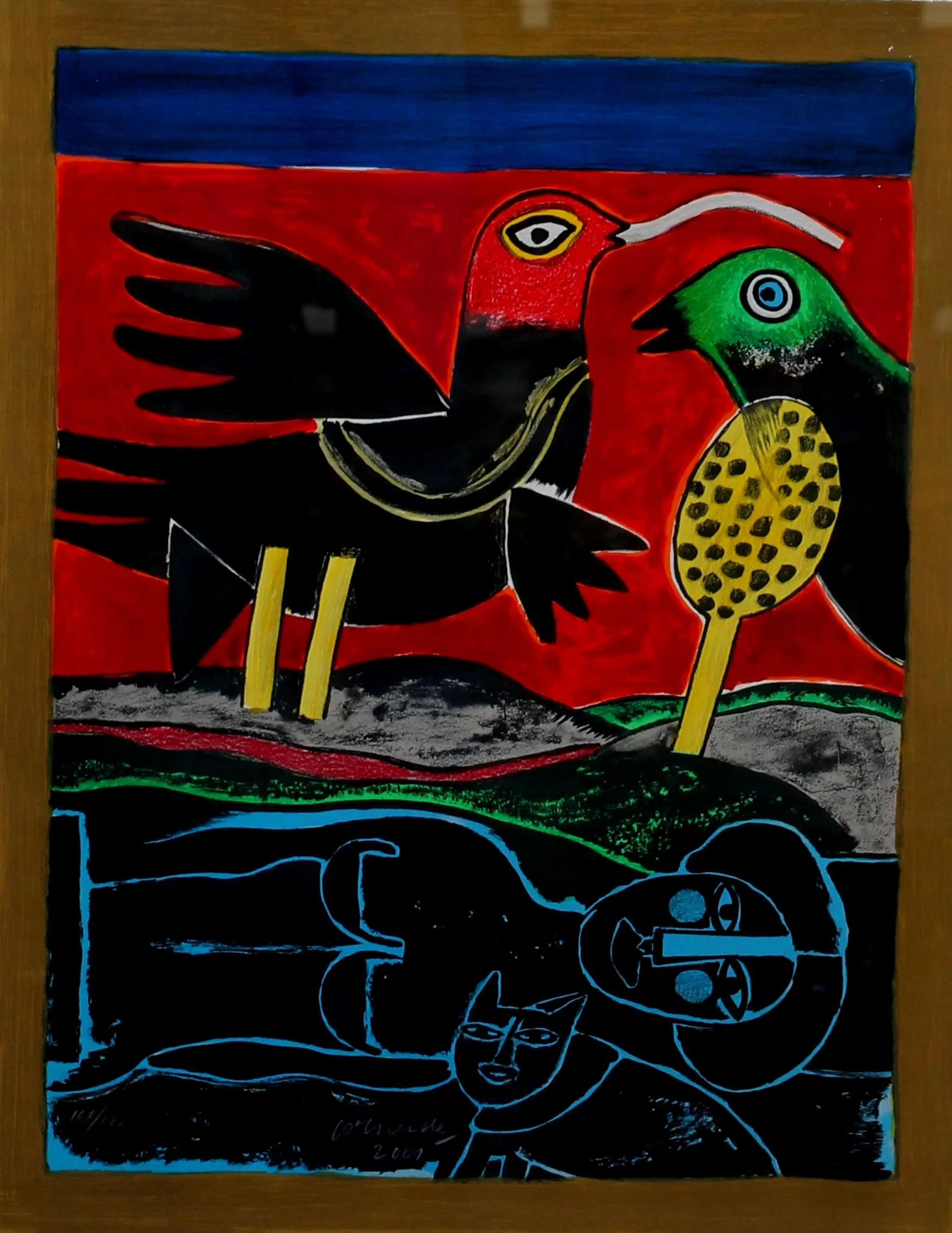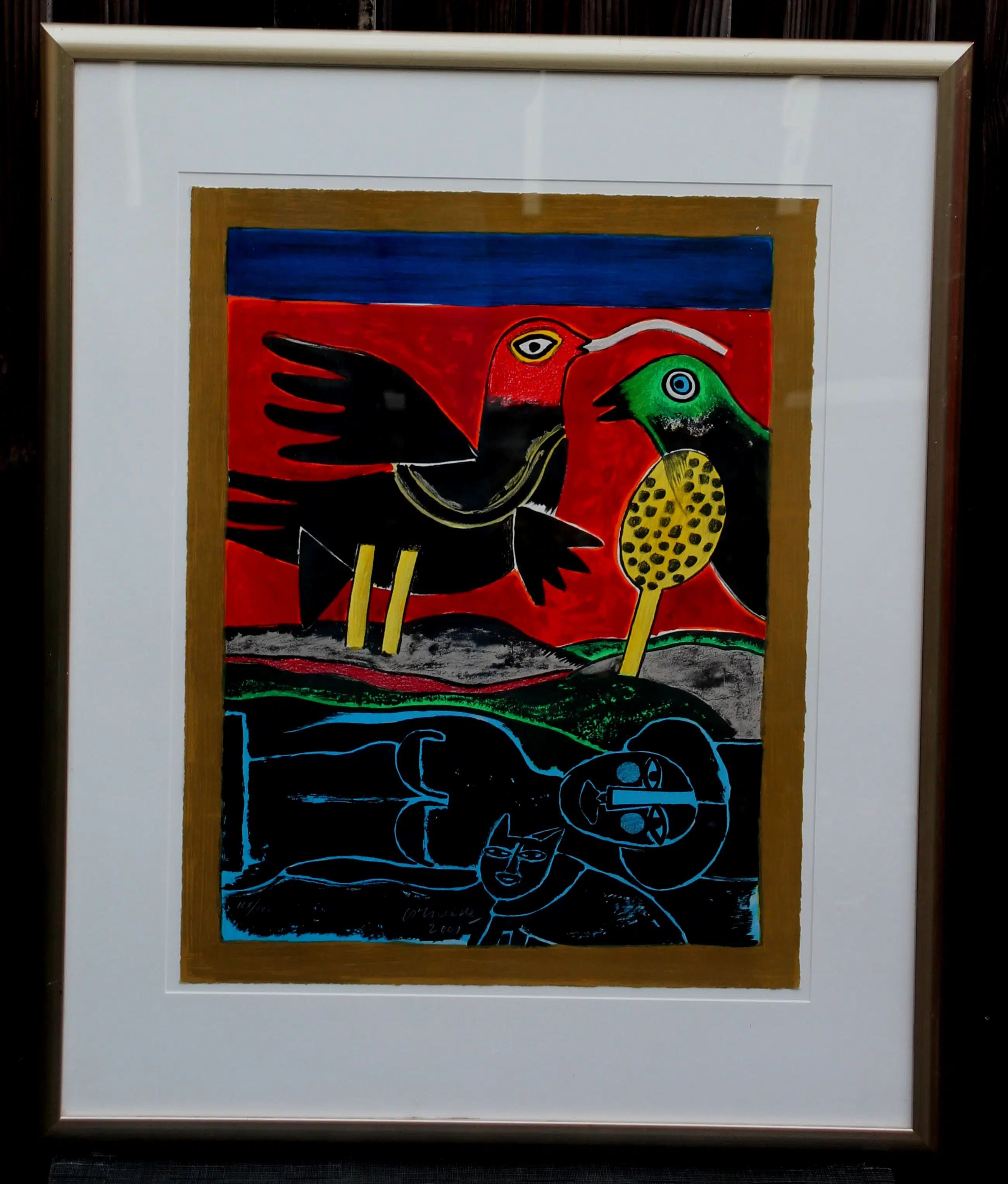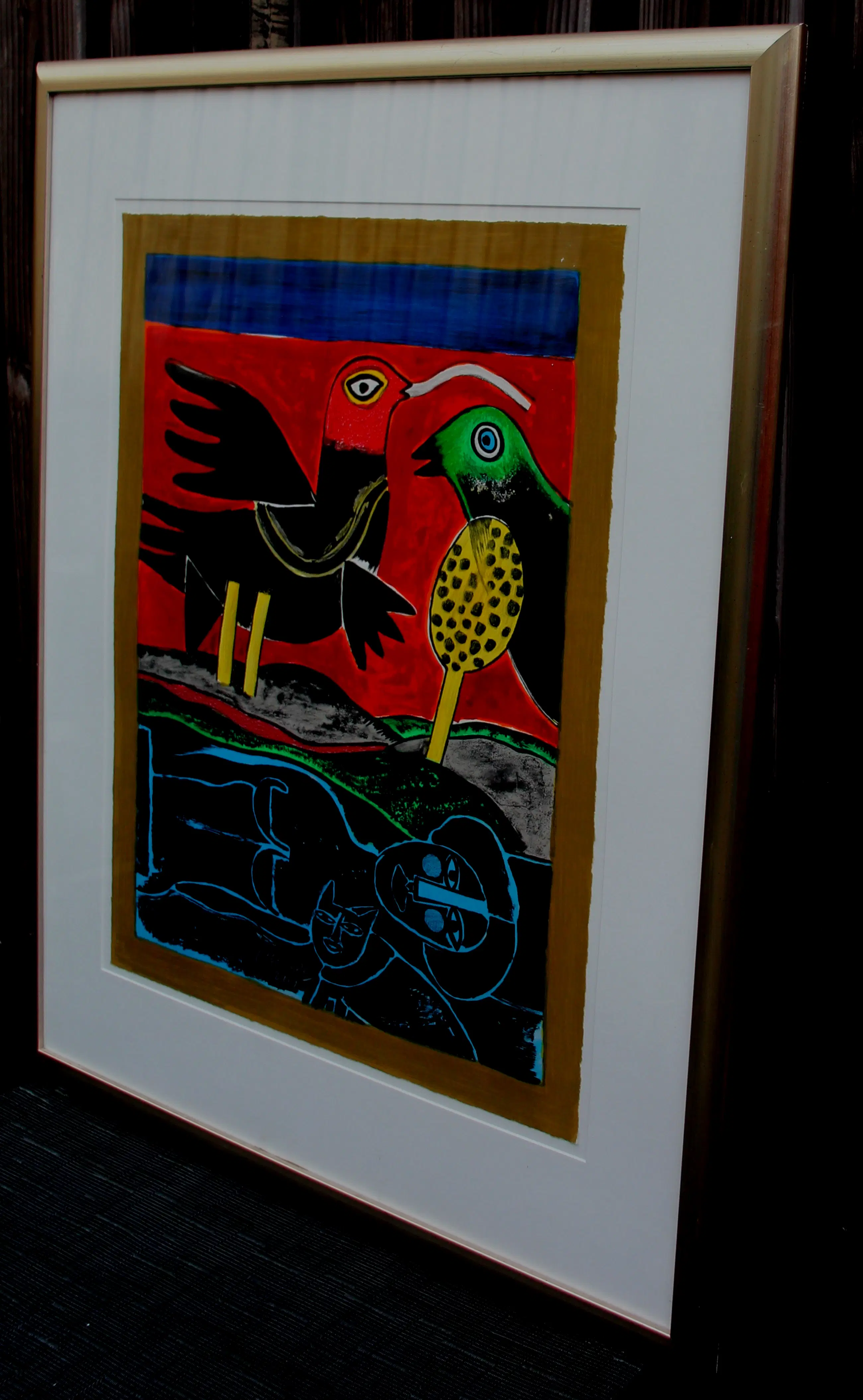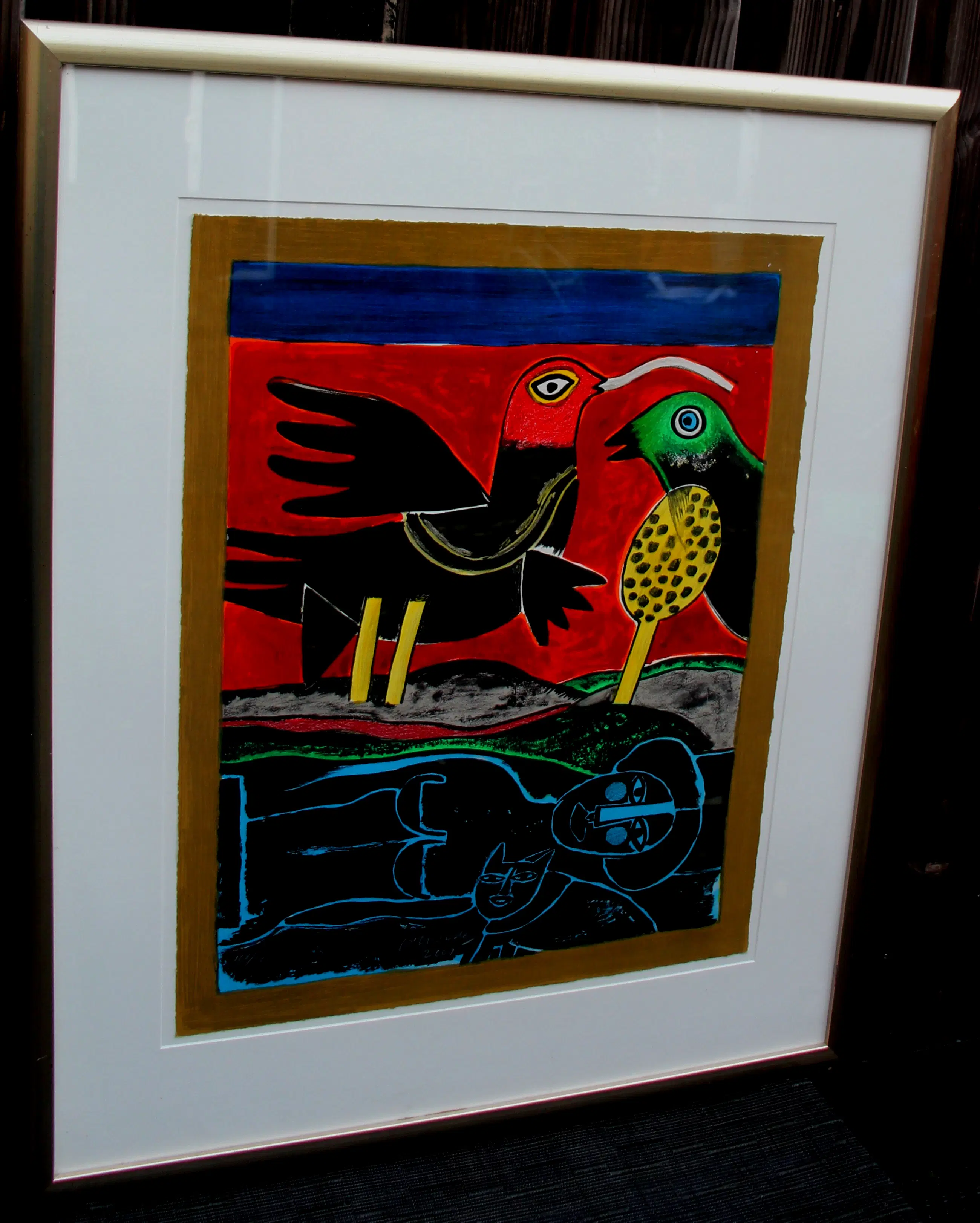 Corneille - Ingelijste litho: Oiseaux en fête - 2001