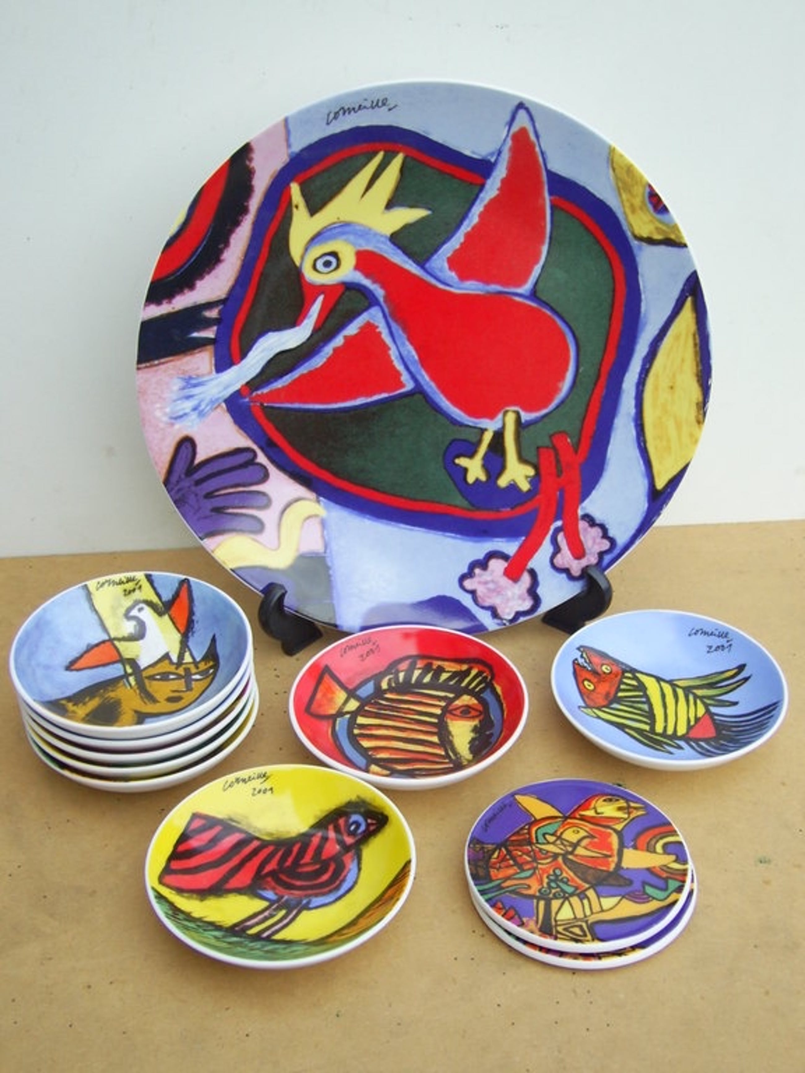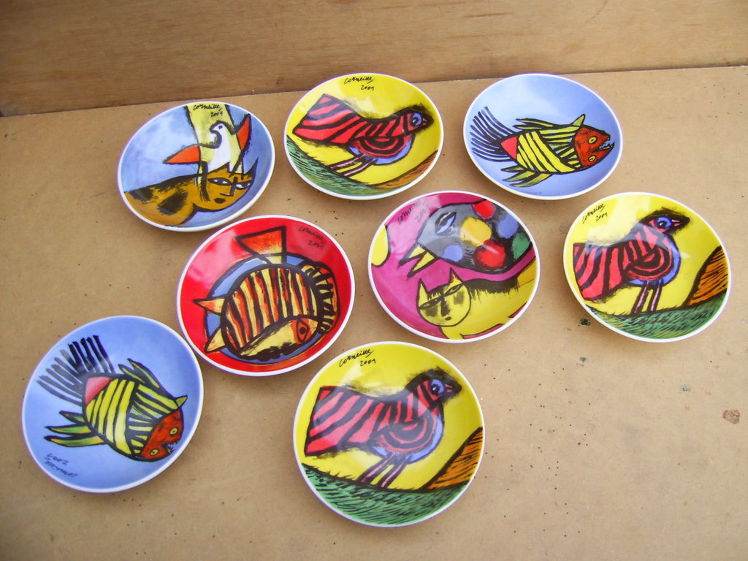 Wandbord met 8 schaaltjes en 2 onderzetters van Corneille.
