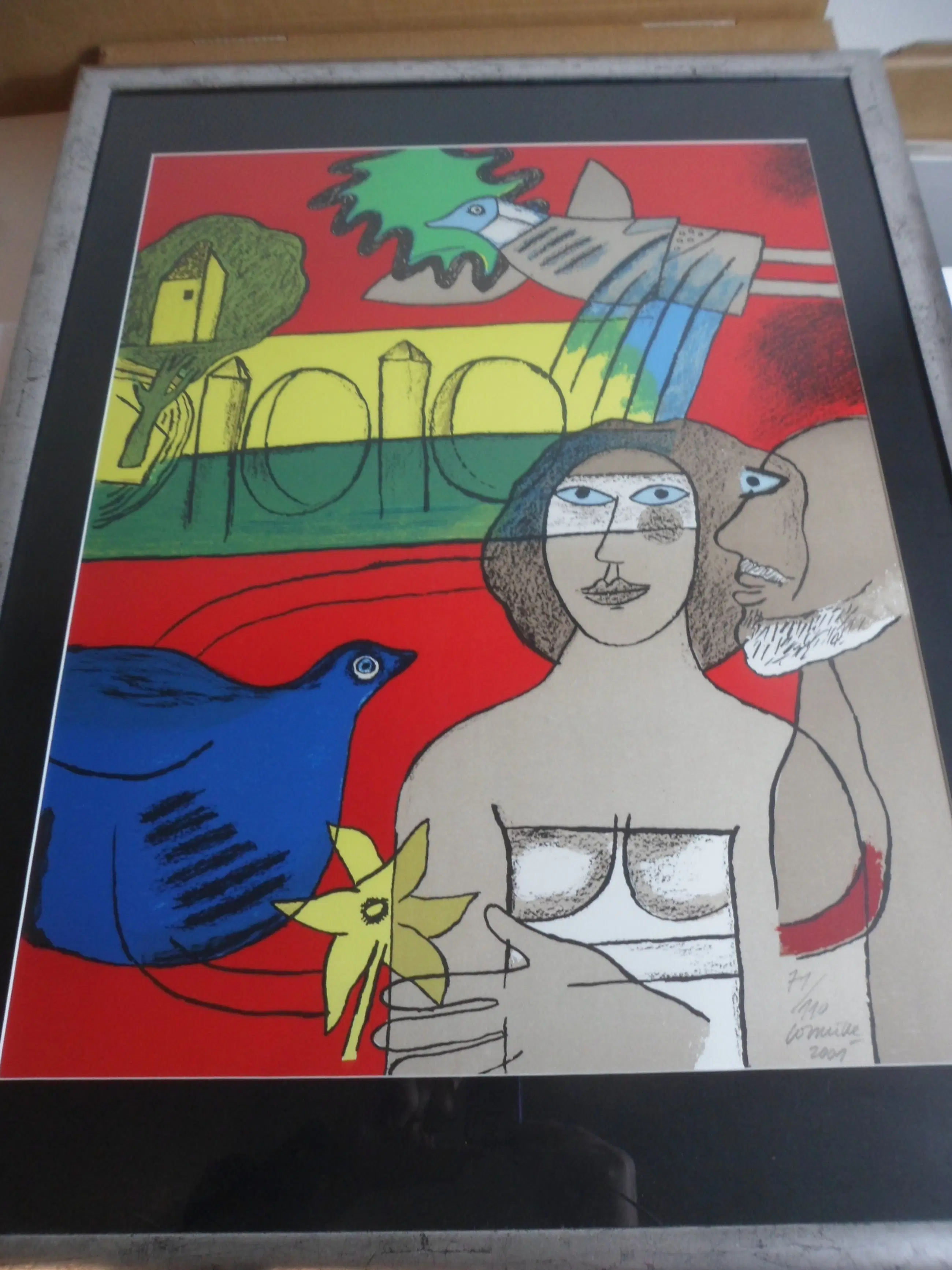 Prachtige litho van Corneille in topconditie! Kleine oplage van 110 stuks. Corneille is zelf rechts onder ook goed herkenbaar. Jaar: 2001. Nummer: 71/110.