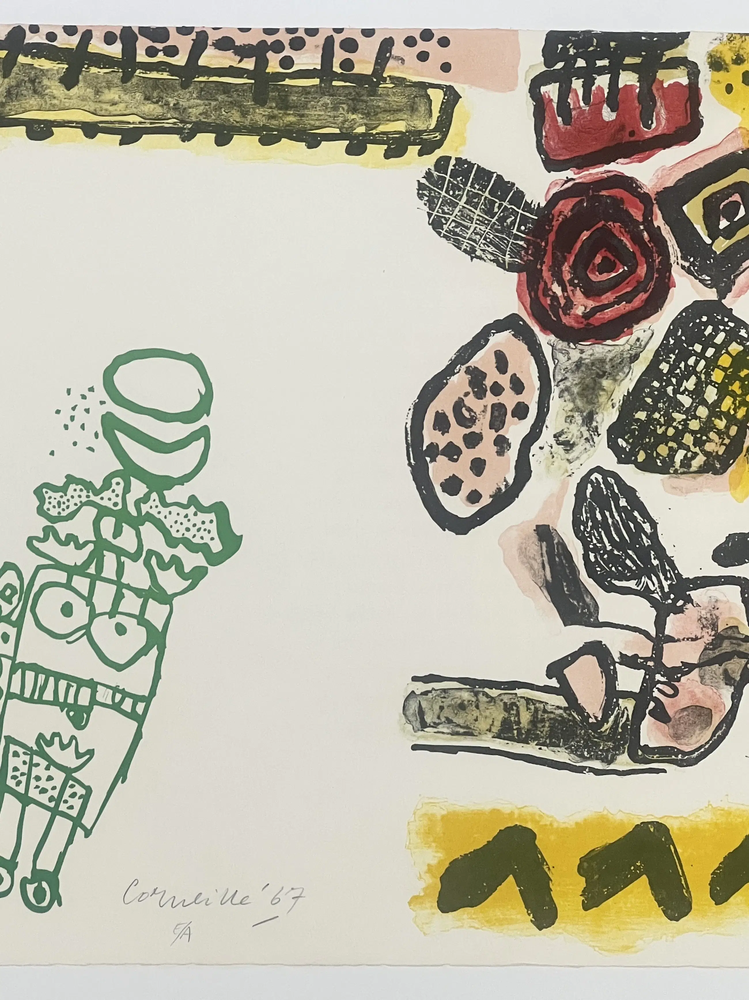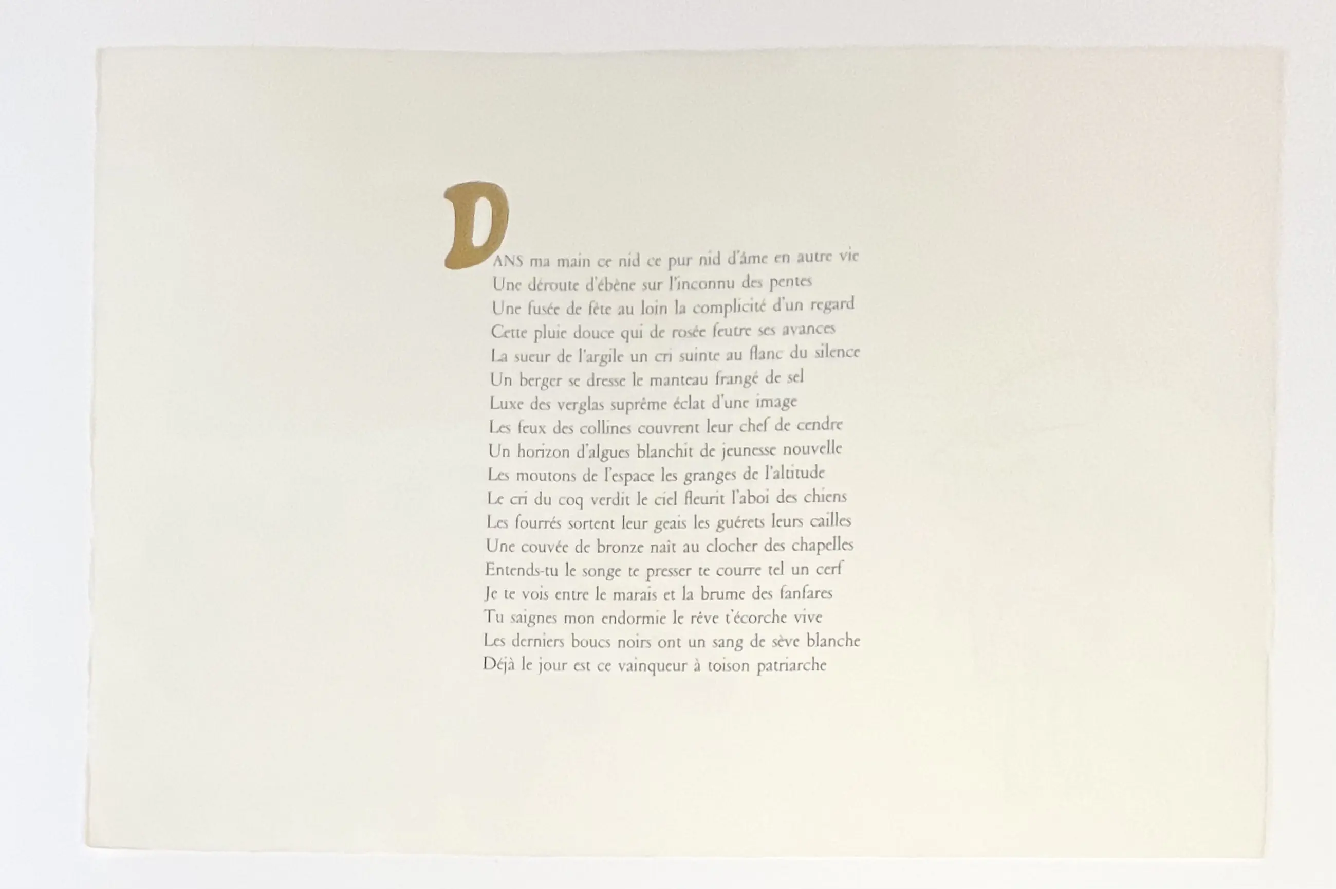 Werk opgenomen in de catalogus raisonné van Donkersloot. Commerciële oplage van 100 exemplaren. Atelier des presses à bras Michel Cassé, Parijs. 56 x 38 cm. Titel van een gedicht van Max-Pol Fouchet.