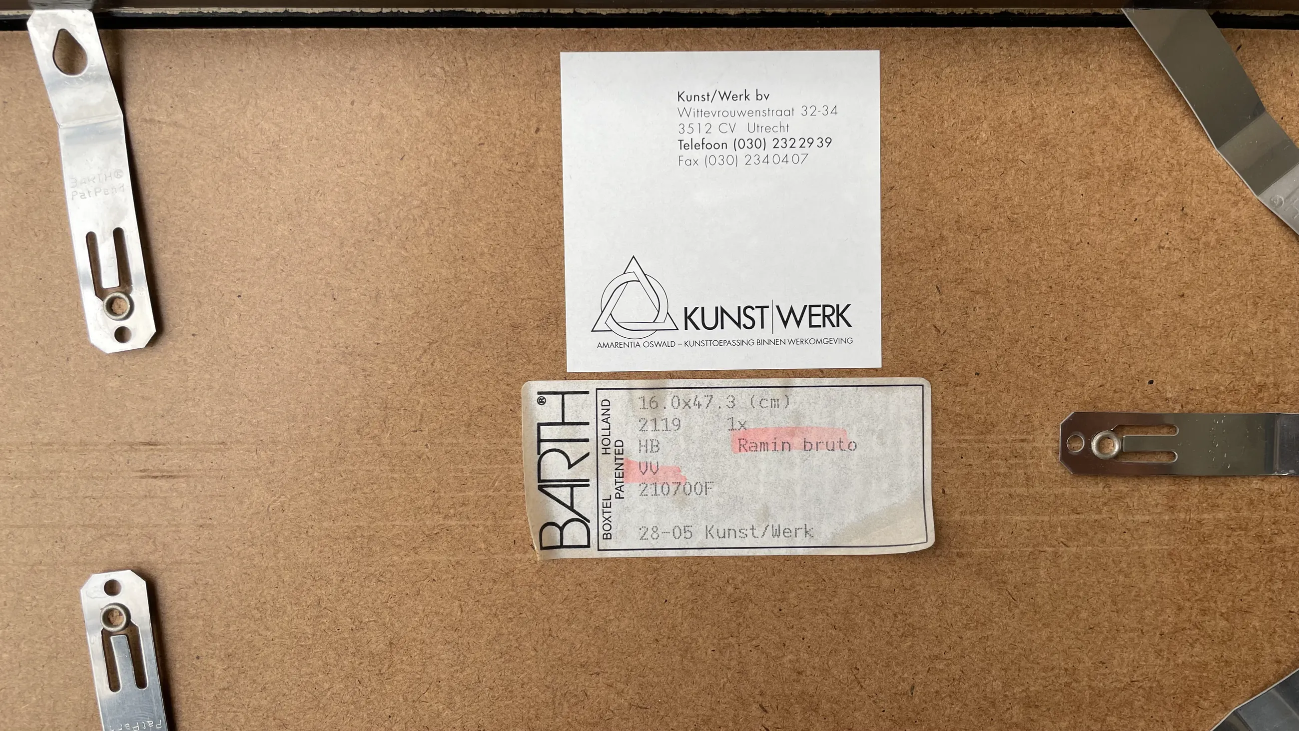 Het werk is af te halen op locatie. Als koper dient u zelf verpakkingsmateriaal mee te nemen. De locatie is: Zwartewaal, Nederland