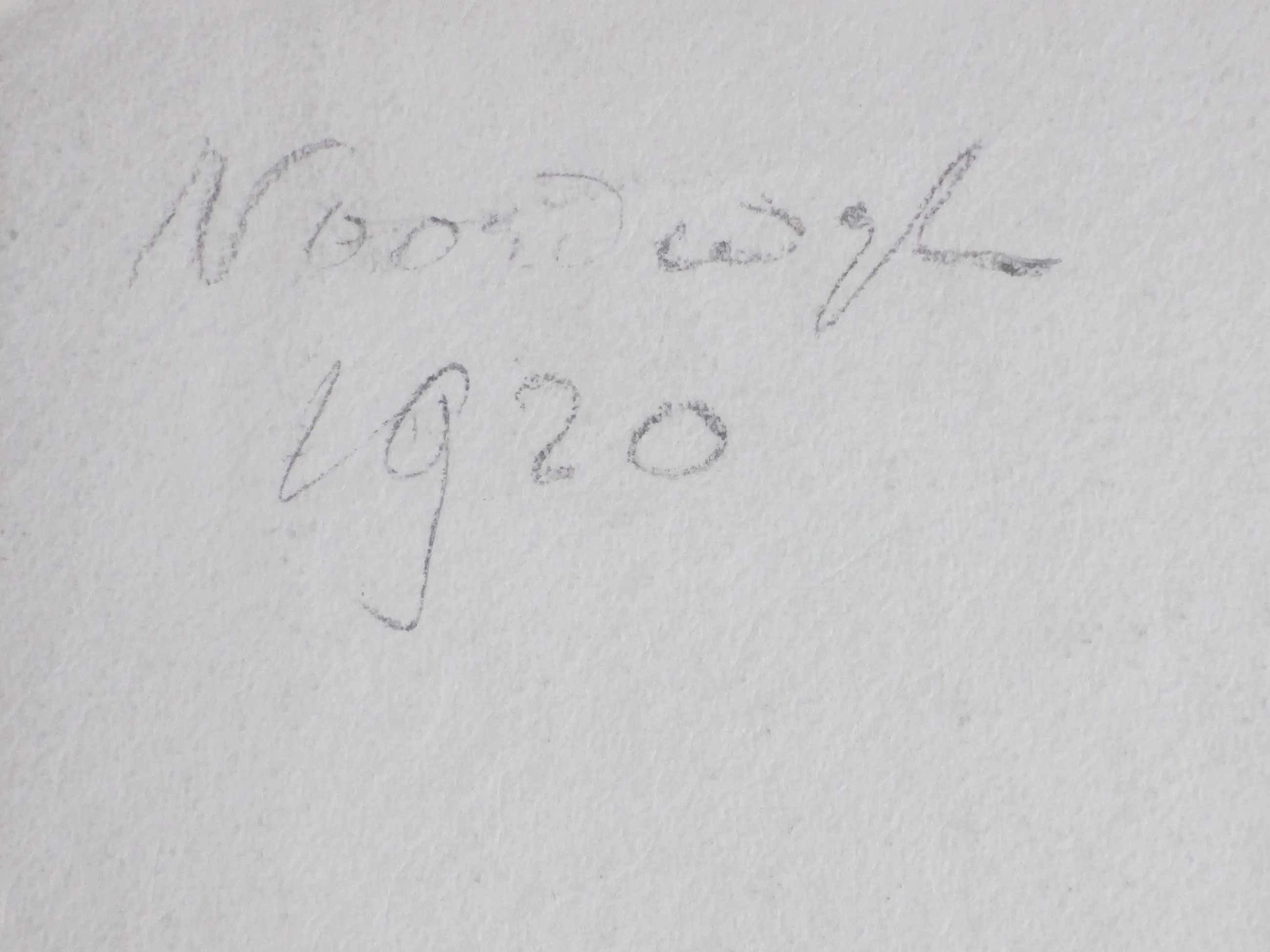 EENMALIGE ZOMERAANBIEDING!! Gemengde techniek door Cornelia van Trigt- Hoevenaar Voorstelling van een gezicht op de duinen van Noordwijk Losbladig, beeldmaat 25x35 Gemonogrammeerd r.o.: 'vTH' Getiteld en gedateerd op achterzijde: 'Noordwijk 1920' Authenticiteit volledig gegarandeerd