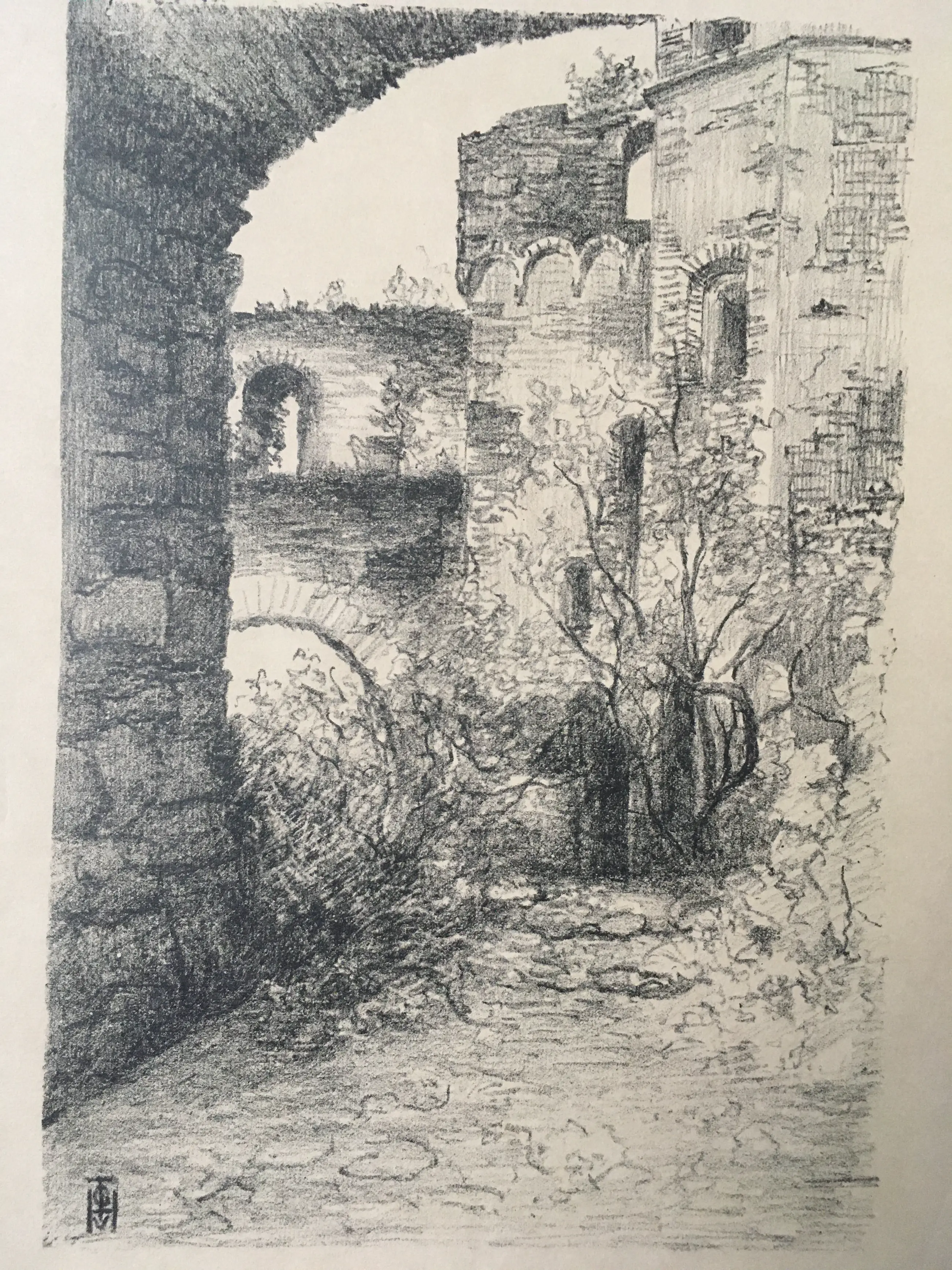 Litho door Cornelia Hoevenaar (C.C.J. van Trigt-Hoevenaar, Leeuwarden 1854-1924 Haarlem). Zeldzaam. Proefdruk op getint papier. Monogram linksonder op de steen.