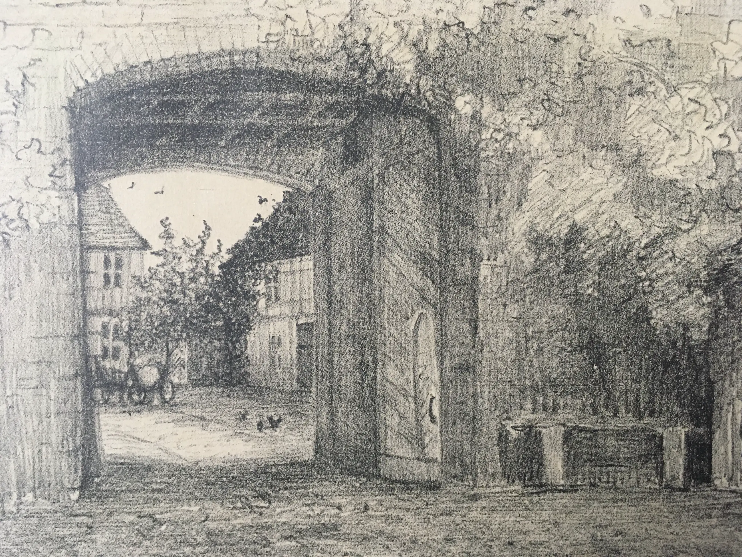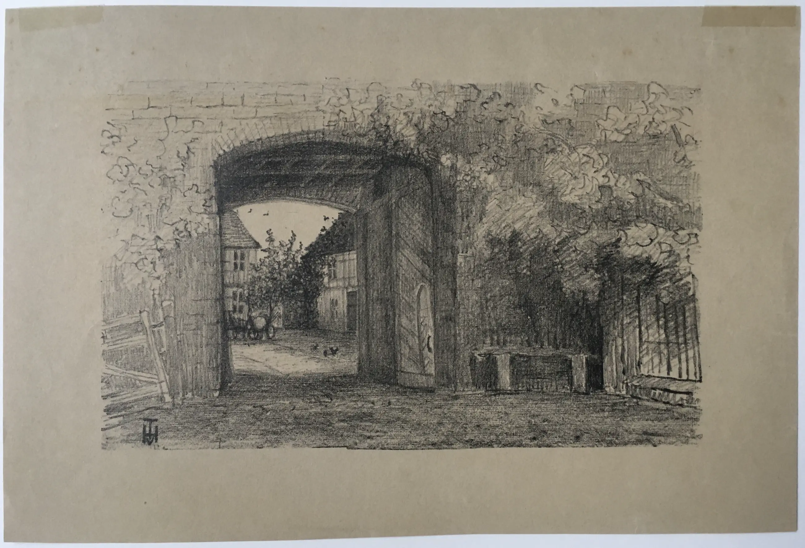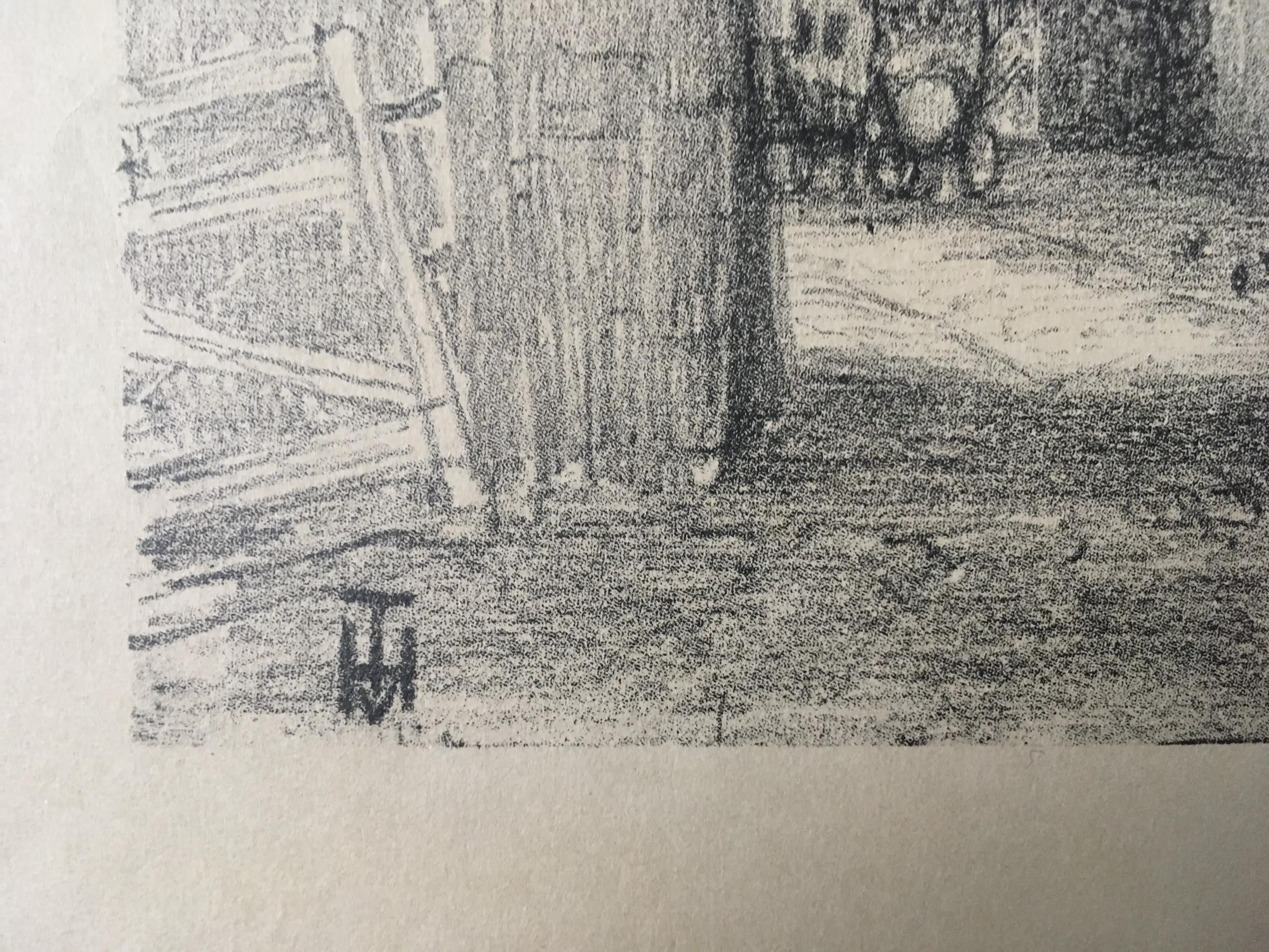 Litho door Cornelia Hoevenaar (C.C.J. van Trigt-Hoevenaar, Leeuwarden 1854-1924 Haarlem). Zeldzaam. Proefdruk op getint papier. Monogram linksonder op de steen.