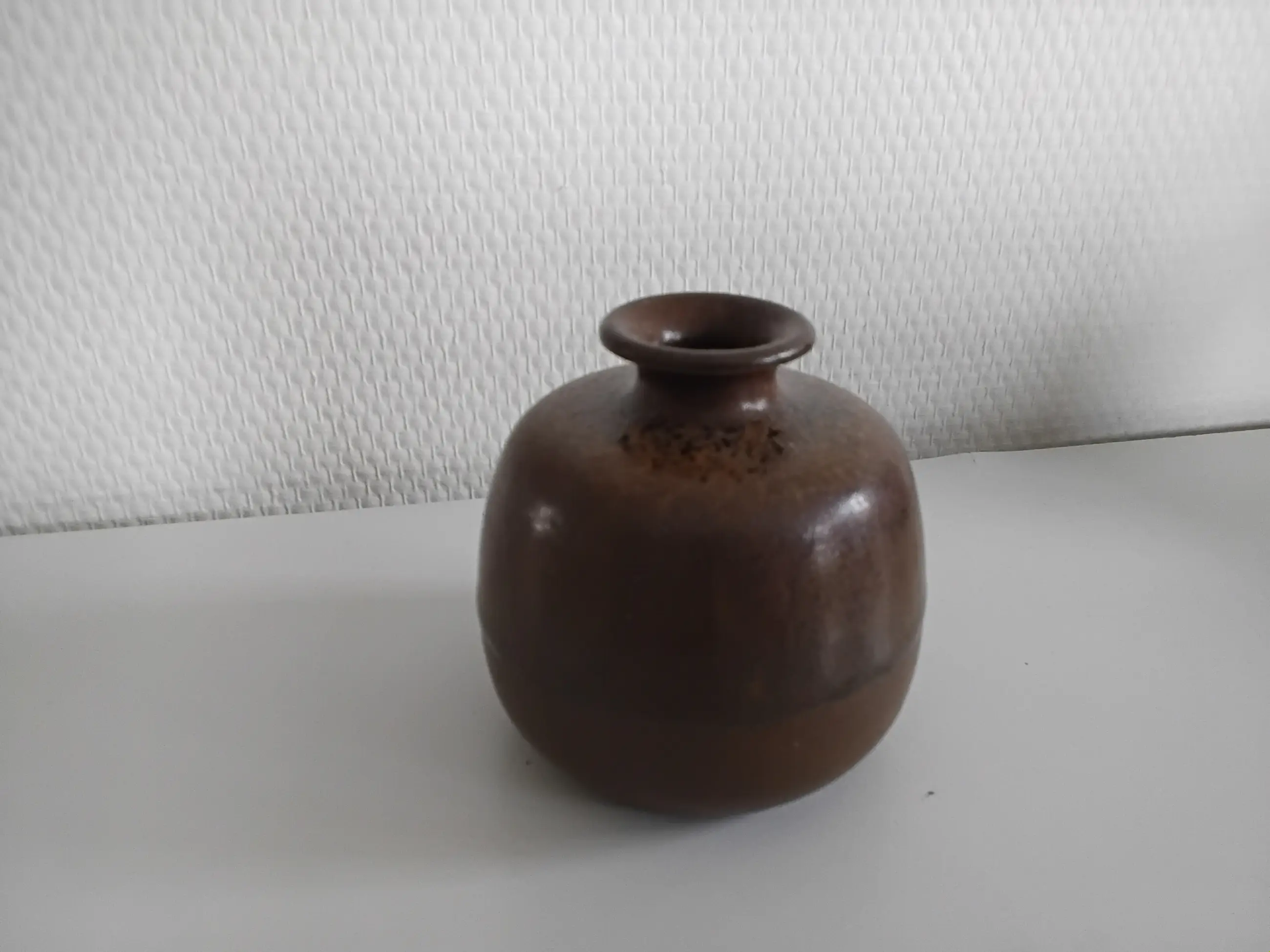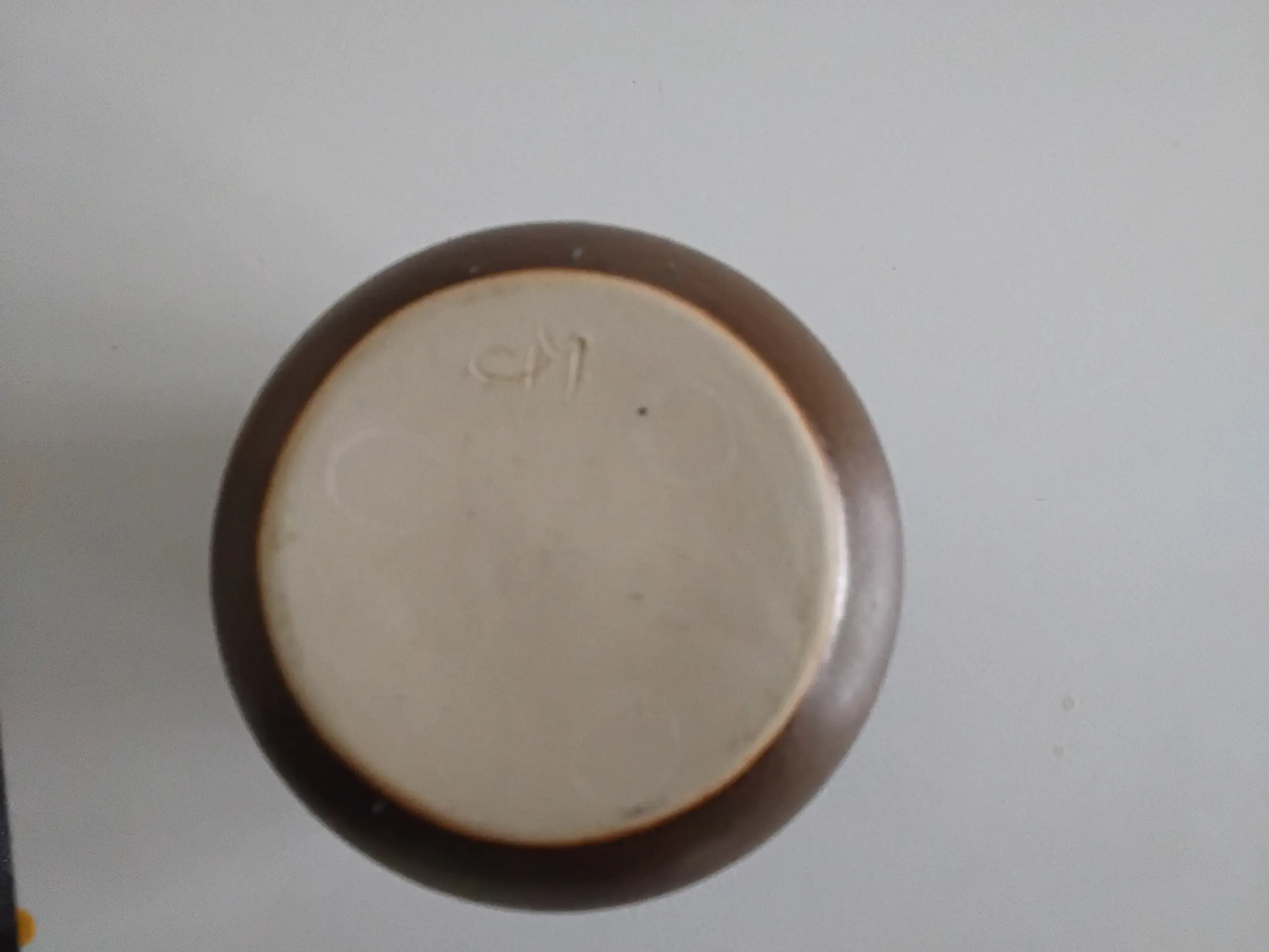 Bruin vaasje met van bovenaf extra glazuur tot halverwege.