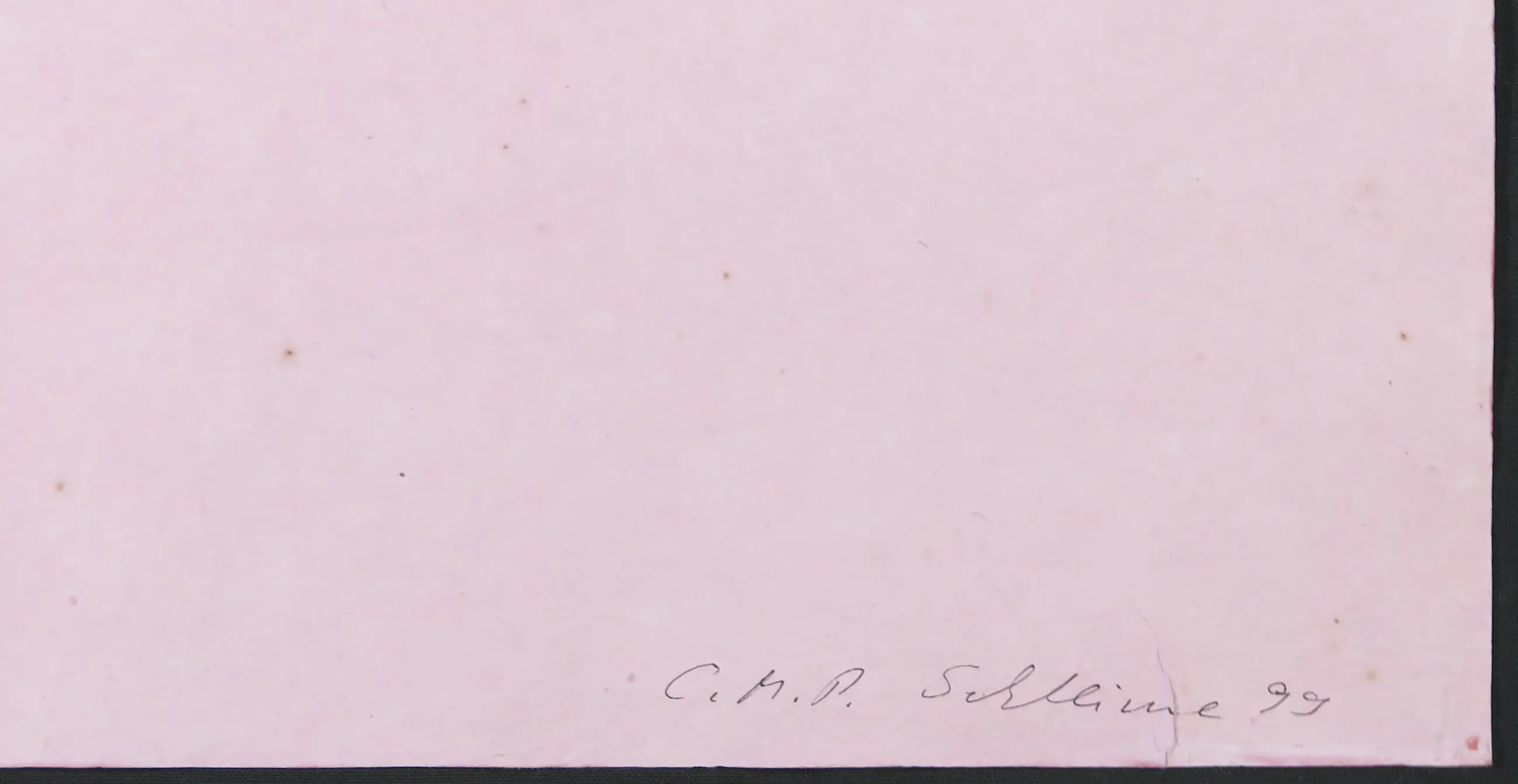 | Het papier is waarschijnlijk iets verschoten naar de hoek linksonder toe en bevat verspreid over het oppervlak wat oxidatievlekjes. Wat lichte golving en langs uiterste randen wat lichte vouwtjes. | |||||||||||