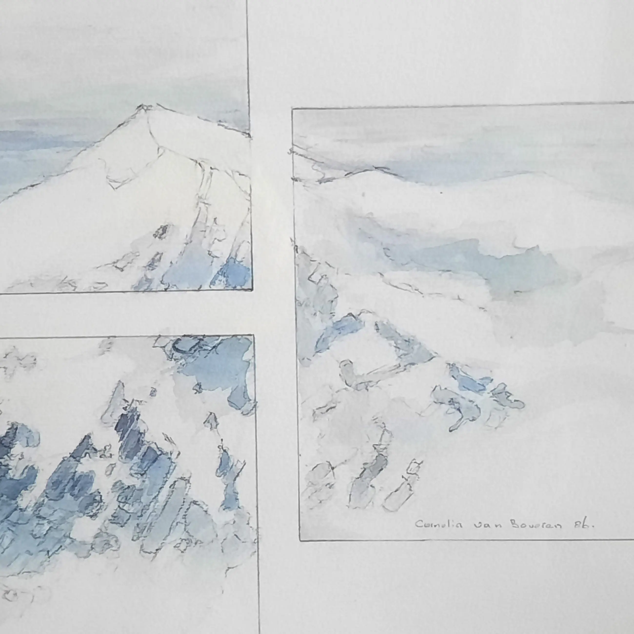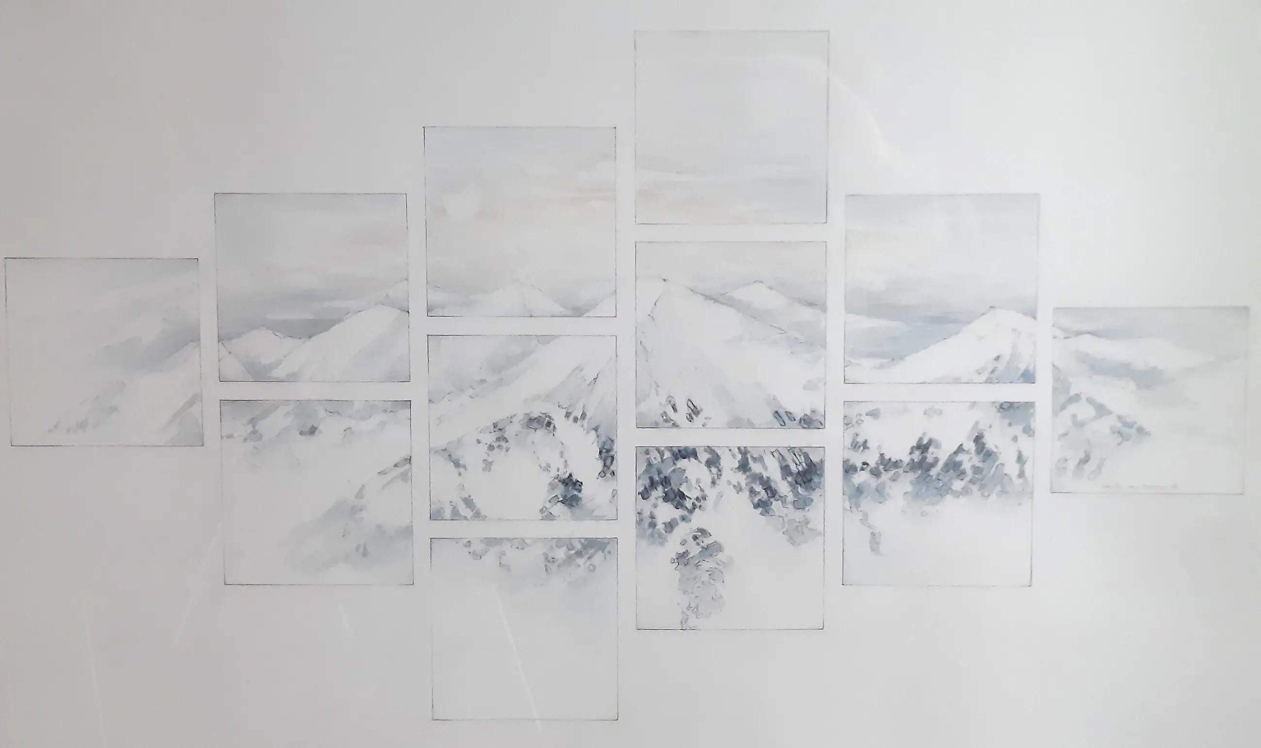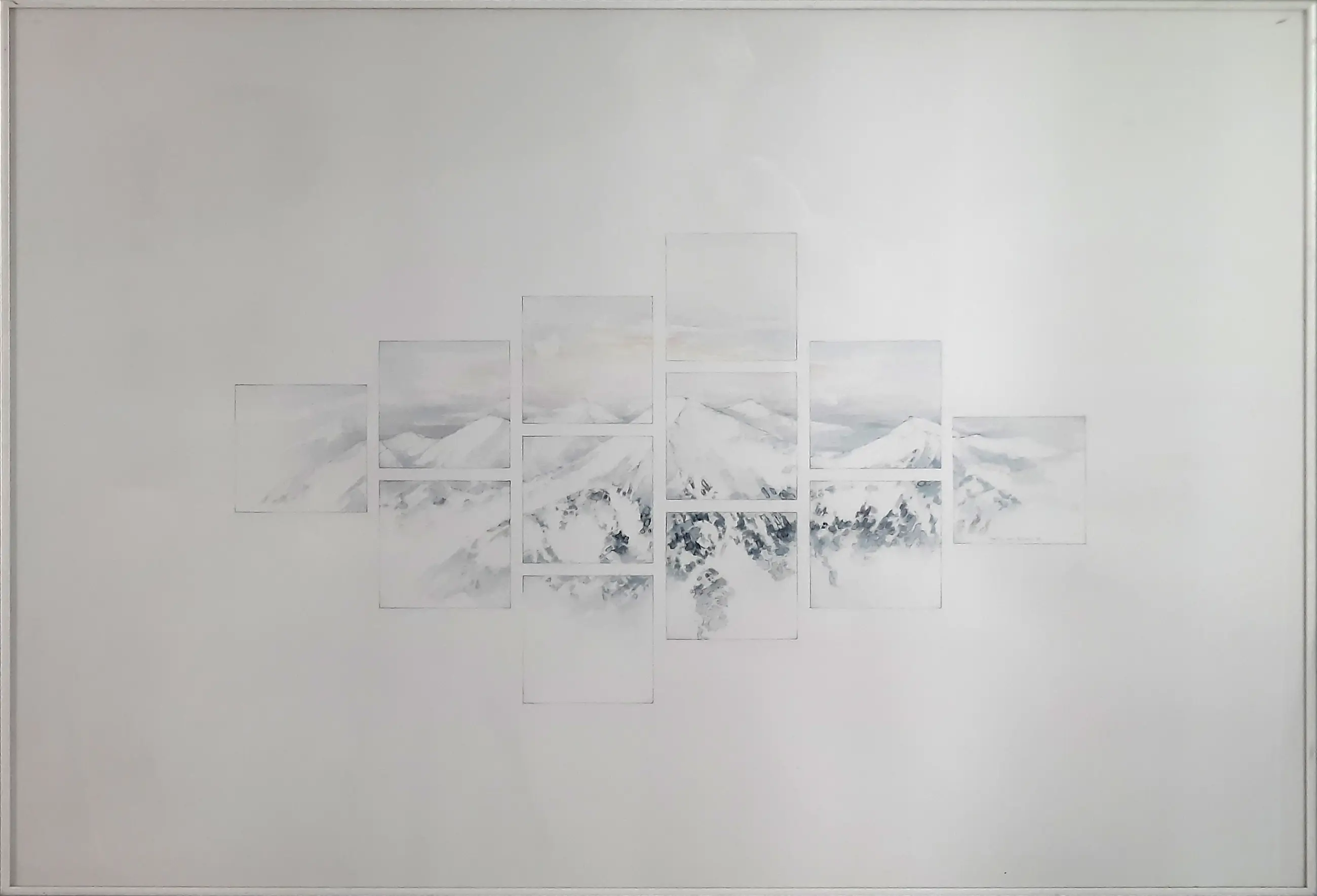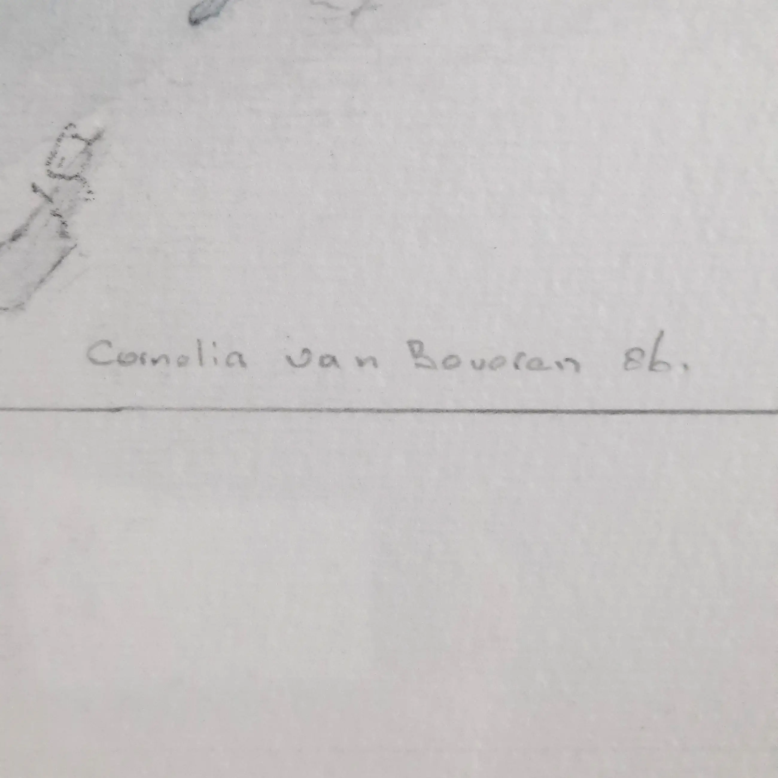 Potloodtekening in witte aluminium lijst achter glas. Bij verzenden wordt het werk uit de lijst gehaald en verzonden in een koker.
