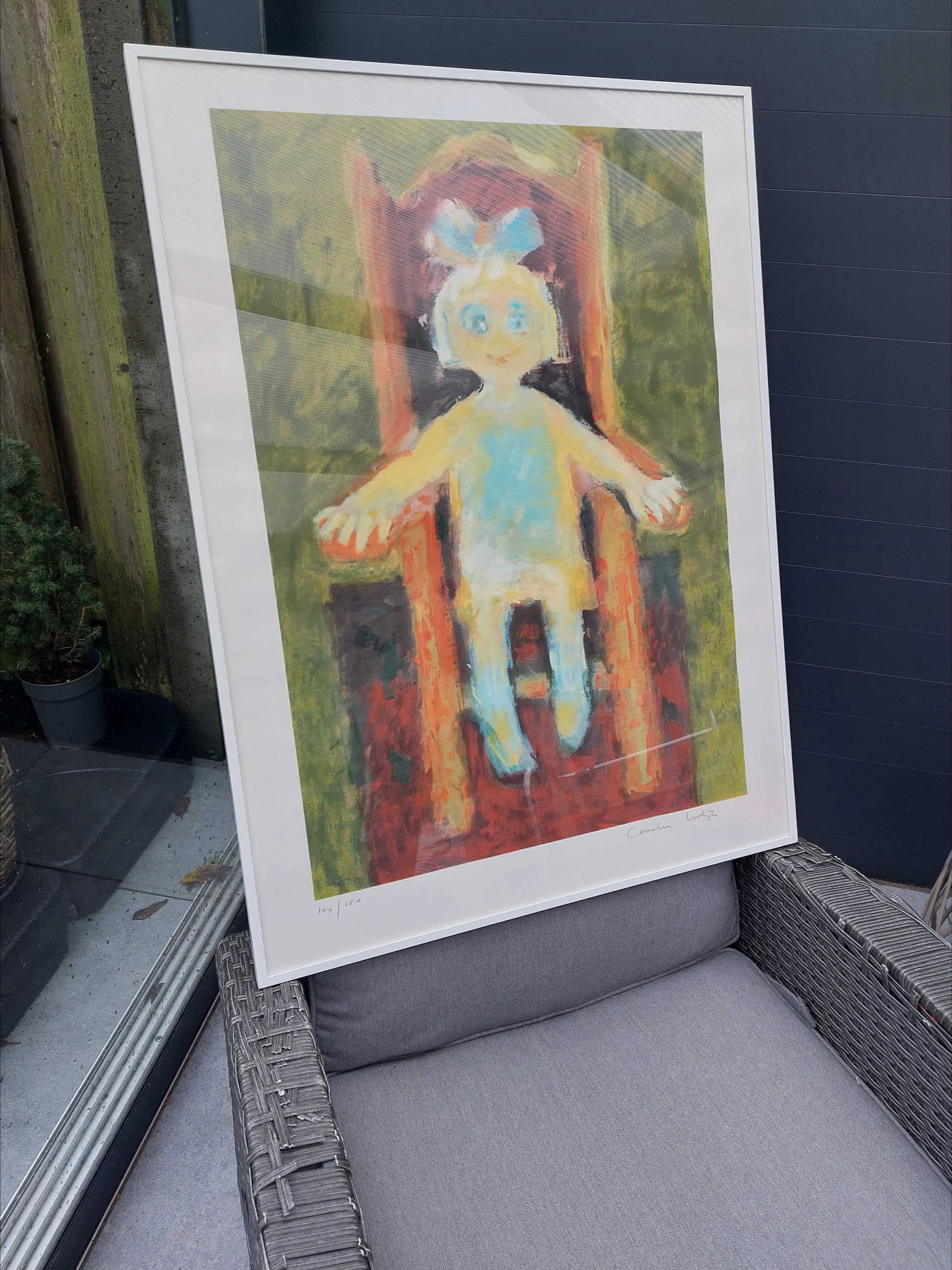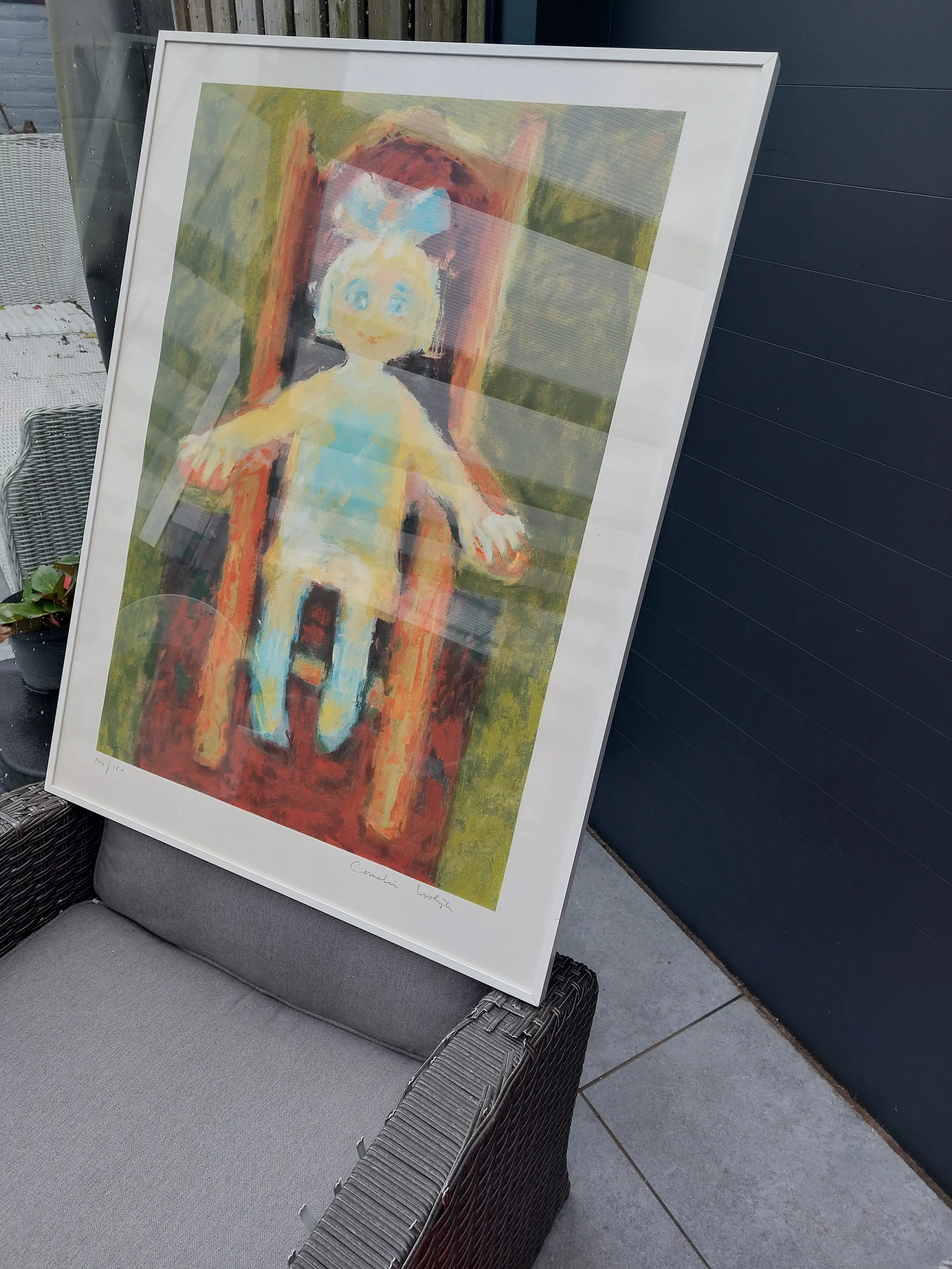 Van het orginele olieverf schilderij " meisje op stoel " door Cornelia Vrolijk is in opdracht van het maandblad Opzij een zeefdruk gemaakt welke in kleine oplage is verkocht aan lezeressen.Het gaat hier om zeefdruk 144 uit een oplage van 150.