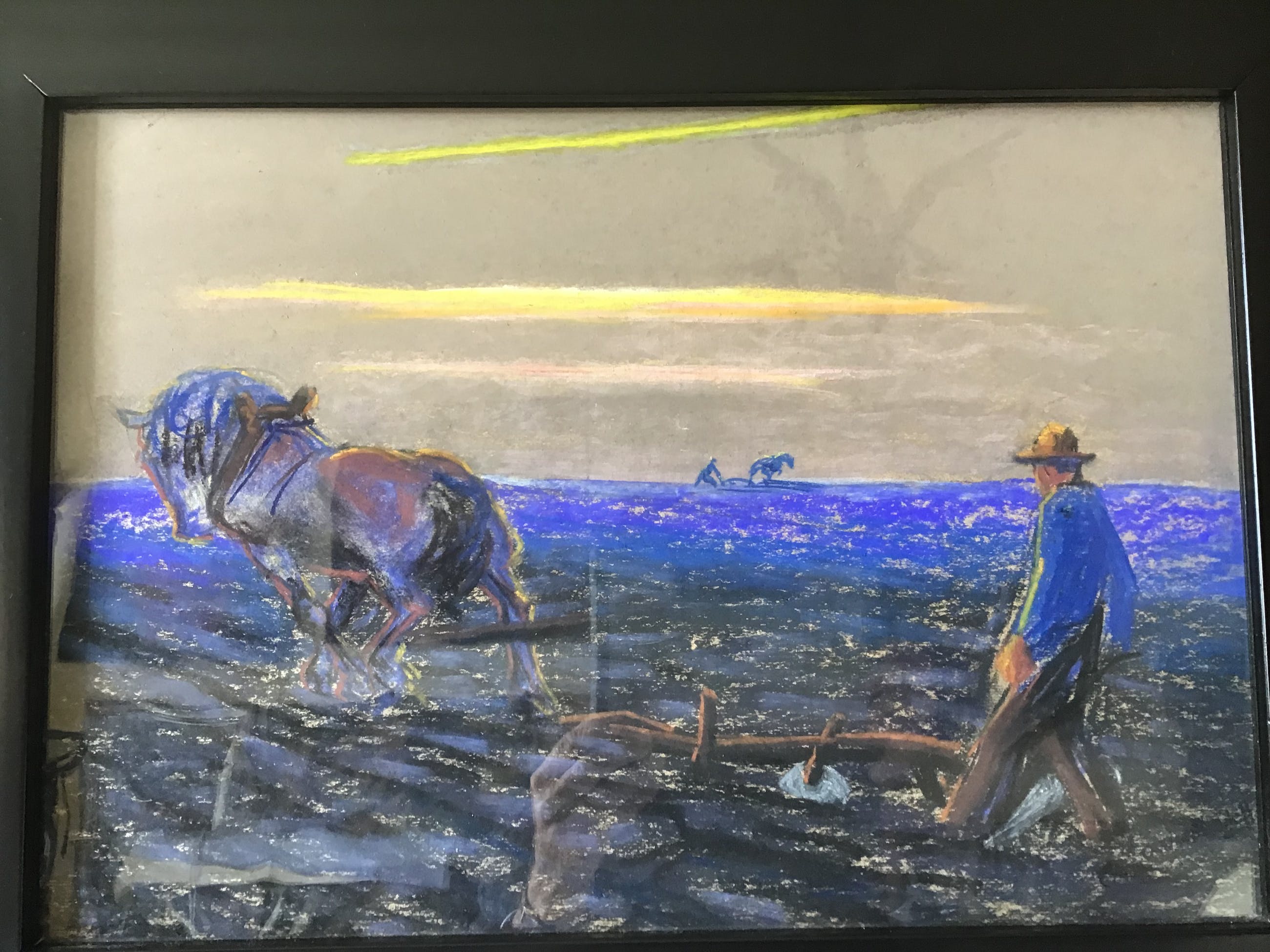 Cornelis Albert van Assendelft 1870-1945 Ploegende boer Pastel op karton 50x35 71x55 met lijst Achter glas Gesigneerd RO c.v. assendelft