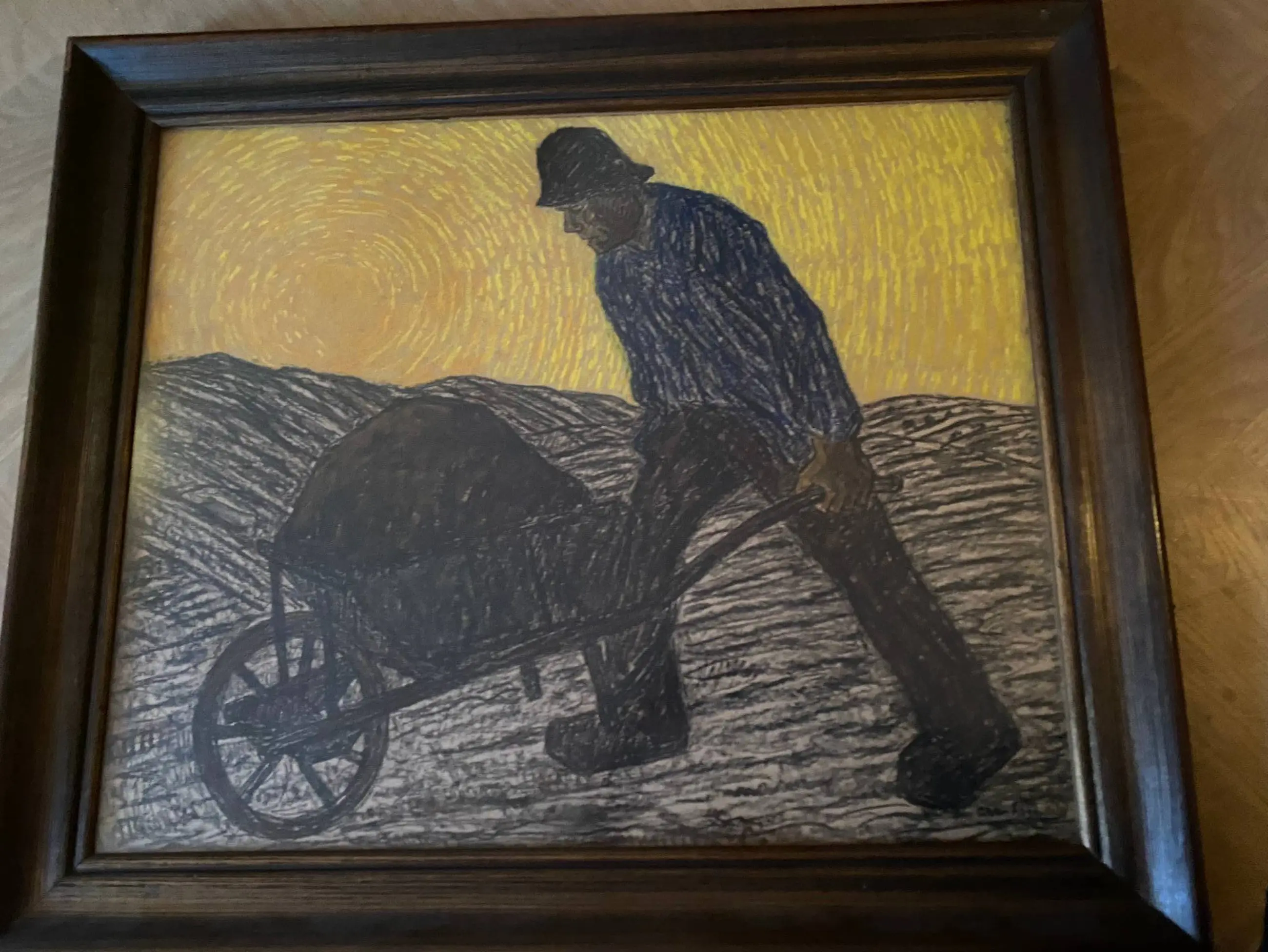 Is een op pastel krijt op papier in een houten frame met glas. rechtsonder gesigneerd.