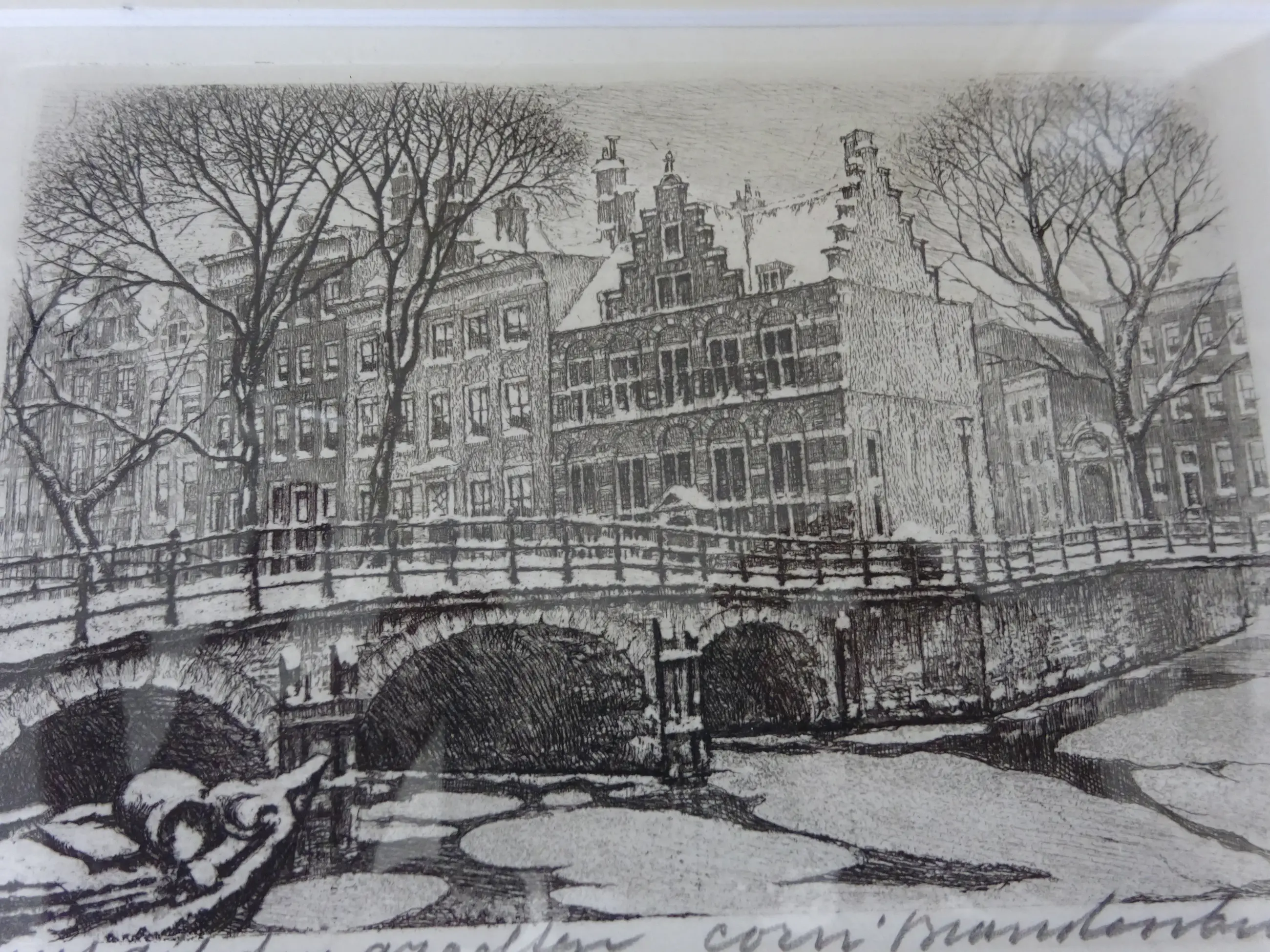Leuk klein etsje van Corn. Brandenburg en zoals doen vermoeden weer een etsje uit de sneeuwetsjes serie.