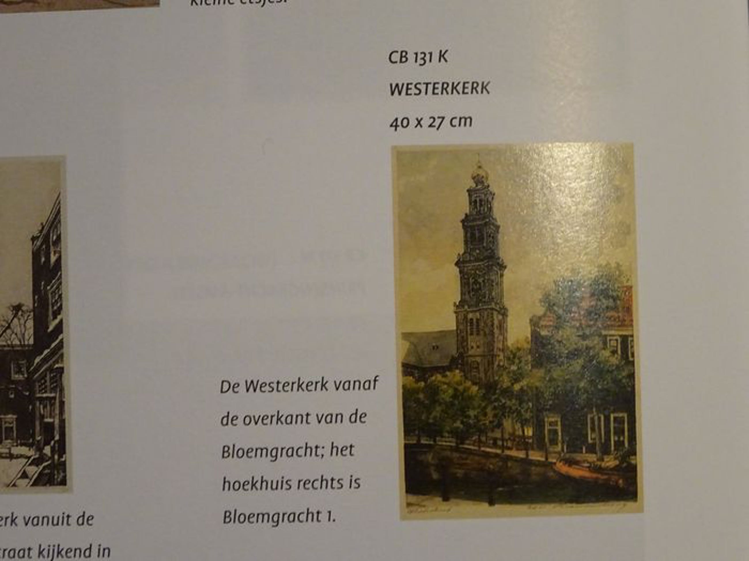 De Westerkerk vanaf de overkant van de Bloemgracht, het hoekhuis rechts is