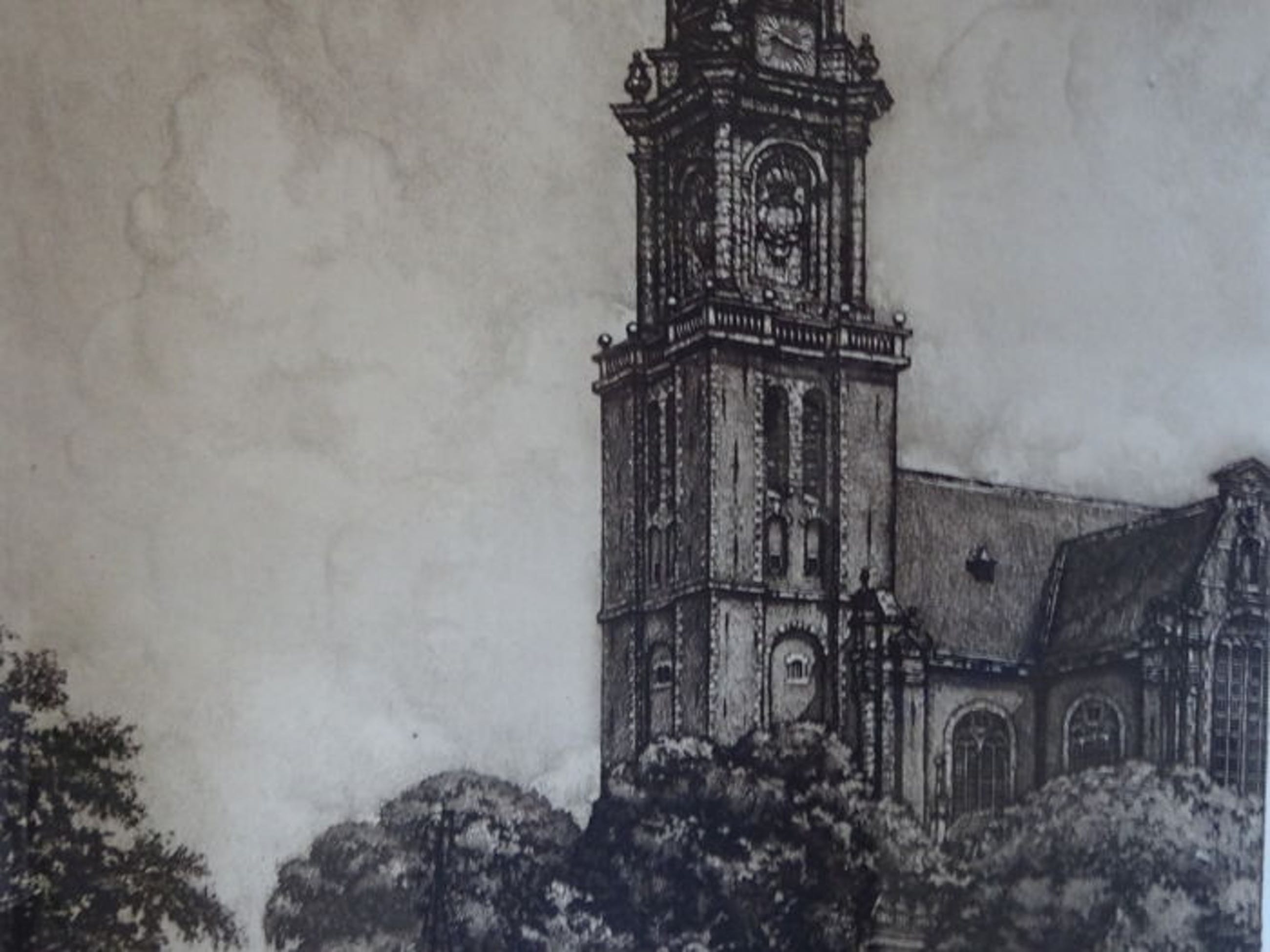 Grote ets van de Westerkerk, gezien van de verste hoek van de brug