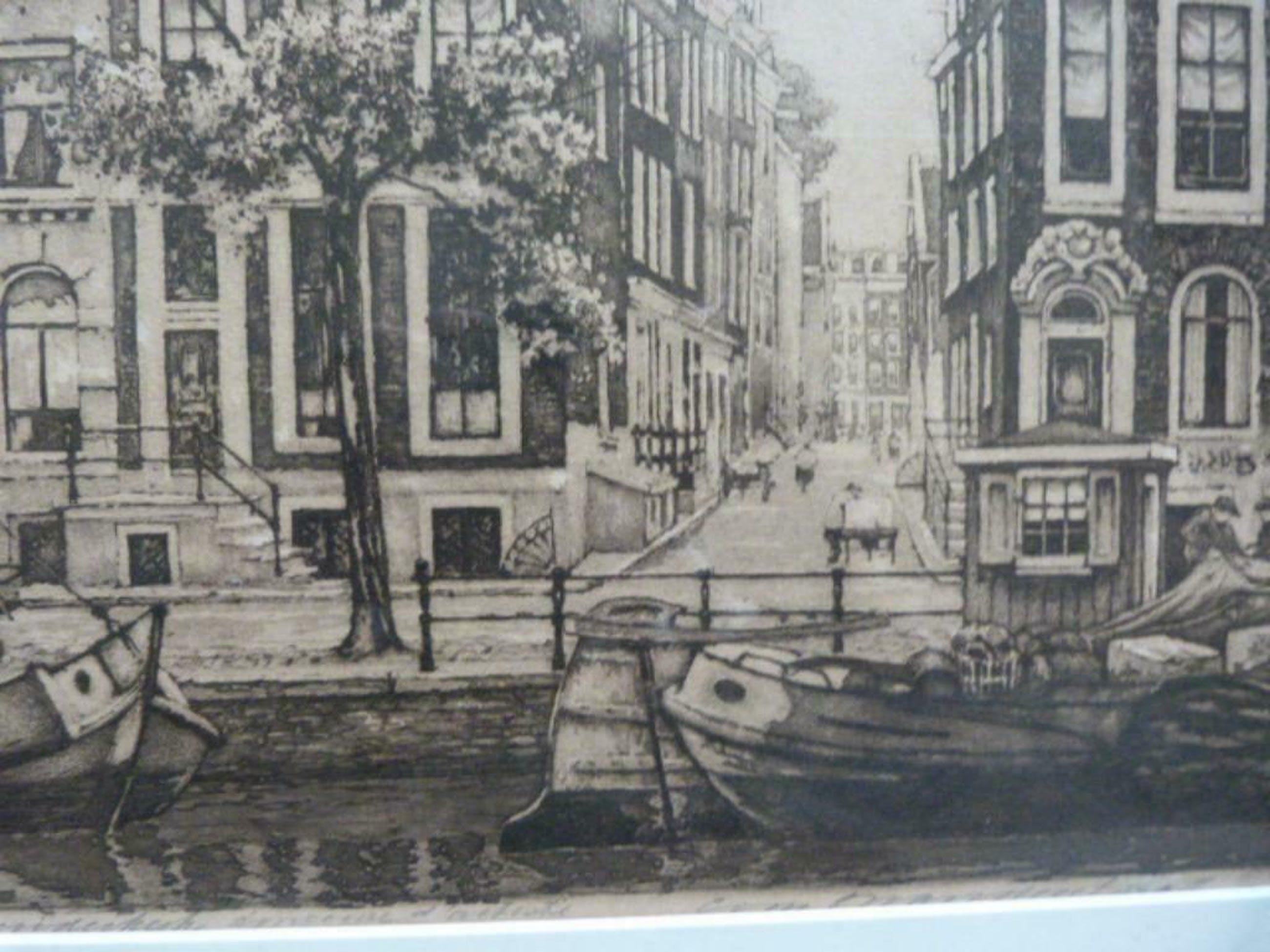 Ets, door de jaren wat getint, passe-partout en de lijst zijn in goede staat.