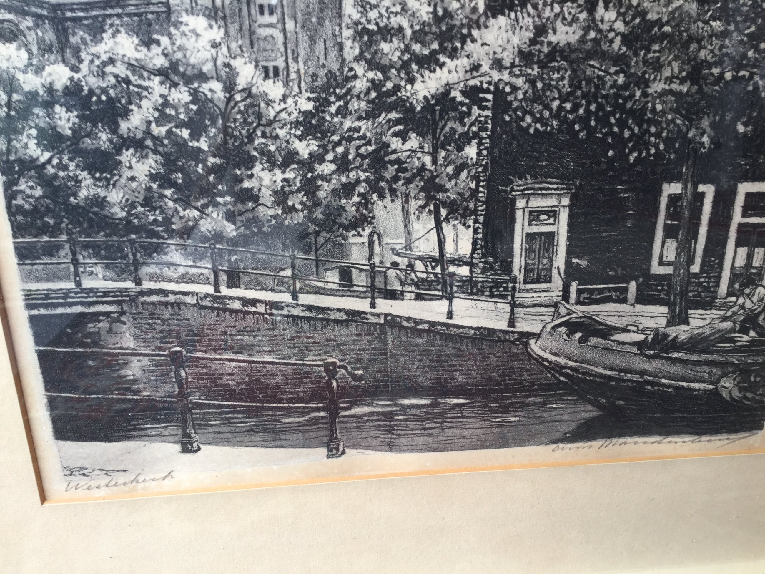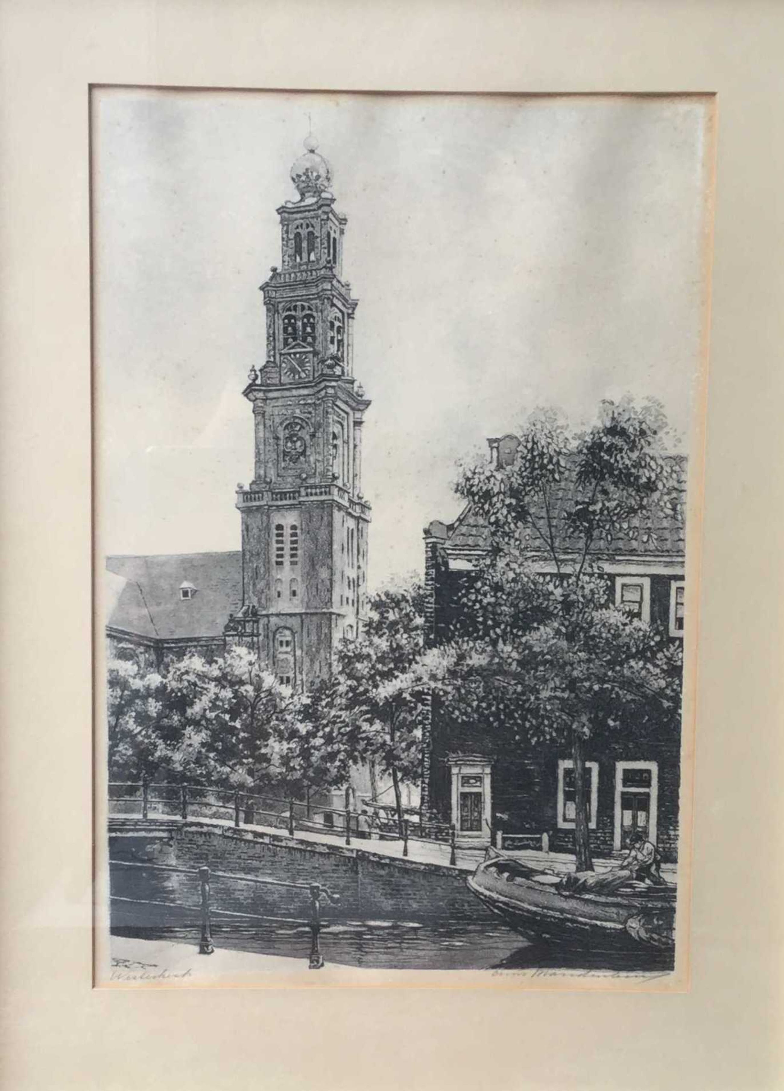 C4721-1 C. Brandenburg, Westerkerk, ets rechtsonder gesigneerd beeldmaat 40 x 27 cm, lijstmaat 54 x 40 cm