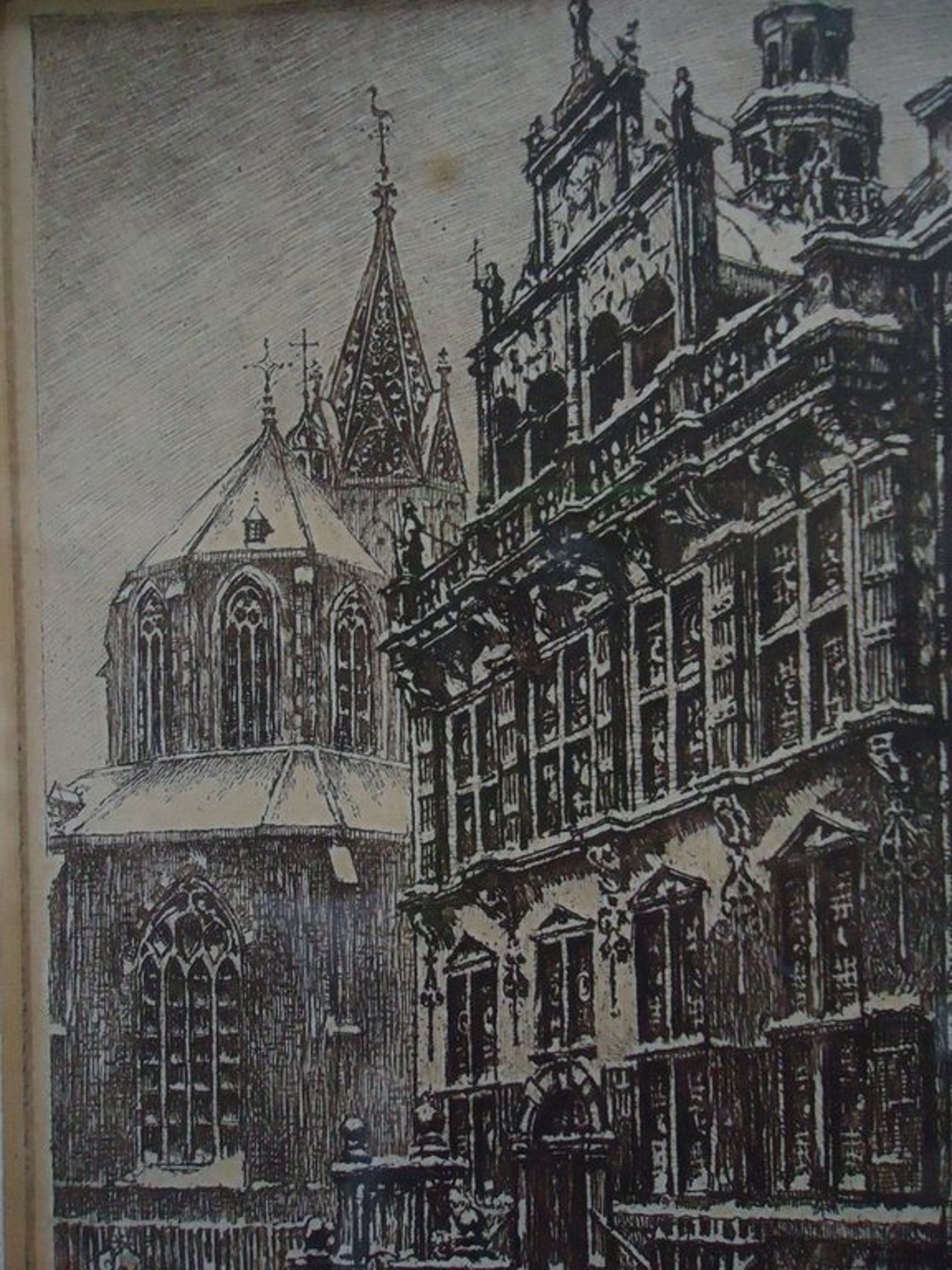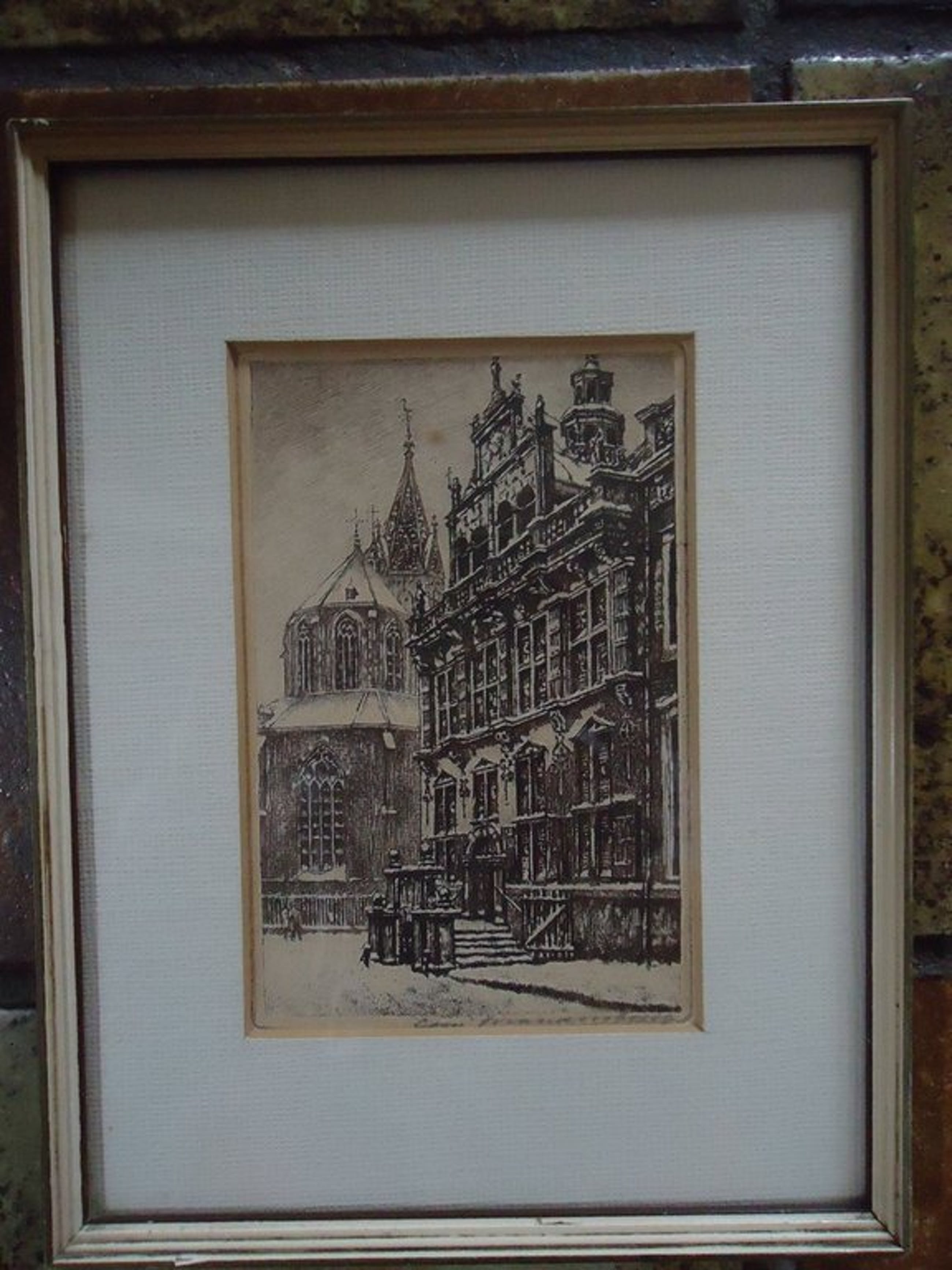 Ets : 14 x 8 cm. Met passe-partout en lijst : 29 x 24 cm (ongeveer).