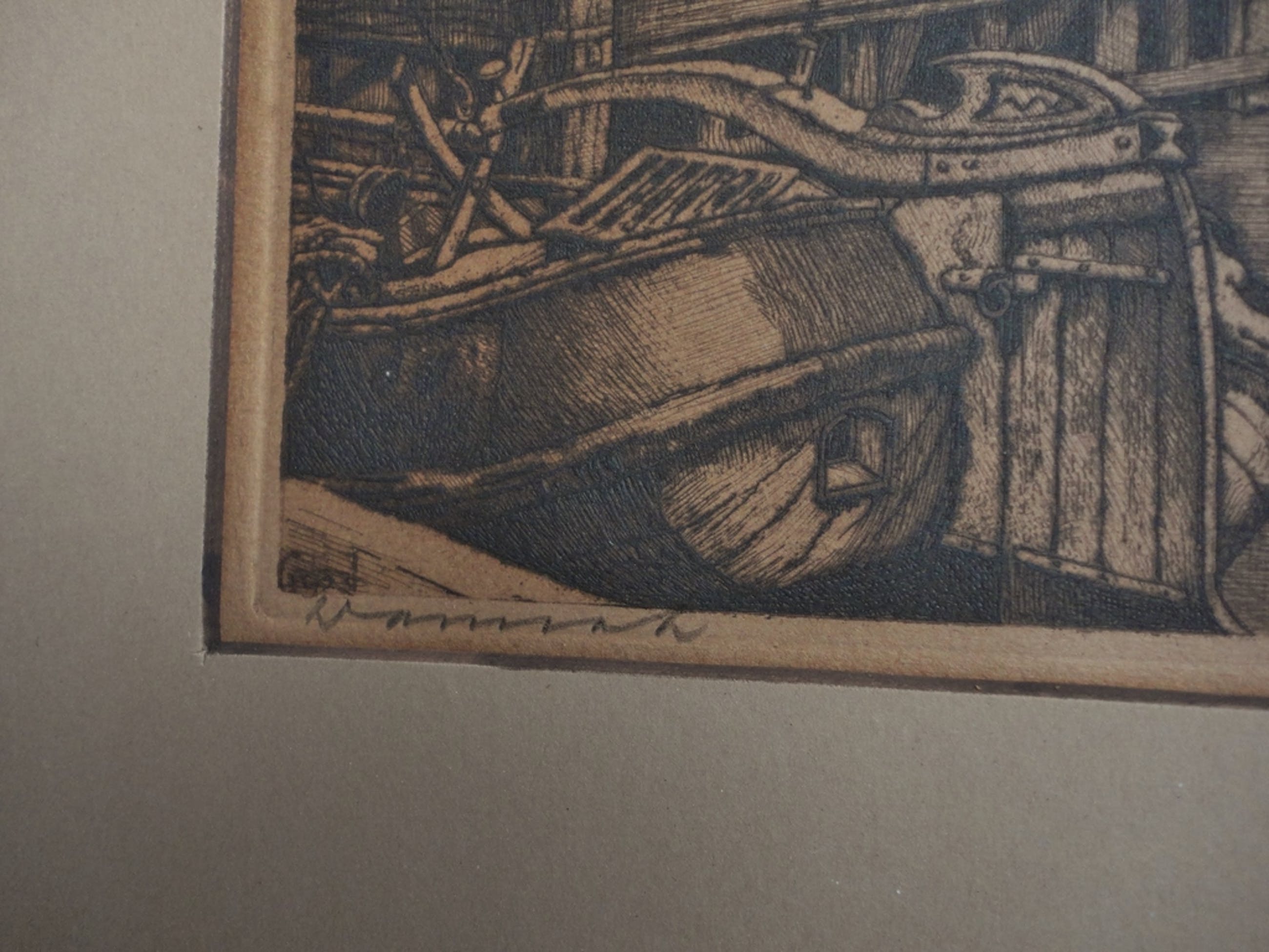 ets van C. Brandenburg(1884-1954), beeldmaat 20x30, met passe partout 33x47cm.