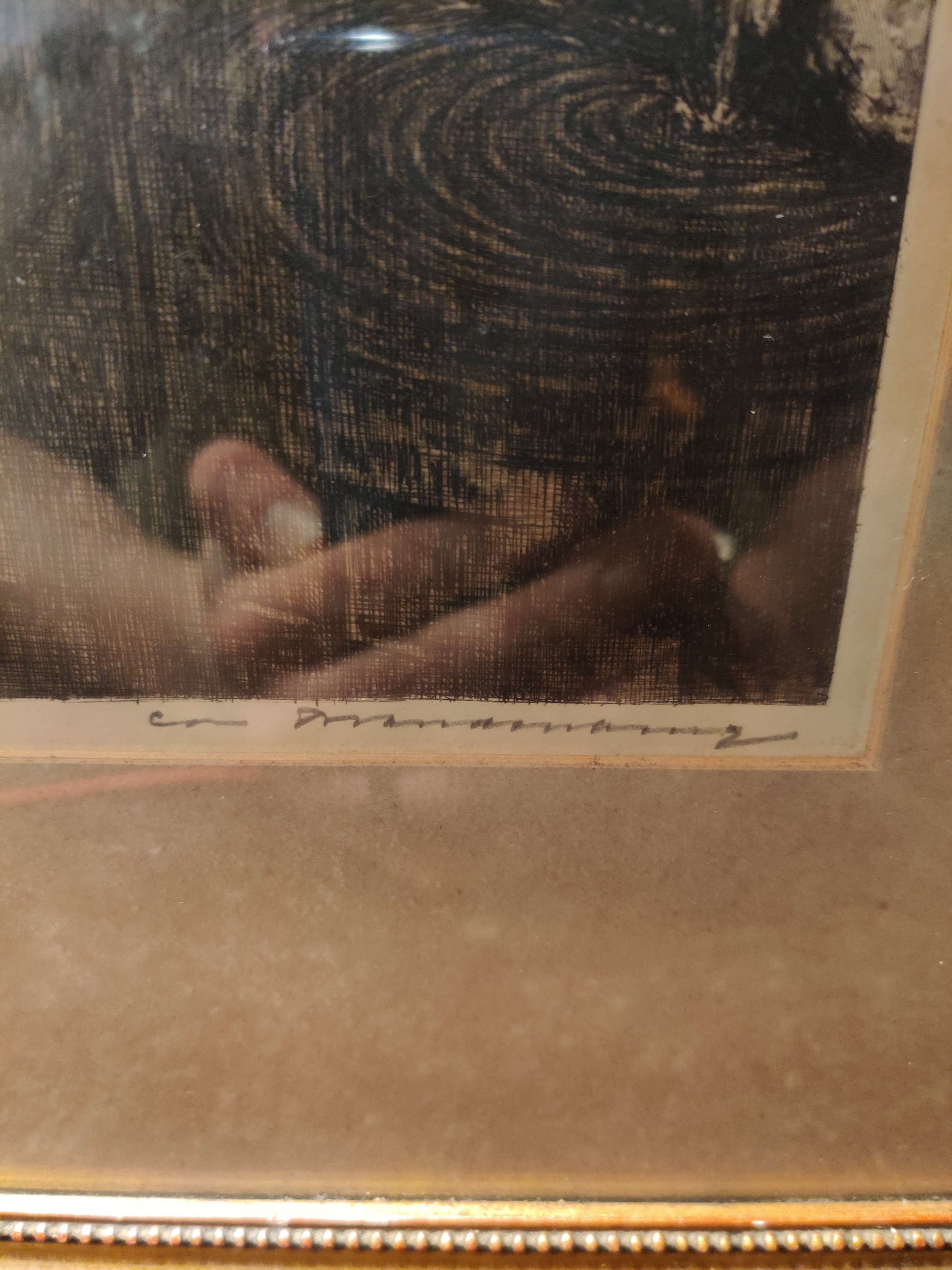 De conditie is redelijk goed voor een ets van 107 jaar oud! enigszins vergeeld, maar dat geeft zijn charmes. De lijst is mooi maar heeft wel beschadigingen. Papier is dus op de vergeling na, zonder beschadigingen