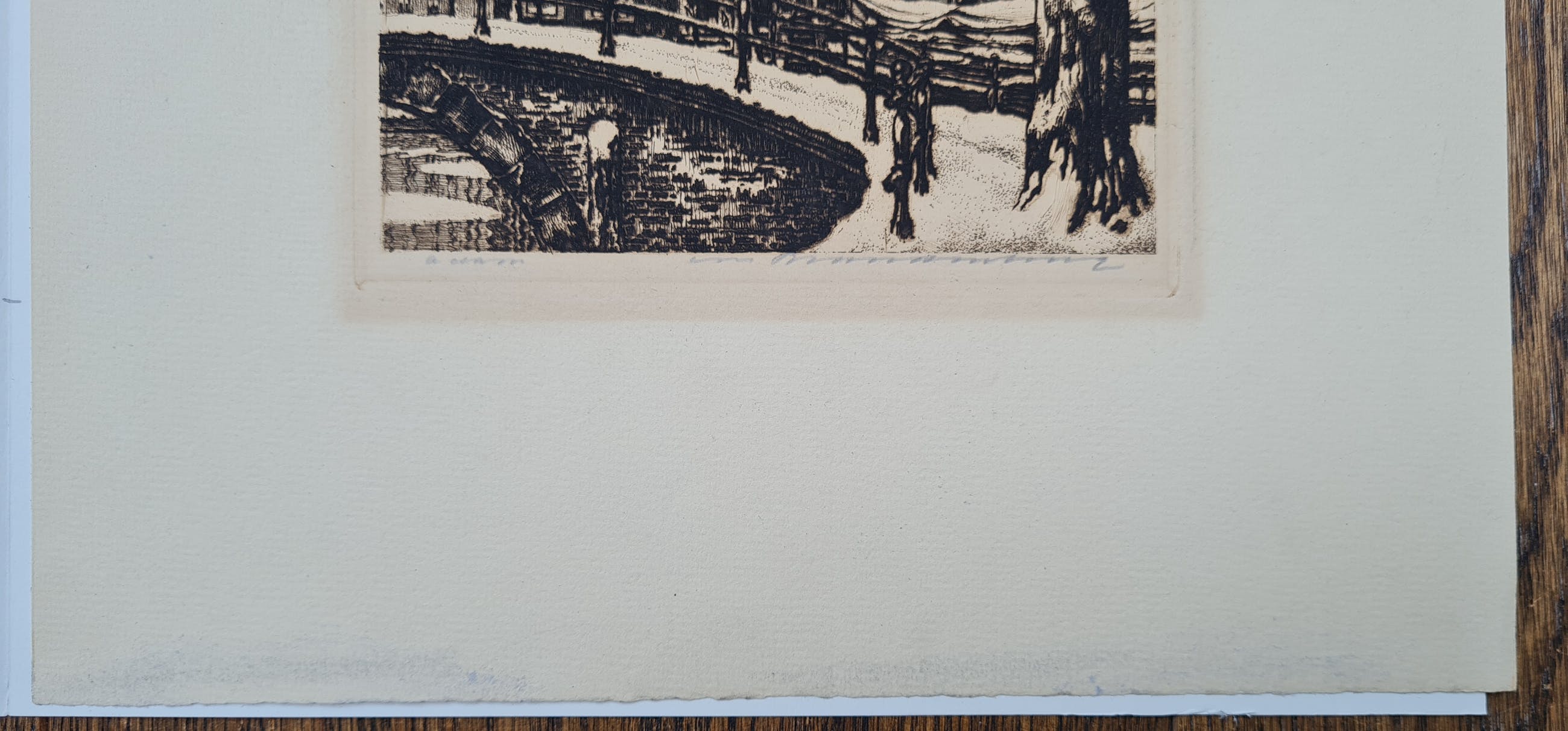 Wat vergeeld, gumsporen in onderste marge (niet zichtbaar onder passepartout)