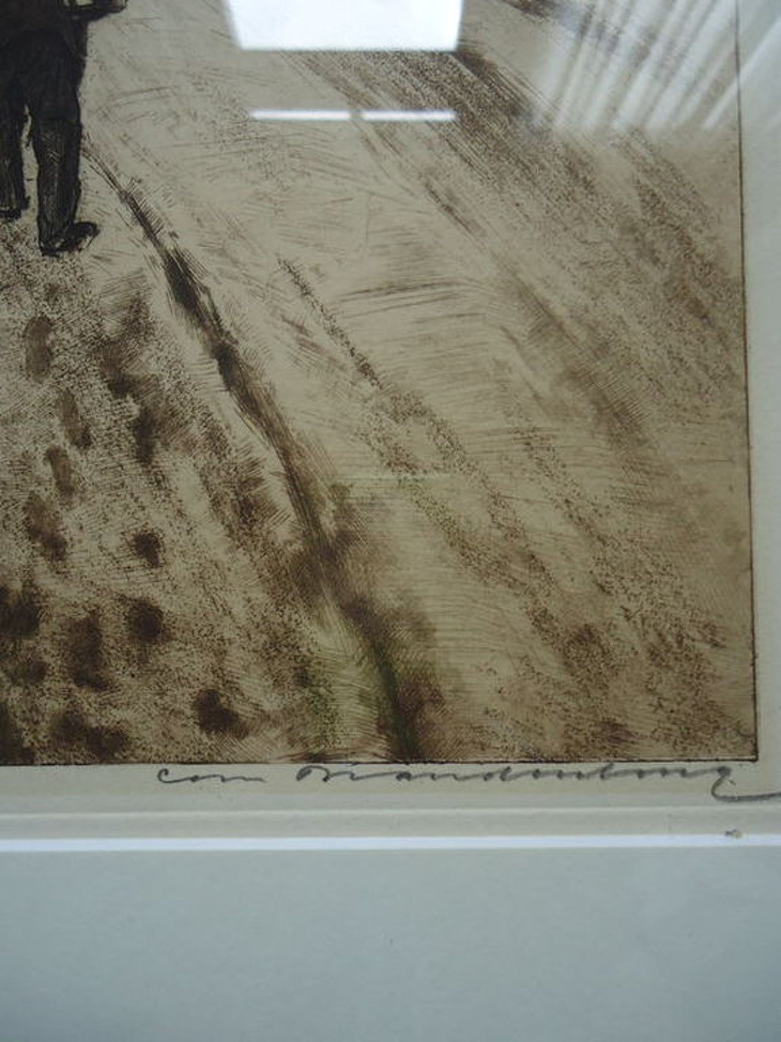 Ets : 32 x 21 cm. Met zuurvrij passe-partout en lijst : 53,5 x 41,5 cm.
