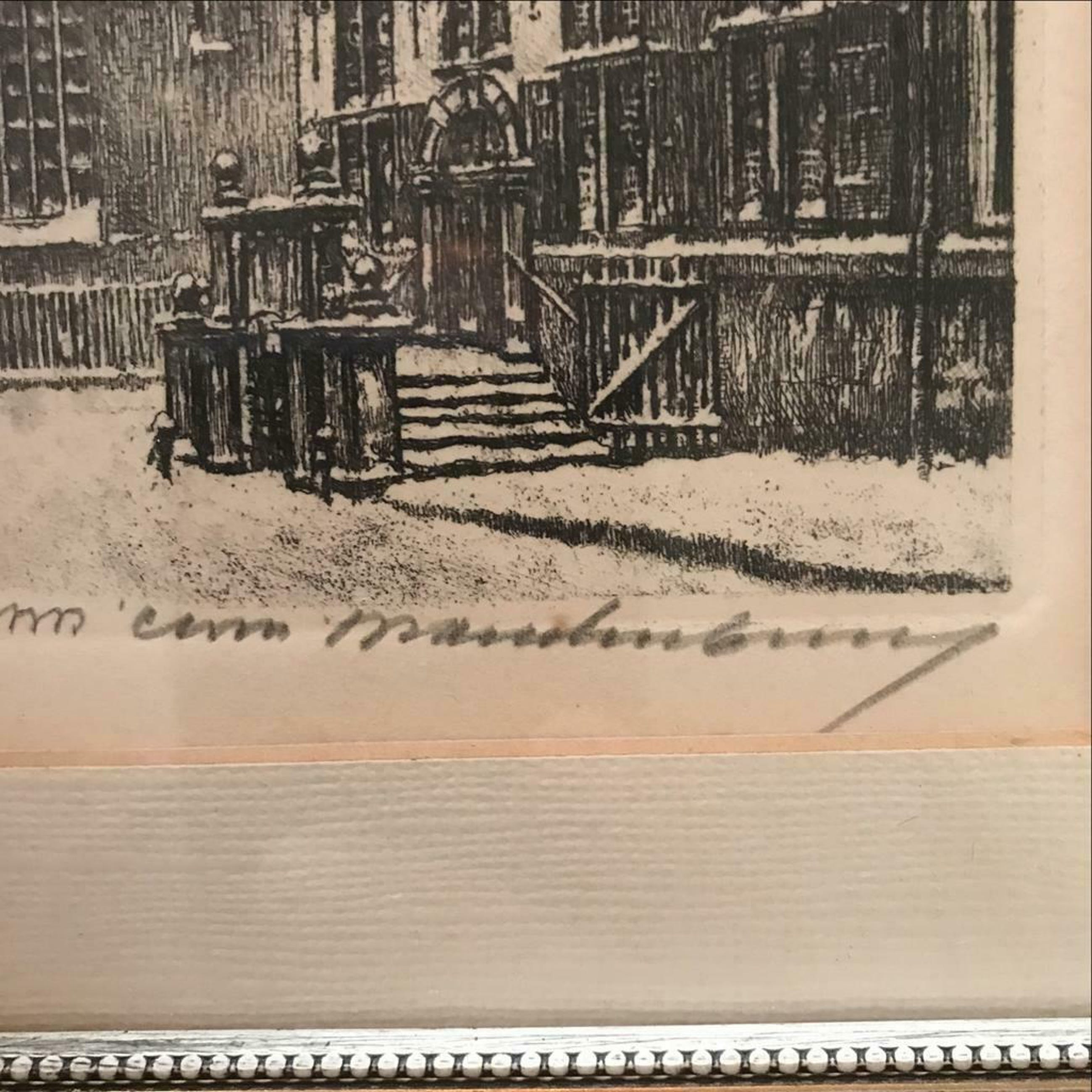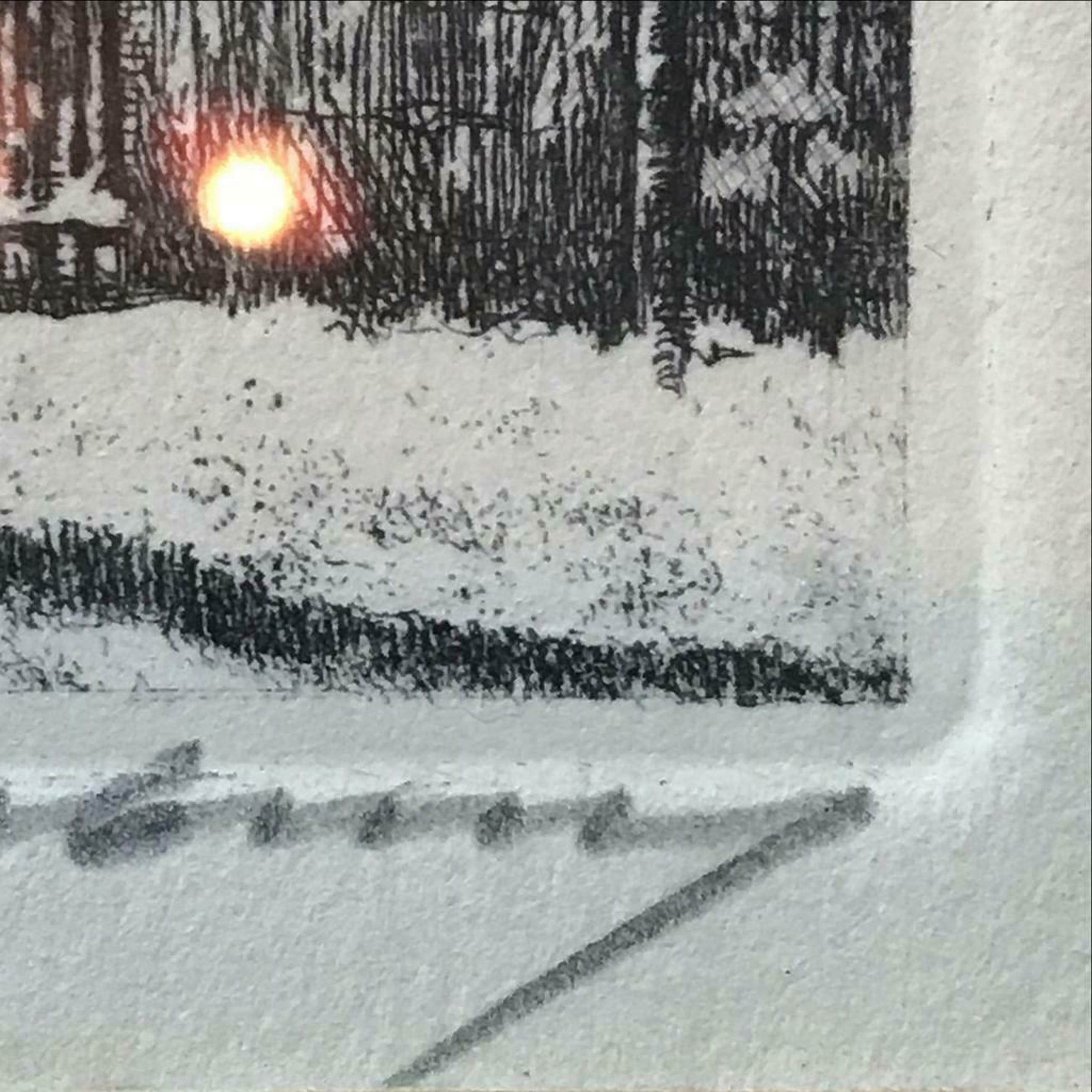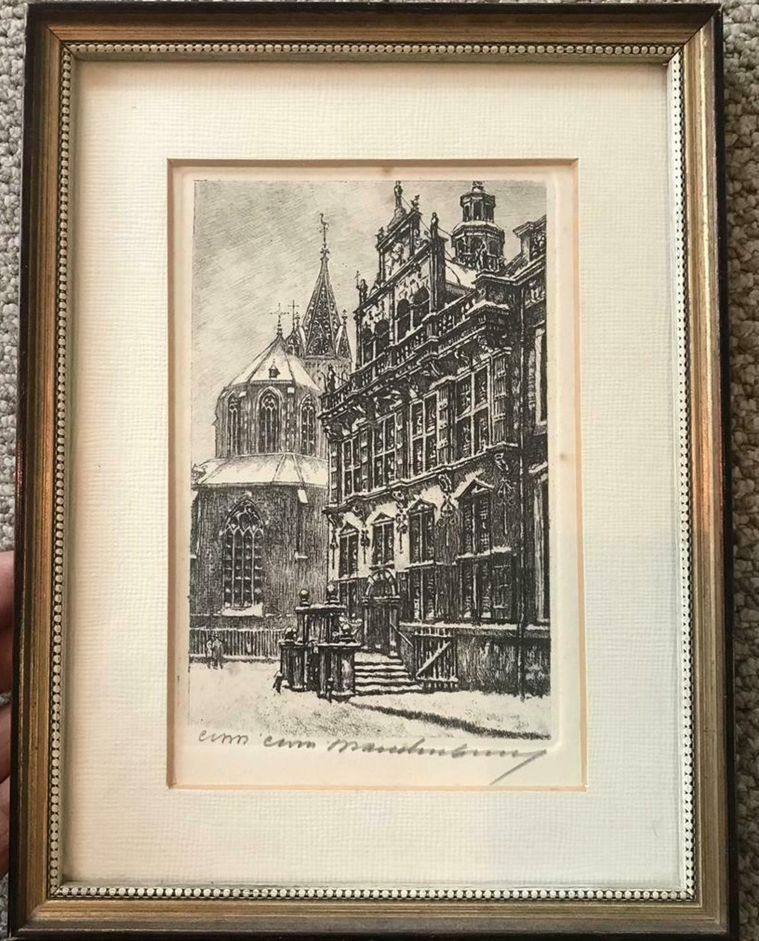 Door de verjaring is de passe-partout en ets iets verkleurd, maar niet storend.