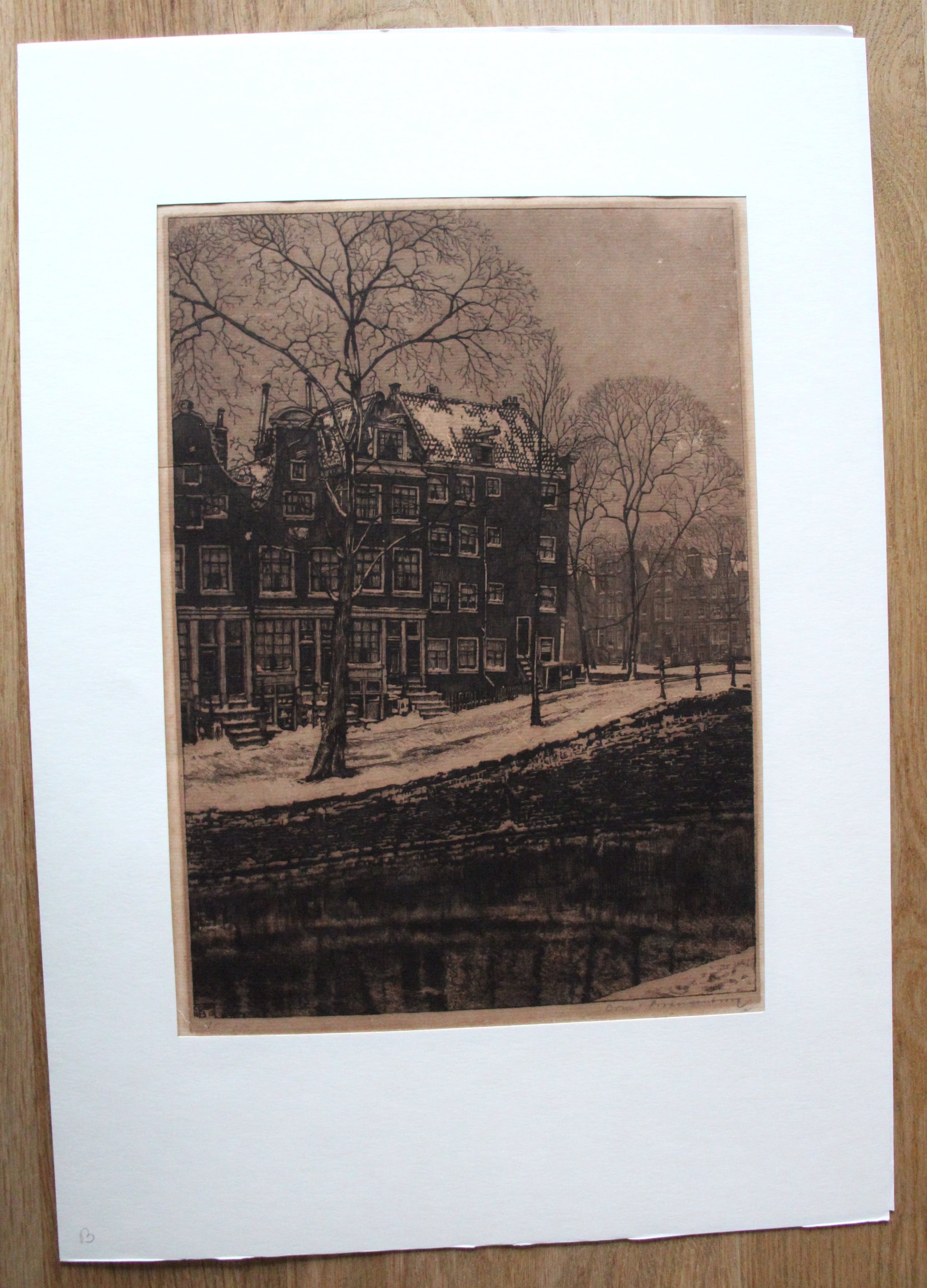 Ets van Cornelis Brandenburg. Een voorstelling van Amsterdam. Jaar: 1913. Afmetingen incl passe-partout: H50.5 x b35cm. Afmetingen voorstelling: H32 x b23cm. Het werk is, rechts onderaan, gesigneerd door de kunstenaar. De authenticiteit van het aangeboden werk wordt volledig gegarandeerd. Een certificaat van echtheid kan, op aanvraag, worden gemaild.