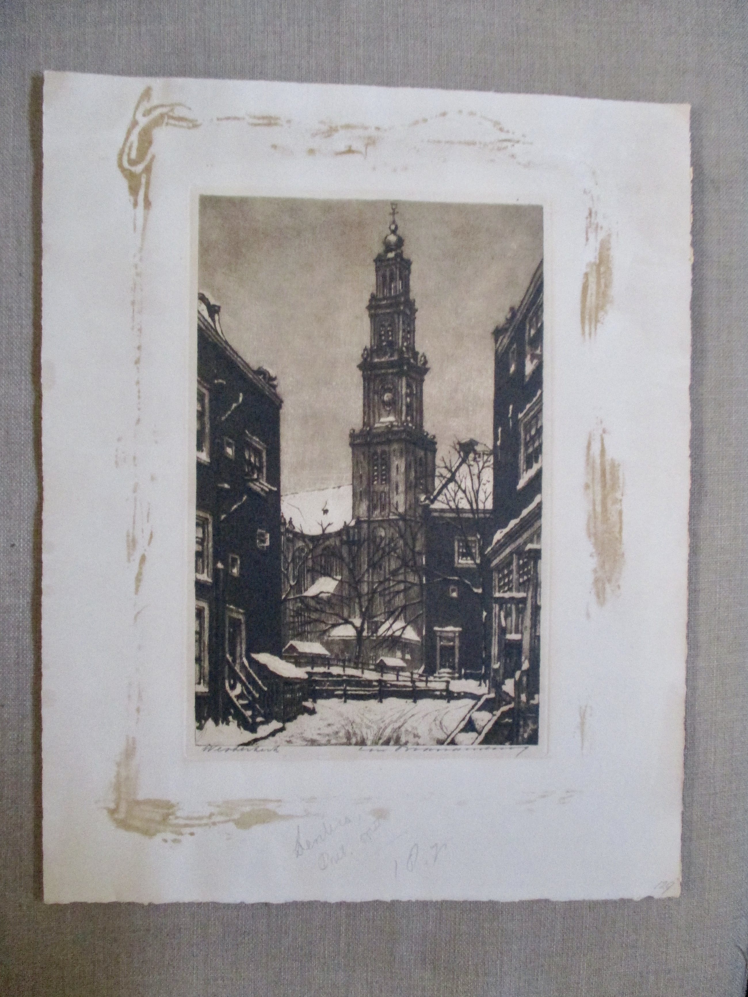 Ets van Cor Brandenburg, getiteld en gesigneerd in potlood. verzending tussen twee platen, 8,25, aangetekend 10,20