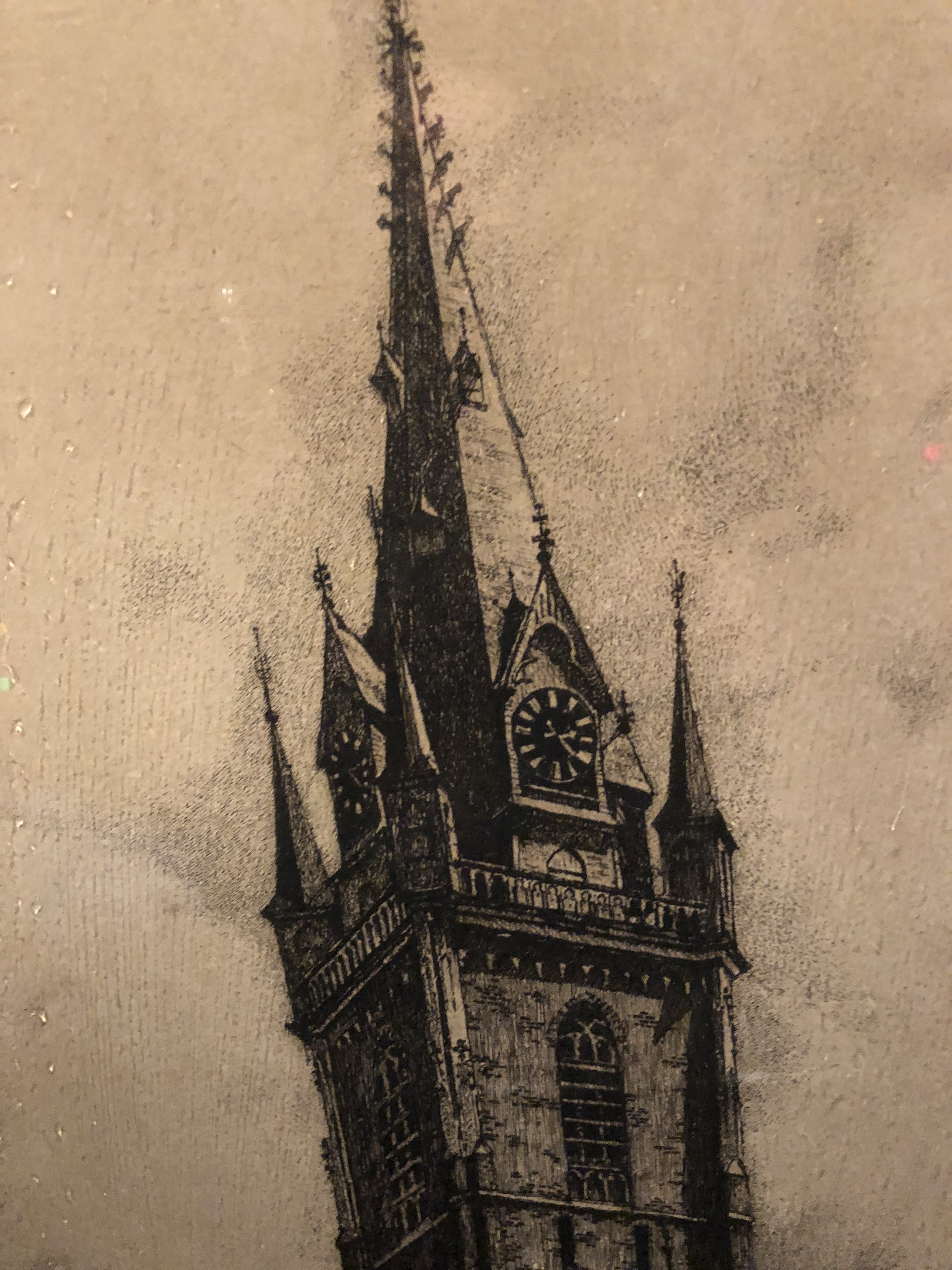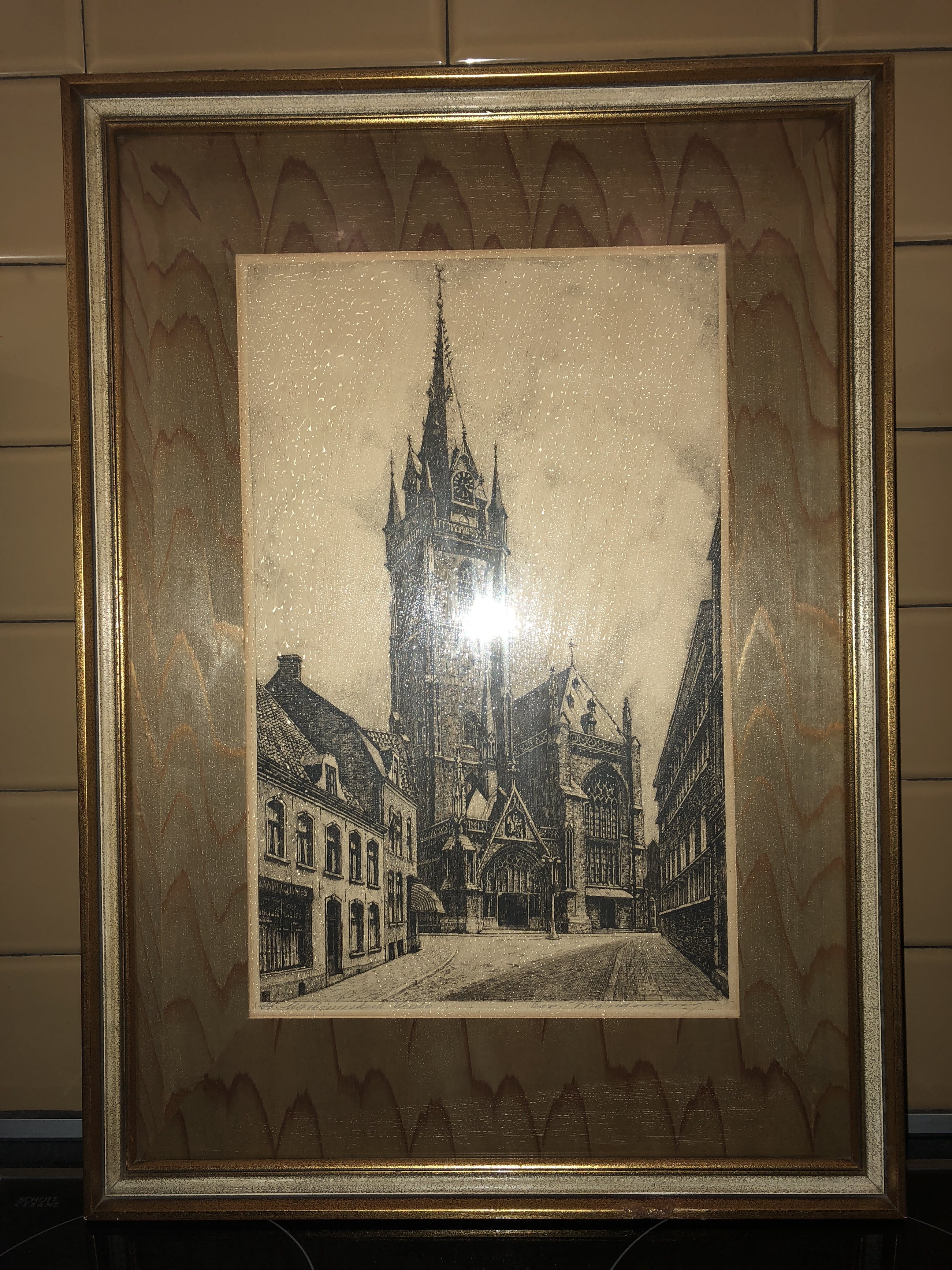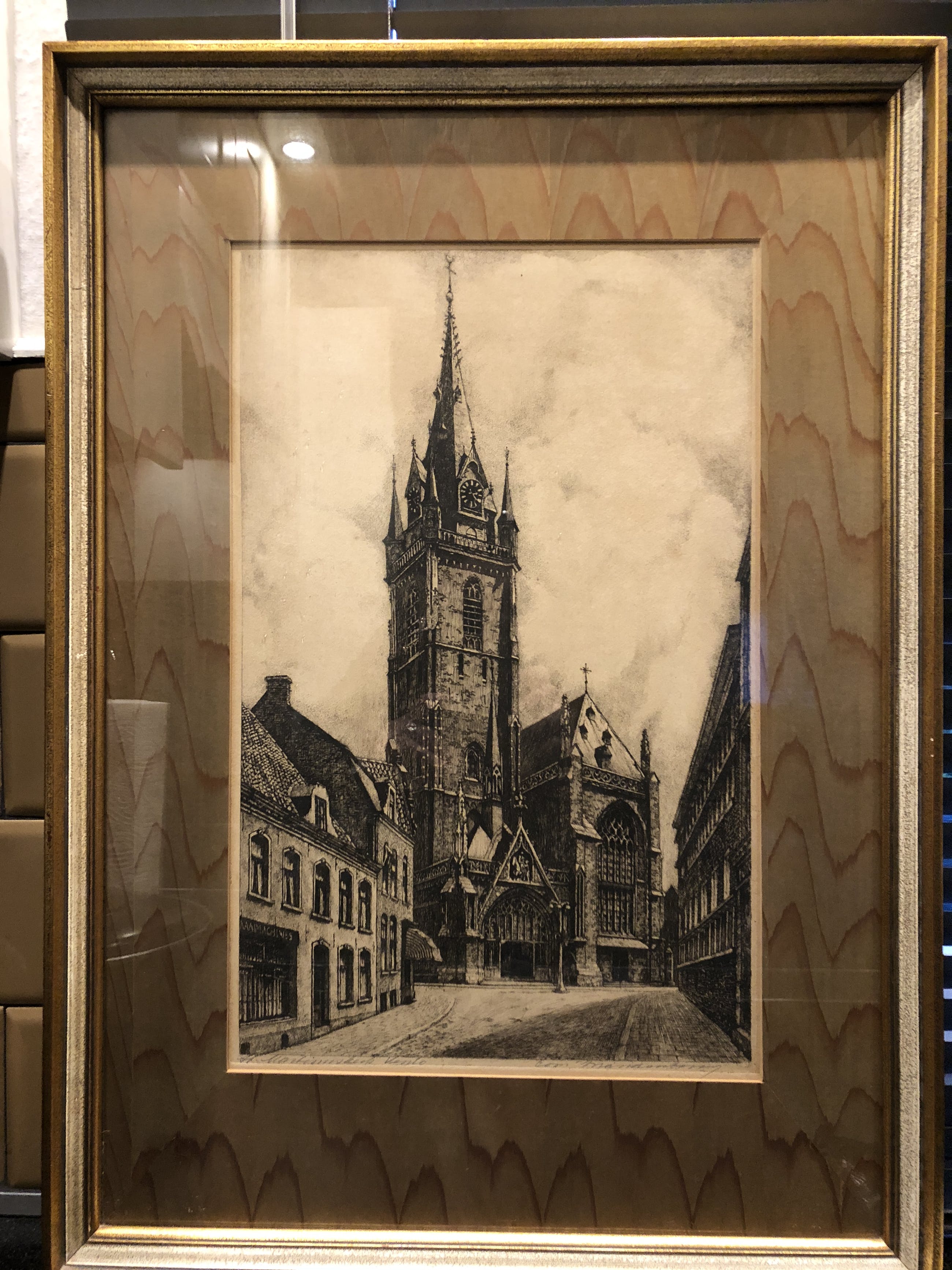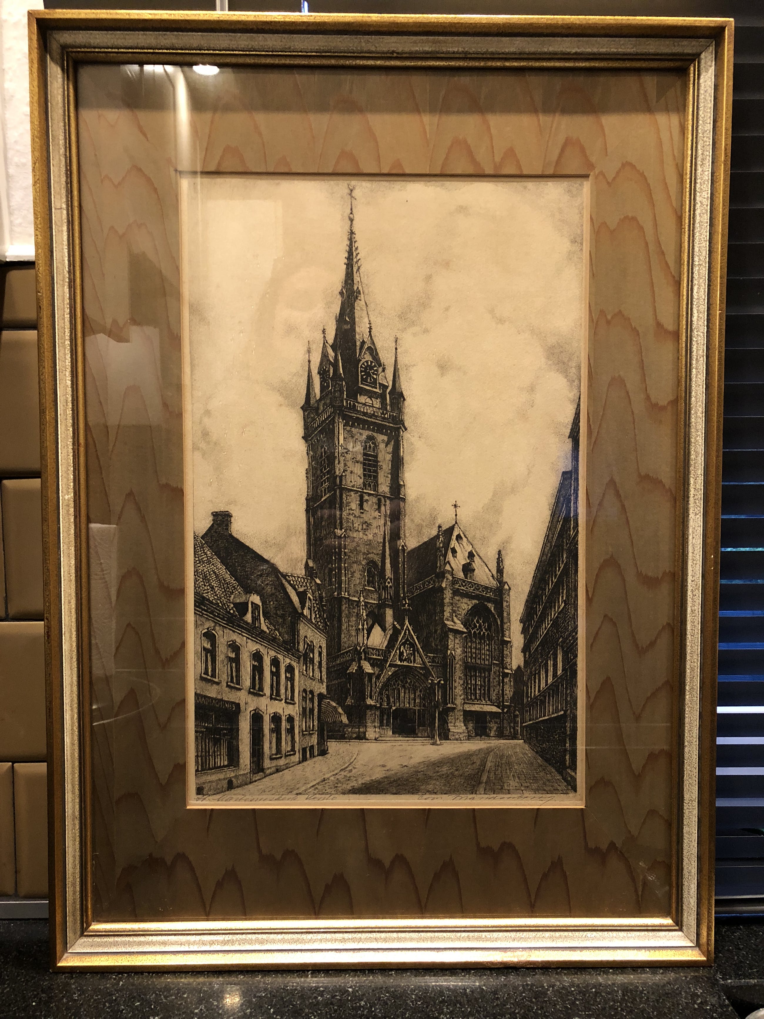 Ets van de Martinuskerk in Venlo. Deze ets wordt beschreven en geïllustreerd in zijn boek onder het nummer: CB 255 M. De ets is in potlood getekend. Ets: 43 x 27 cm. prachtig ingelijst met hout passepartout