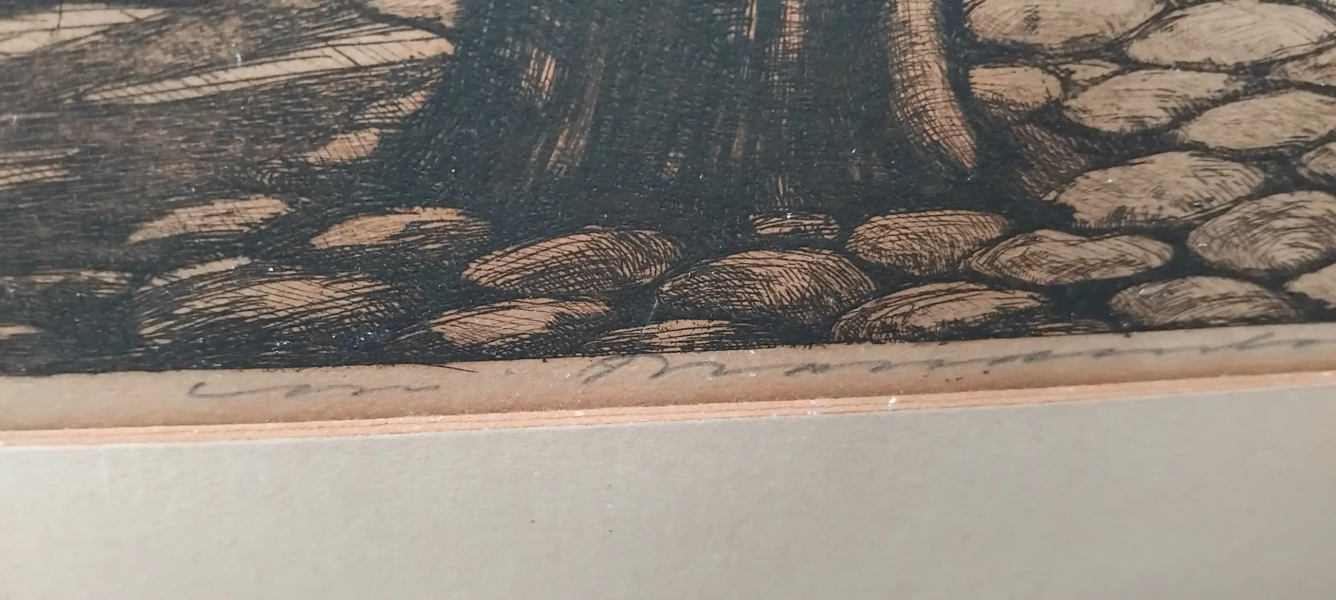 De afbeelding meet 42 × 53 cm en wordt geleverd met passe-partout en lijst (62 × 73 cm).