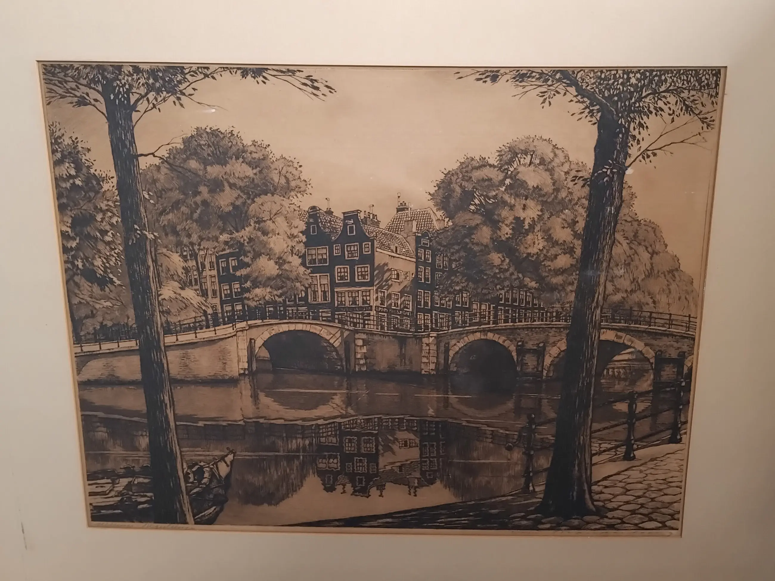 Rechtsonder is het werk door de kunstenaar met potlood gesigneerd, linksonder staat in potlood de titel “Keizersgracht – Reguliersgracht”.