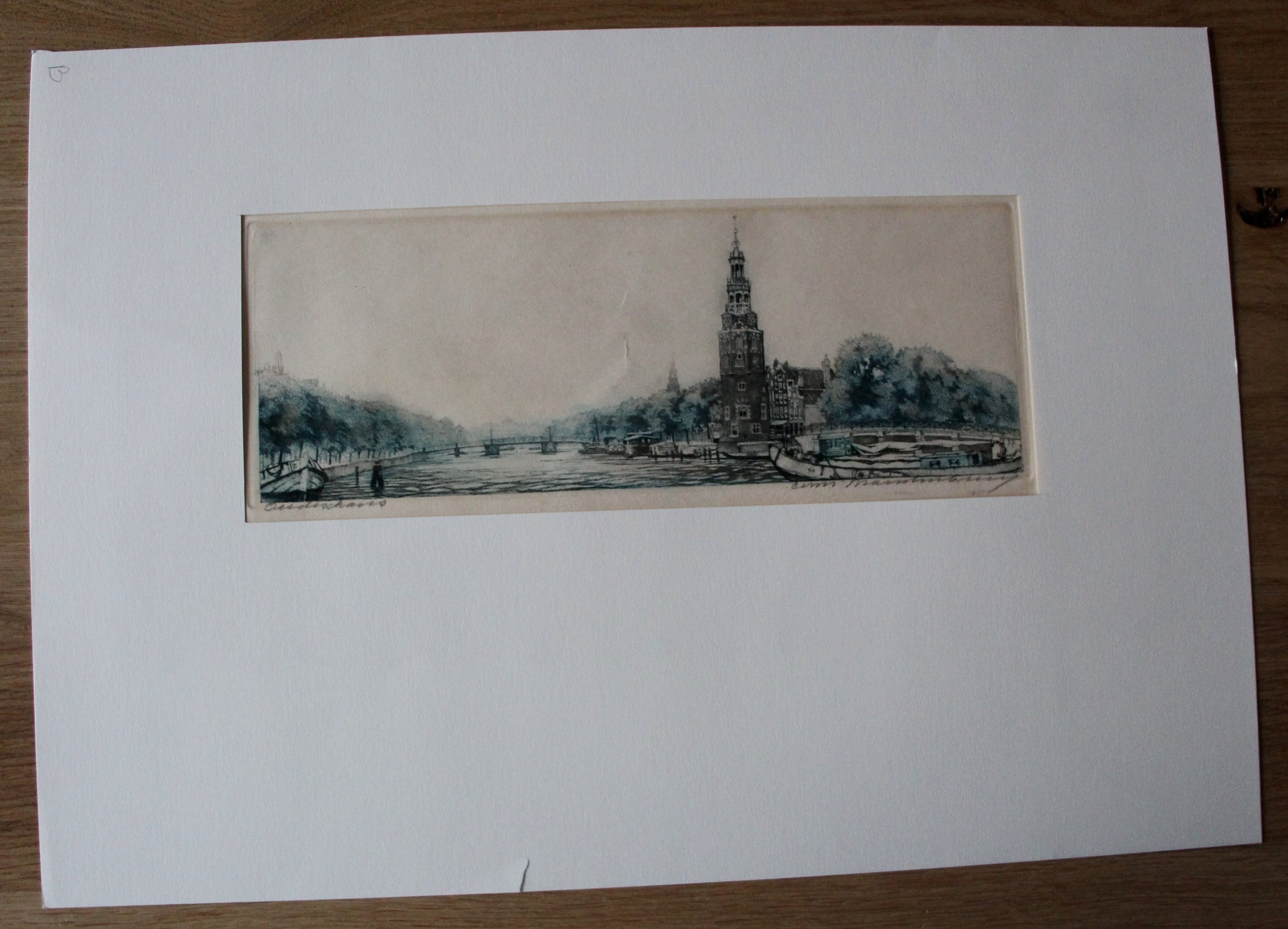 Ets van Cornelis Brandenburg. Titel: Oudeschans Amsterdam. Afmetingen incl passepartout: H35 x b50cm. Afmetingen voorstelling: H11 x b31cm. Het werk is, rechts onderaan, gesigneerd door de kunstenaar. De authenticiteit van het aangeboden werk wordt volledig gegarandeerd. Een certificaat van echtheid kan, op aanvraag, worden gemaild.