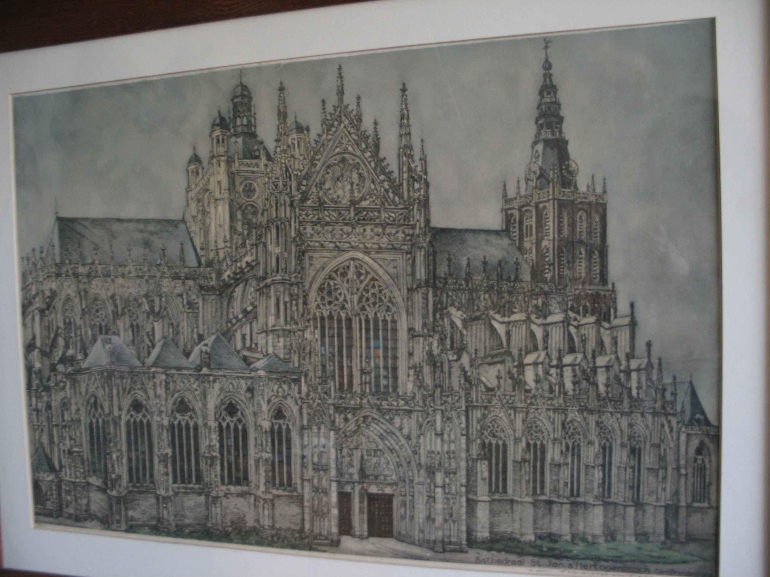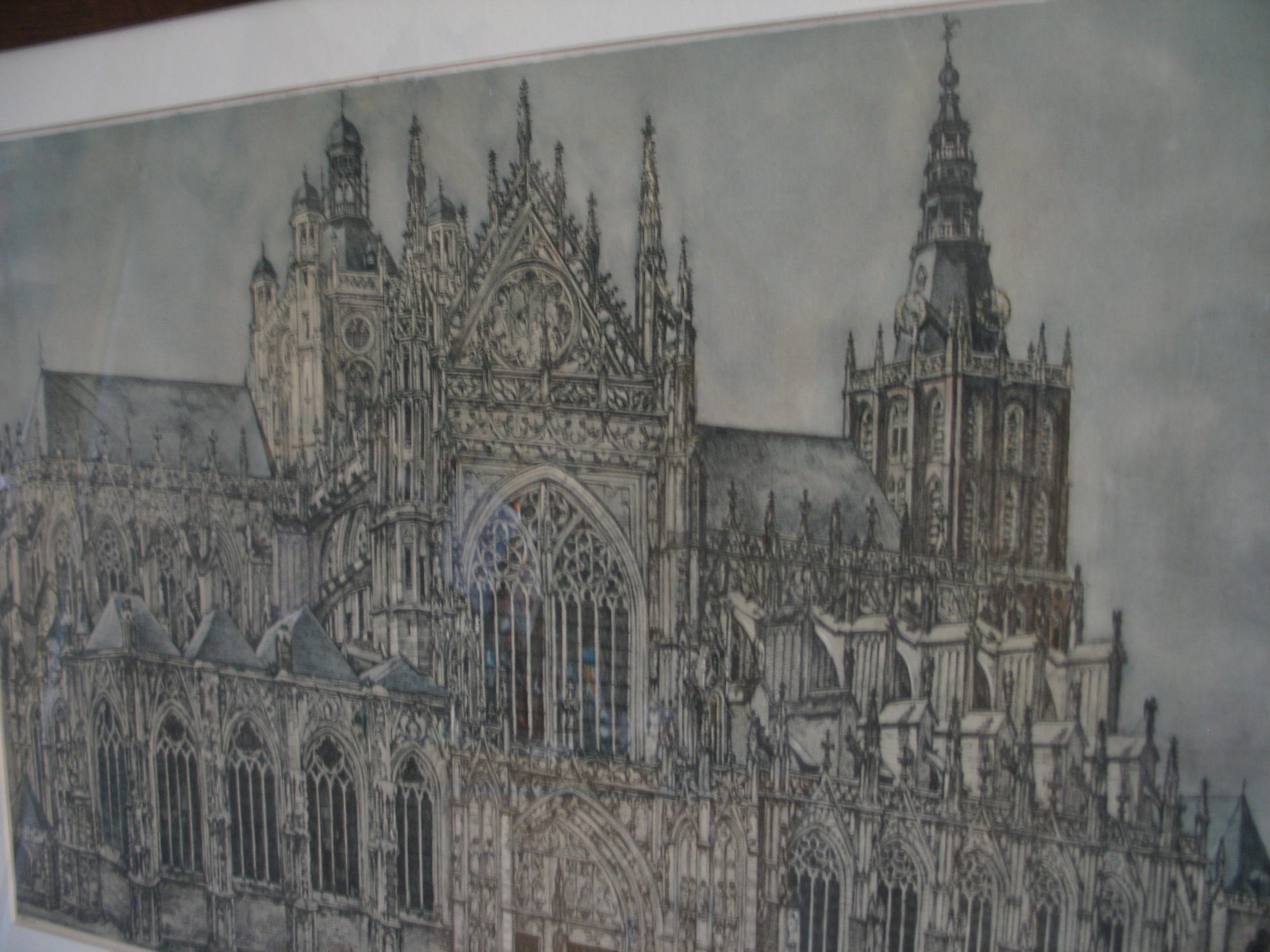 Deze lithografie is beschreven en afgebeeld in zijn boek met als titel "Cornelis Brandenburg ( 1884 - 1954 ) - Boekje een aanzet tot een monografie en een oeuvre overzicht". In deze kleurenlithografie van de Sint Jan uit Den Bosch zijn prachtige details terug te vinden.