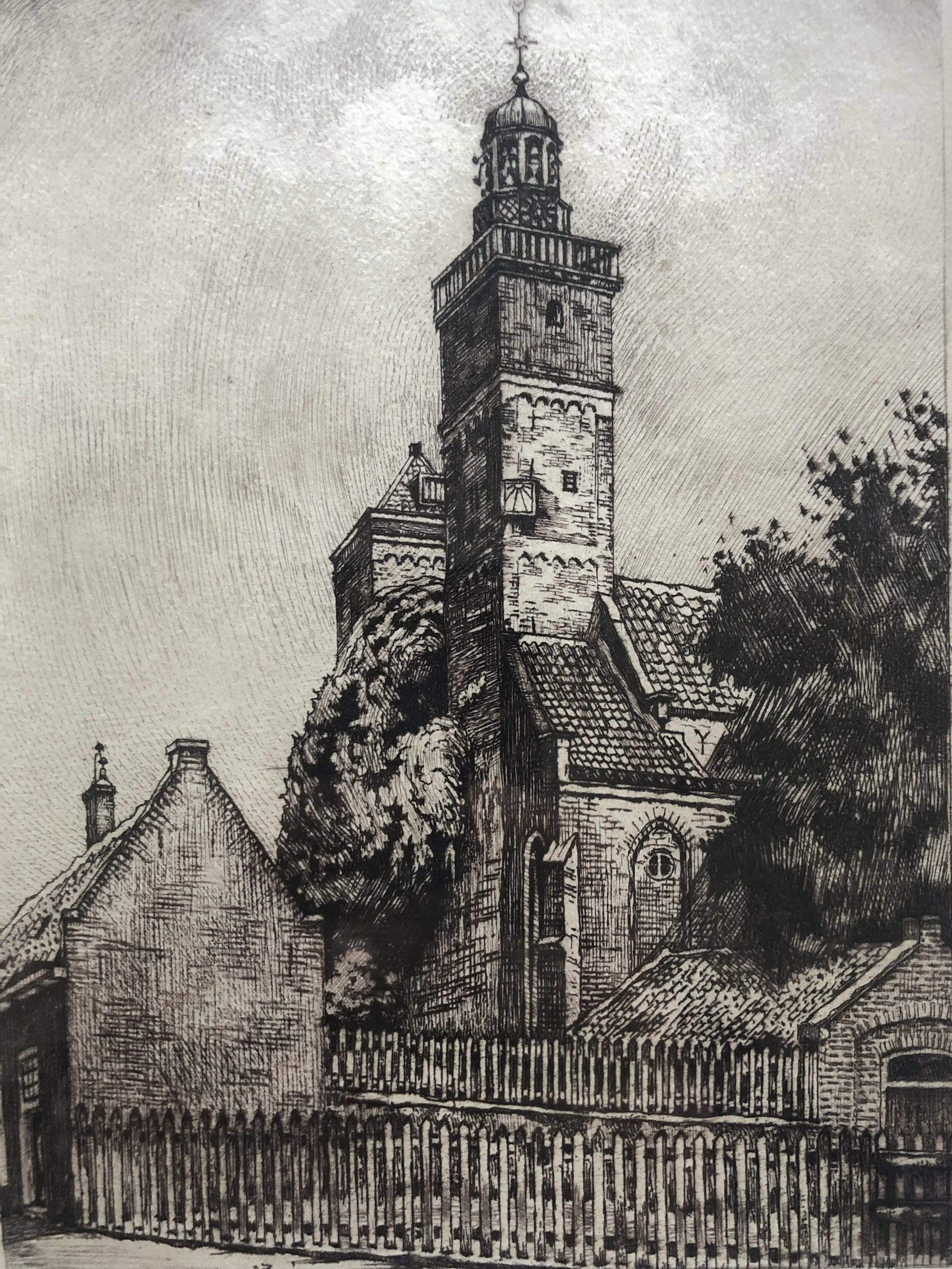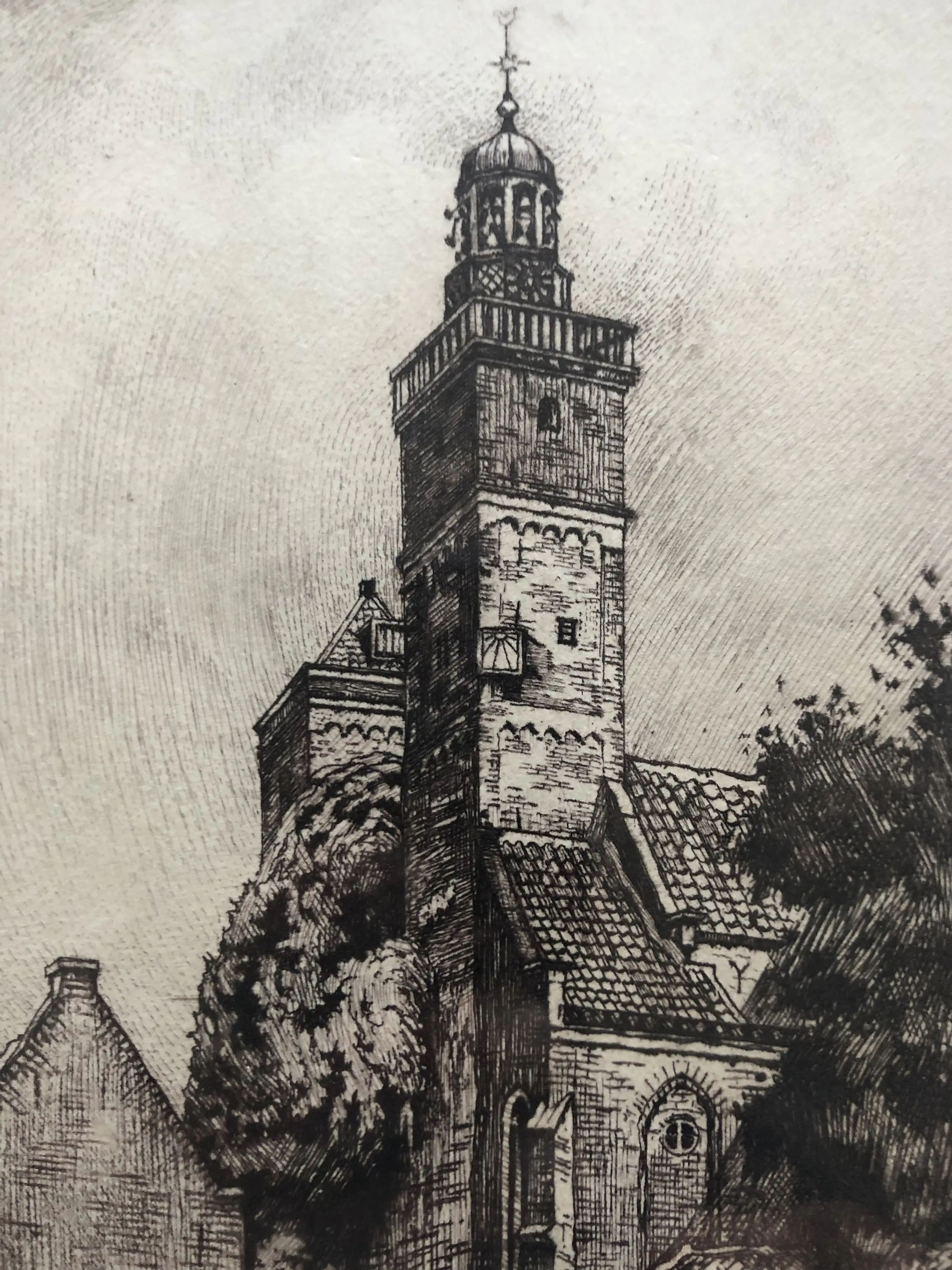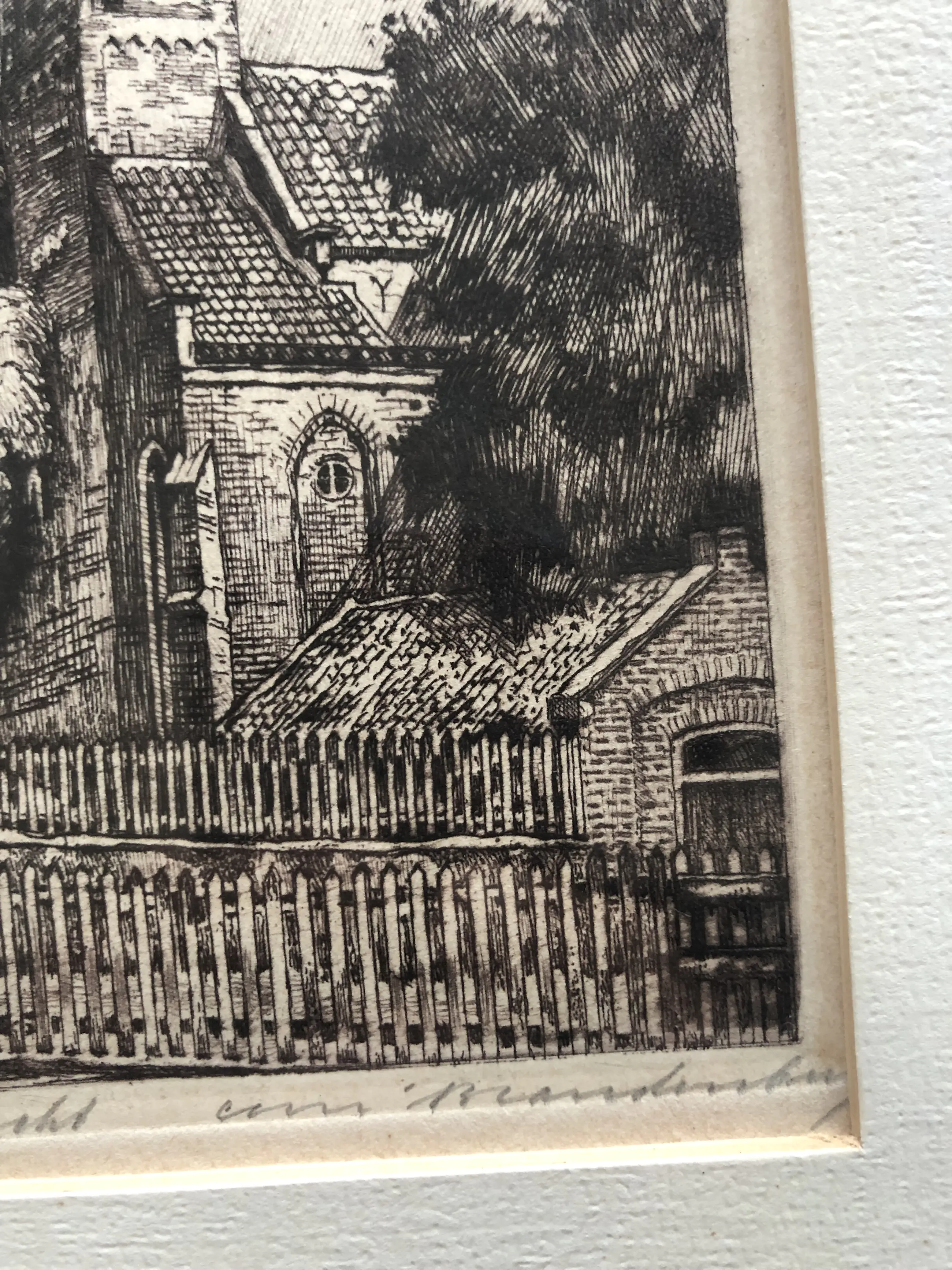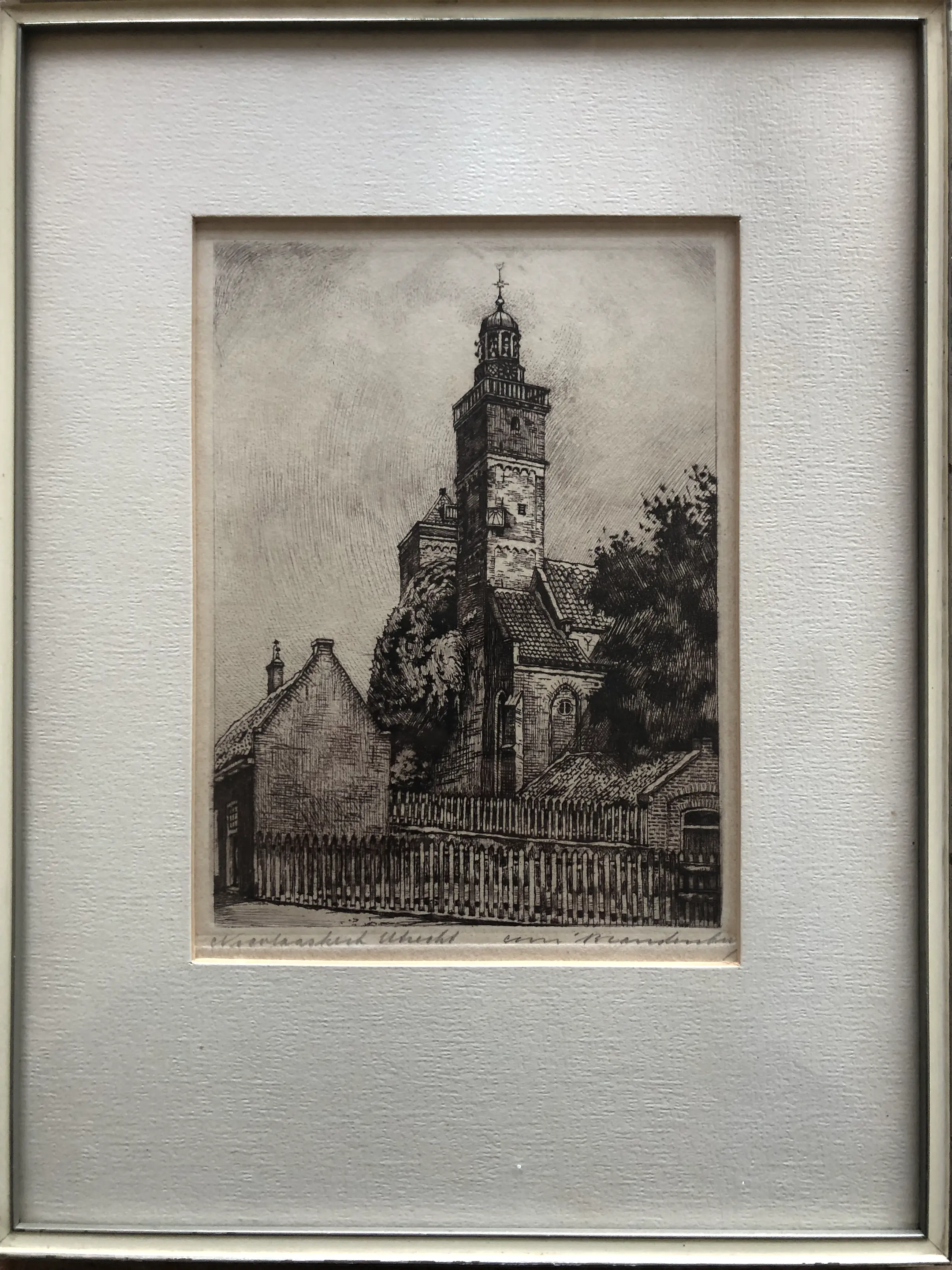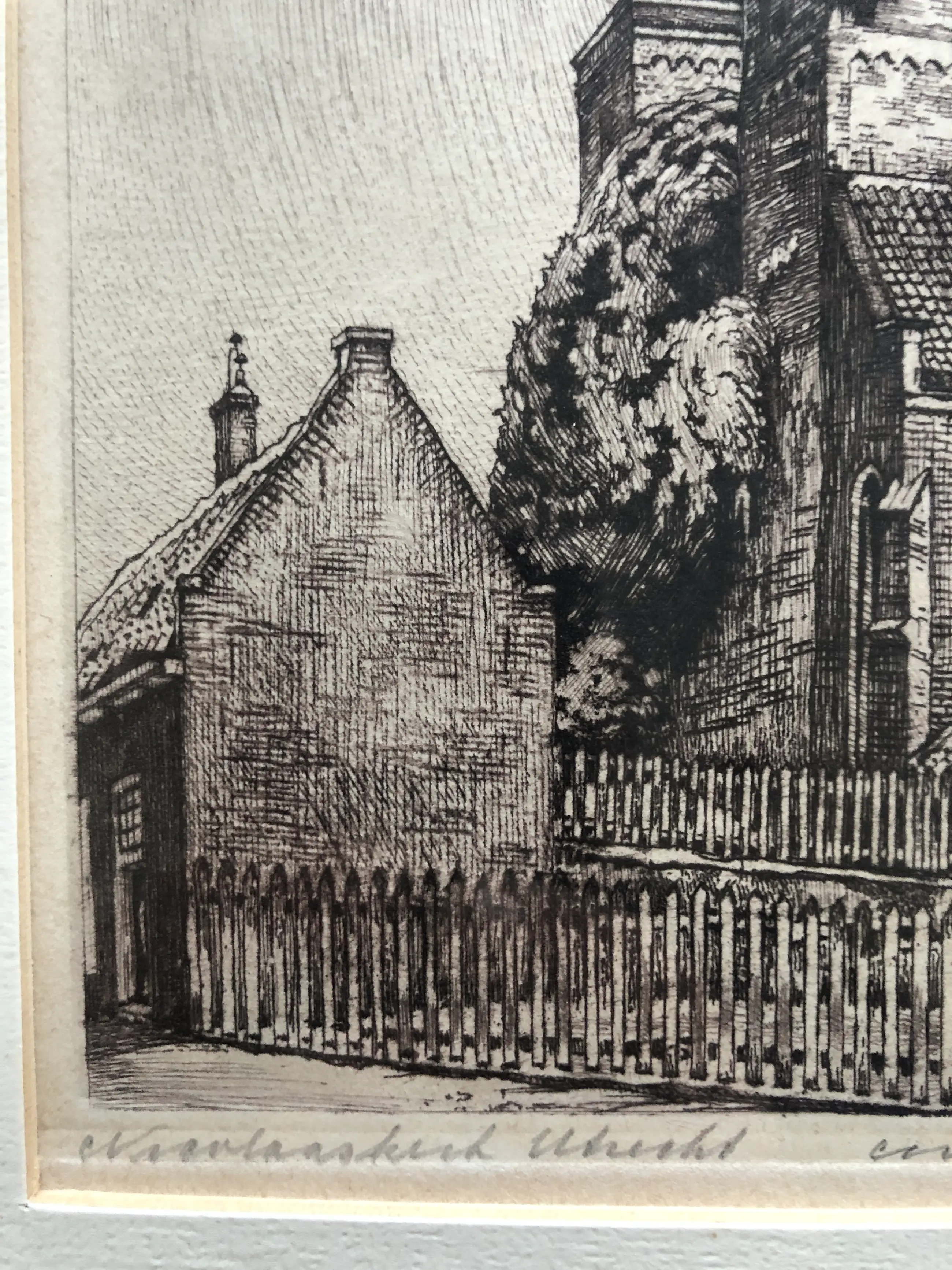 Ets van de Nicolaaskerk of Nicolaïkerk in Utrecht van de hand van meester-etser Cornelis Brandenburg.