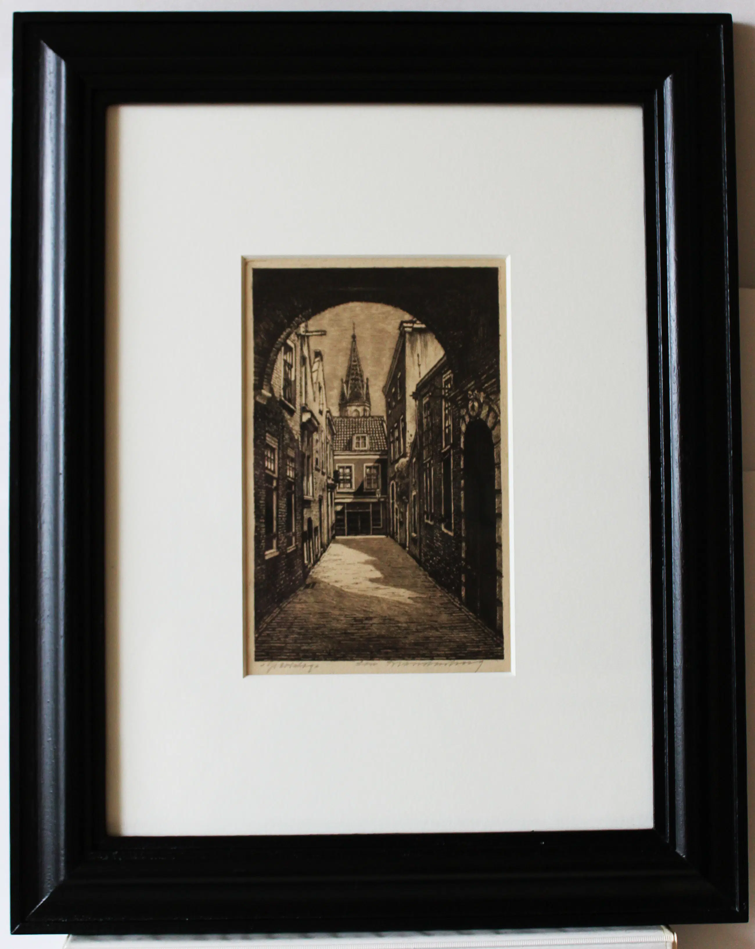 Ingelijst met passepartout en zuurvrije materialen.