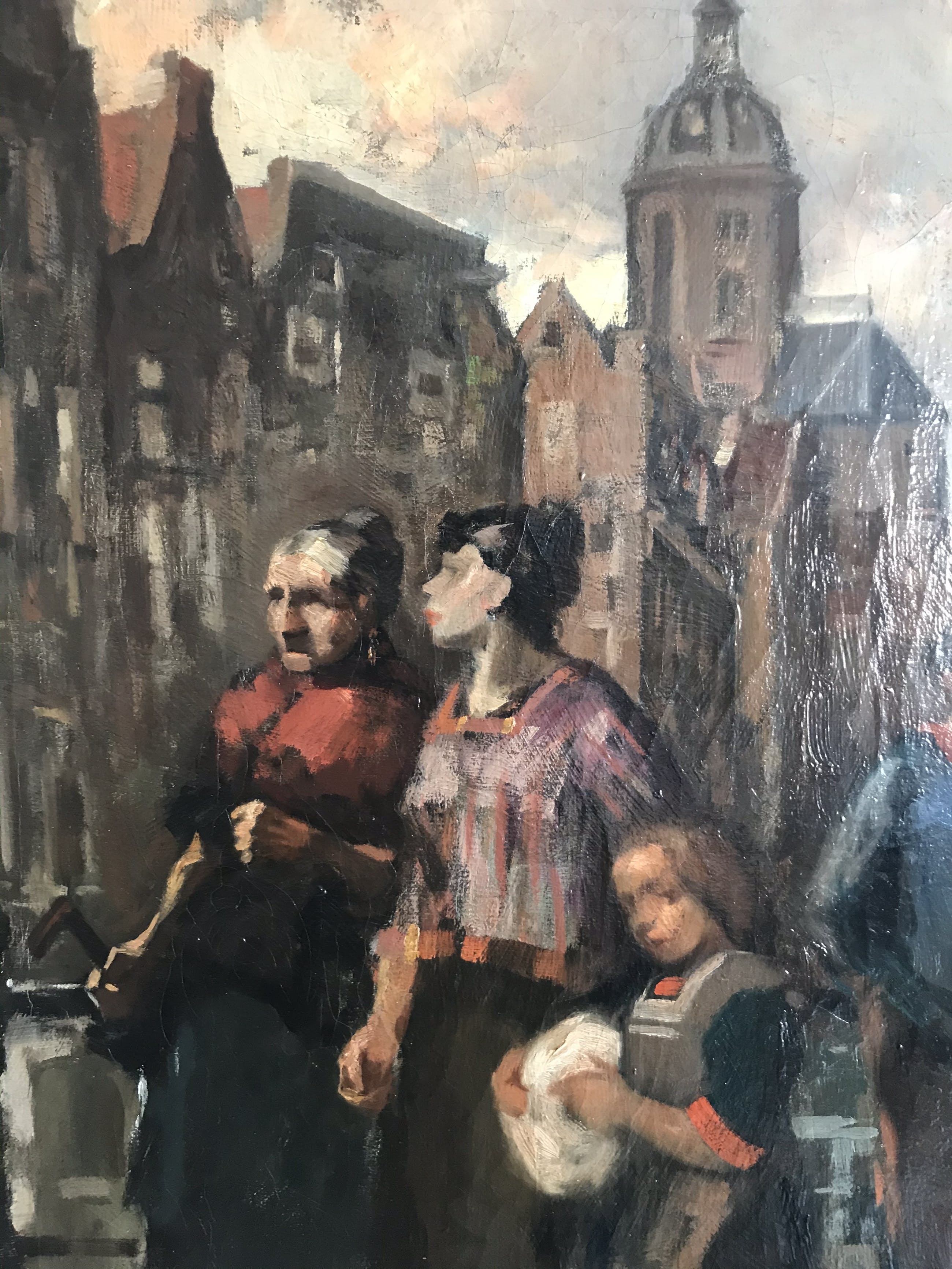 Werk van Cornelis de Bruin, stadzicht amsterdam. Gesigneerd