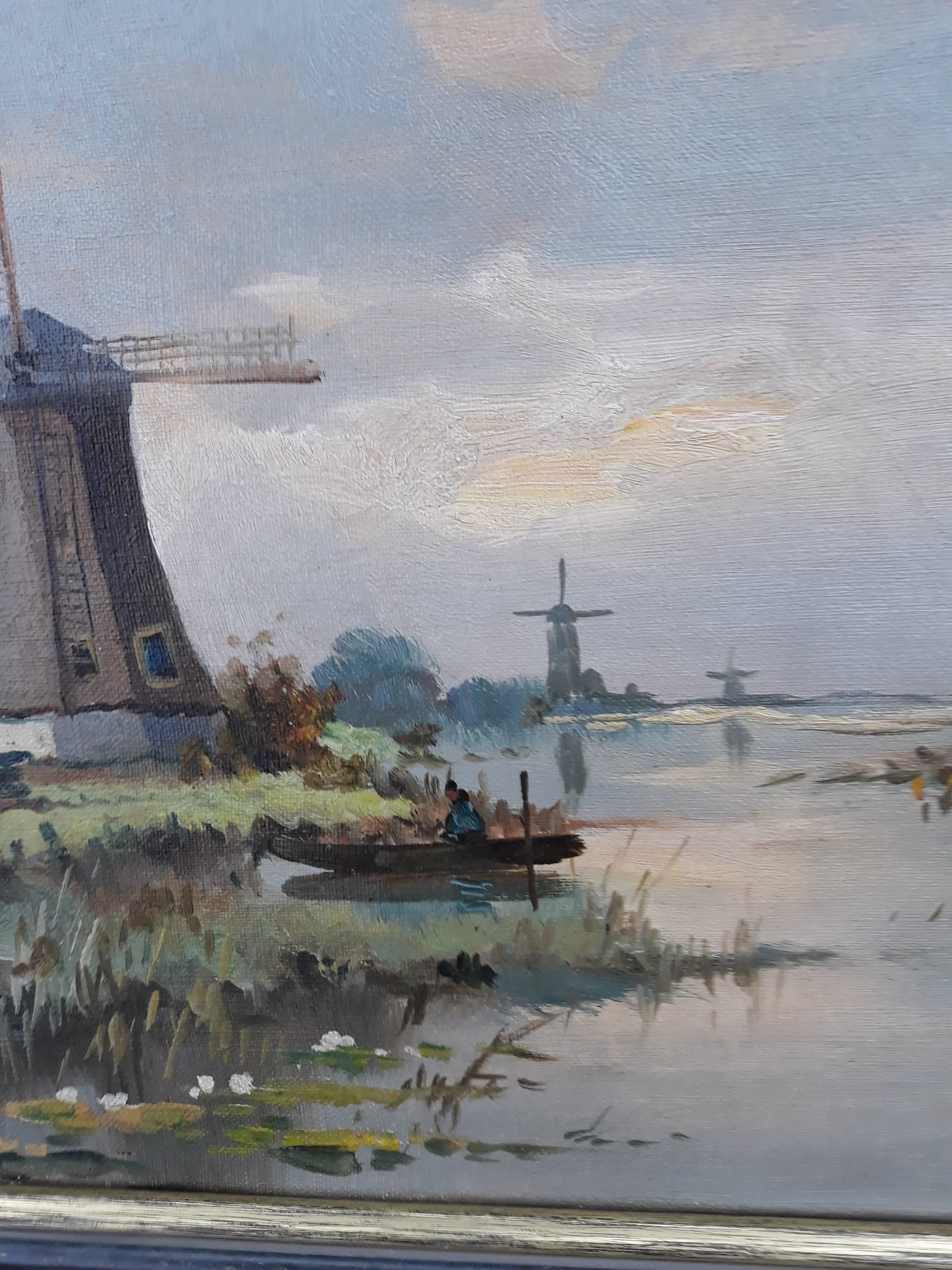 Prachtig Hollands plasgezicht met molens van A ter Helm gesigneerd met pseudoniem C de Zeeuw. Is in goede staat wel oude restauratie.Meet 30 bij 49 cm leuke lijst. Echt goed geschilderd typisch werk van hem.