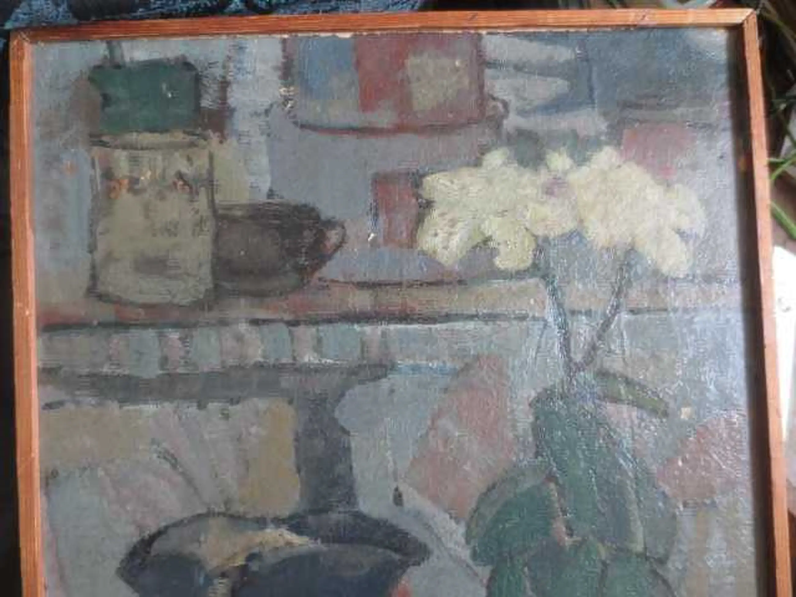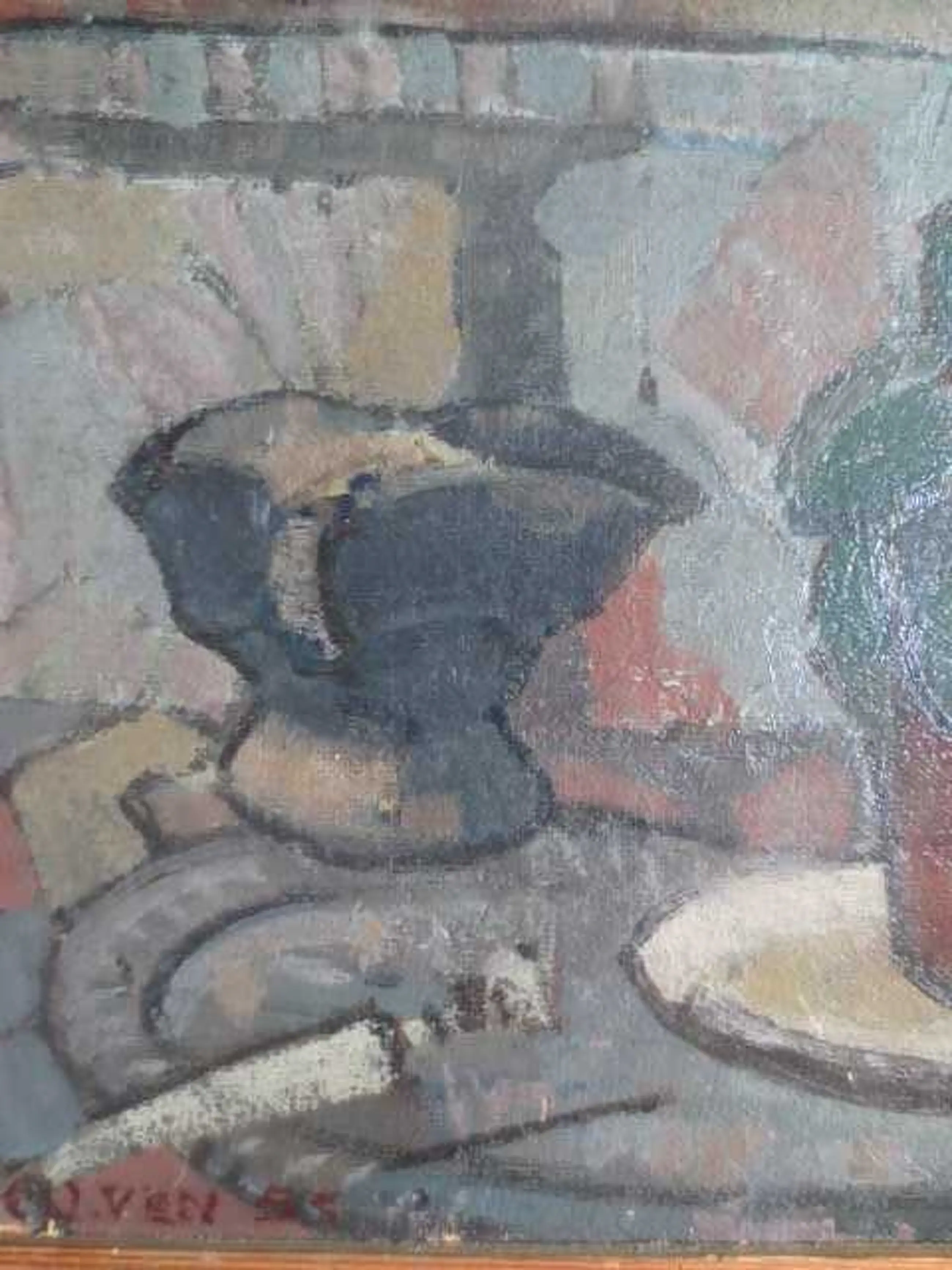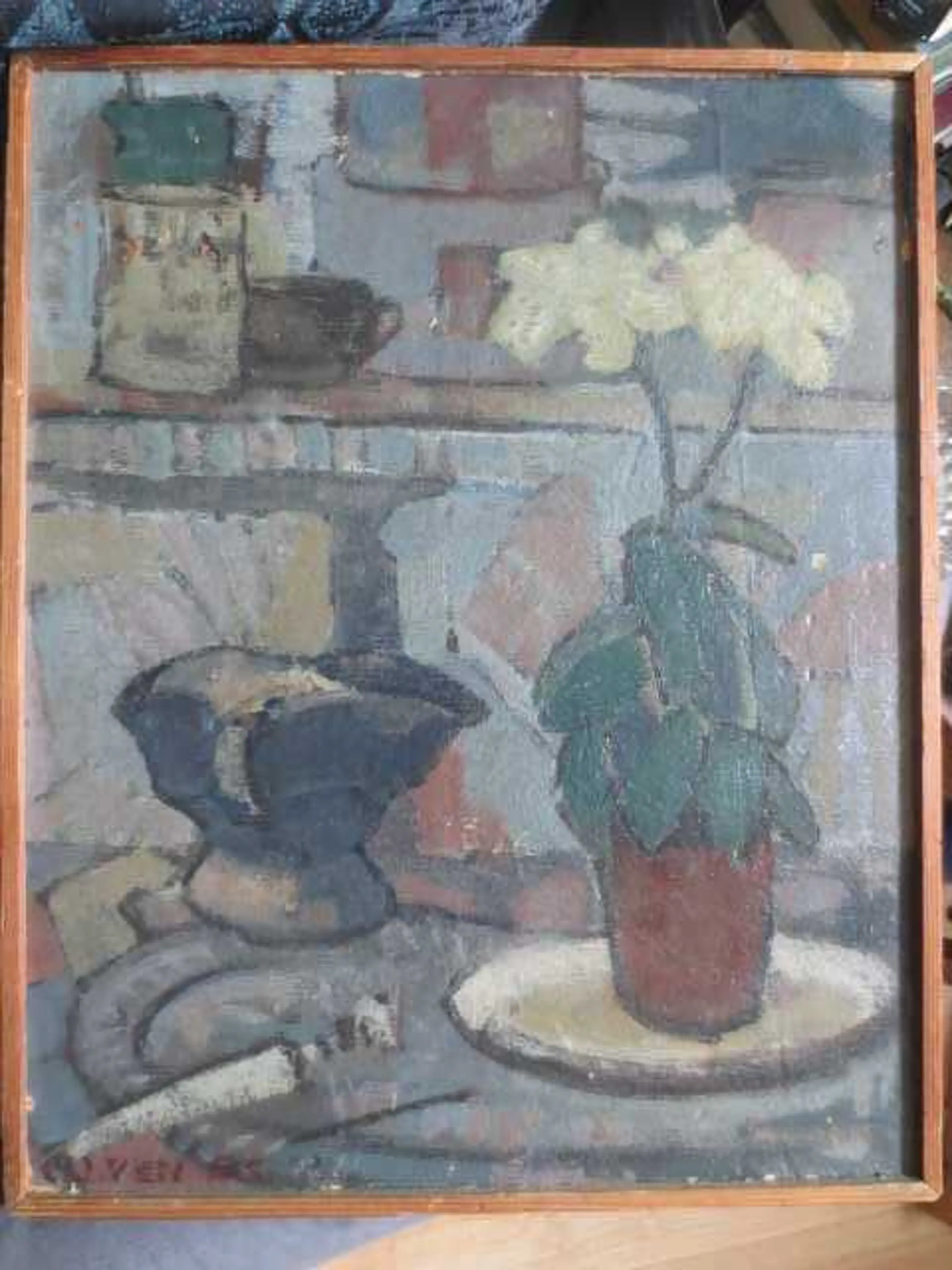 C(ornelis) D(irk) Ven (1898-1981) Olieverf op Board Stilleven Pot en Test 1953