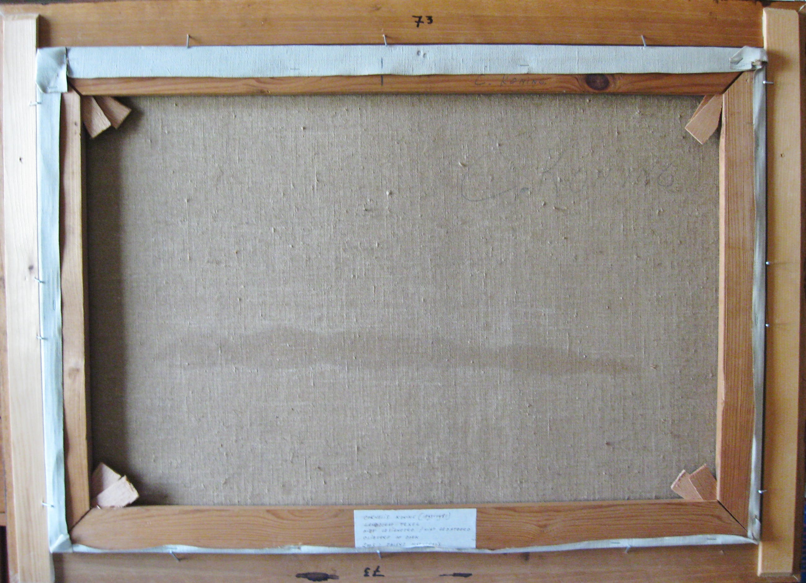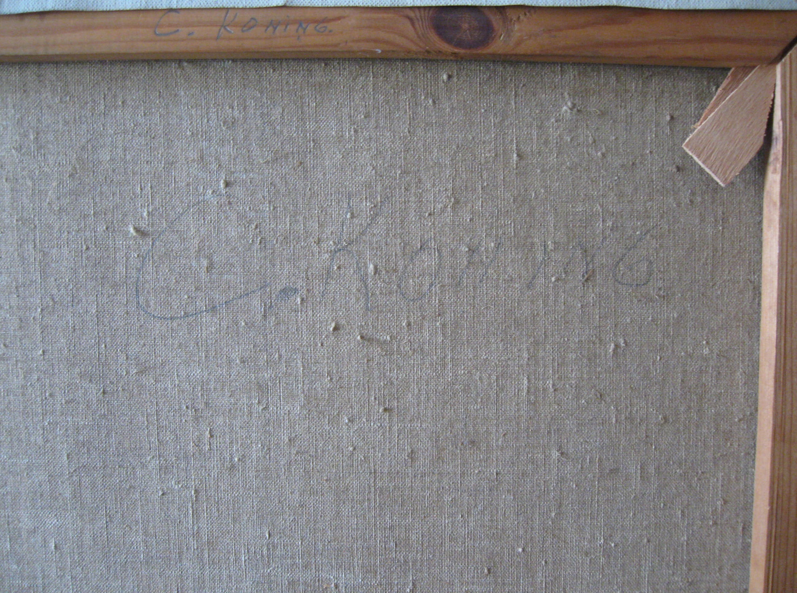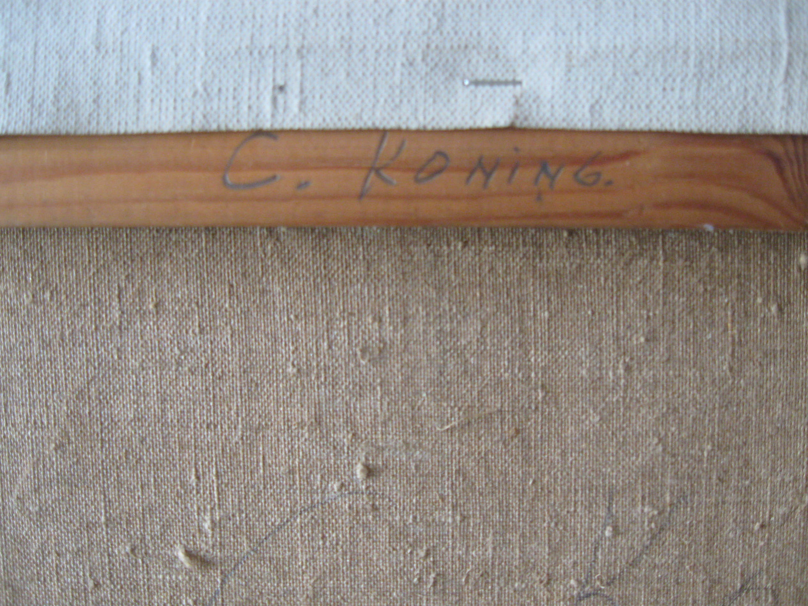 Schilderij zit goed opgespannen op het raam en is in 2005 schoongemaakt en opnieuw gevernist.