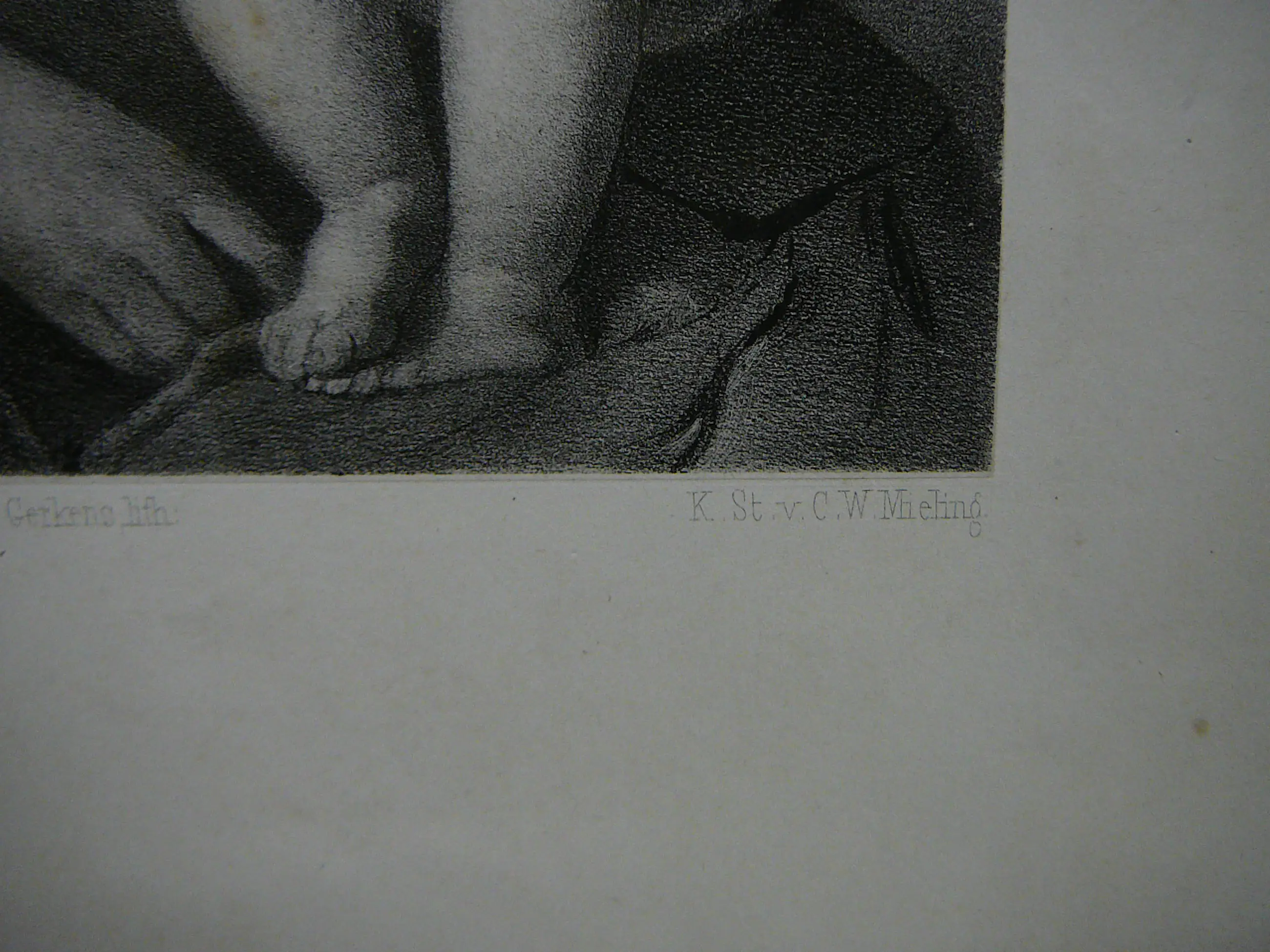 Mooie litho naar een schilderij van C Kruseman door J.C.d"Armand Gerkens en gedrukt door C.W.Mieling afm papier 26 x 35 cm