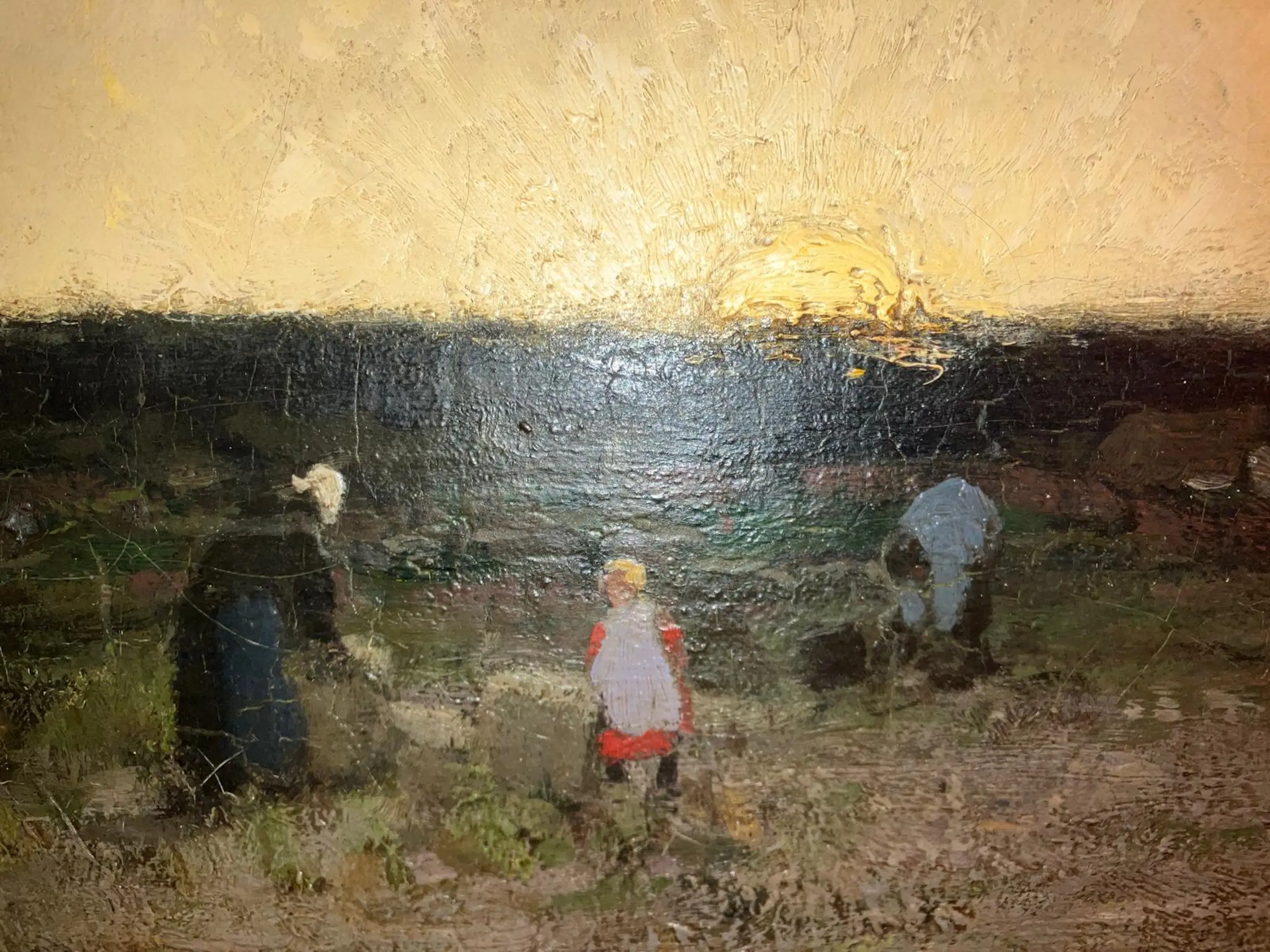 Cornelis Kuypers - Boerenfamilie op het land bij zonsondergang