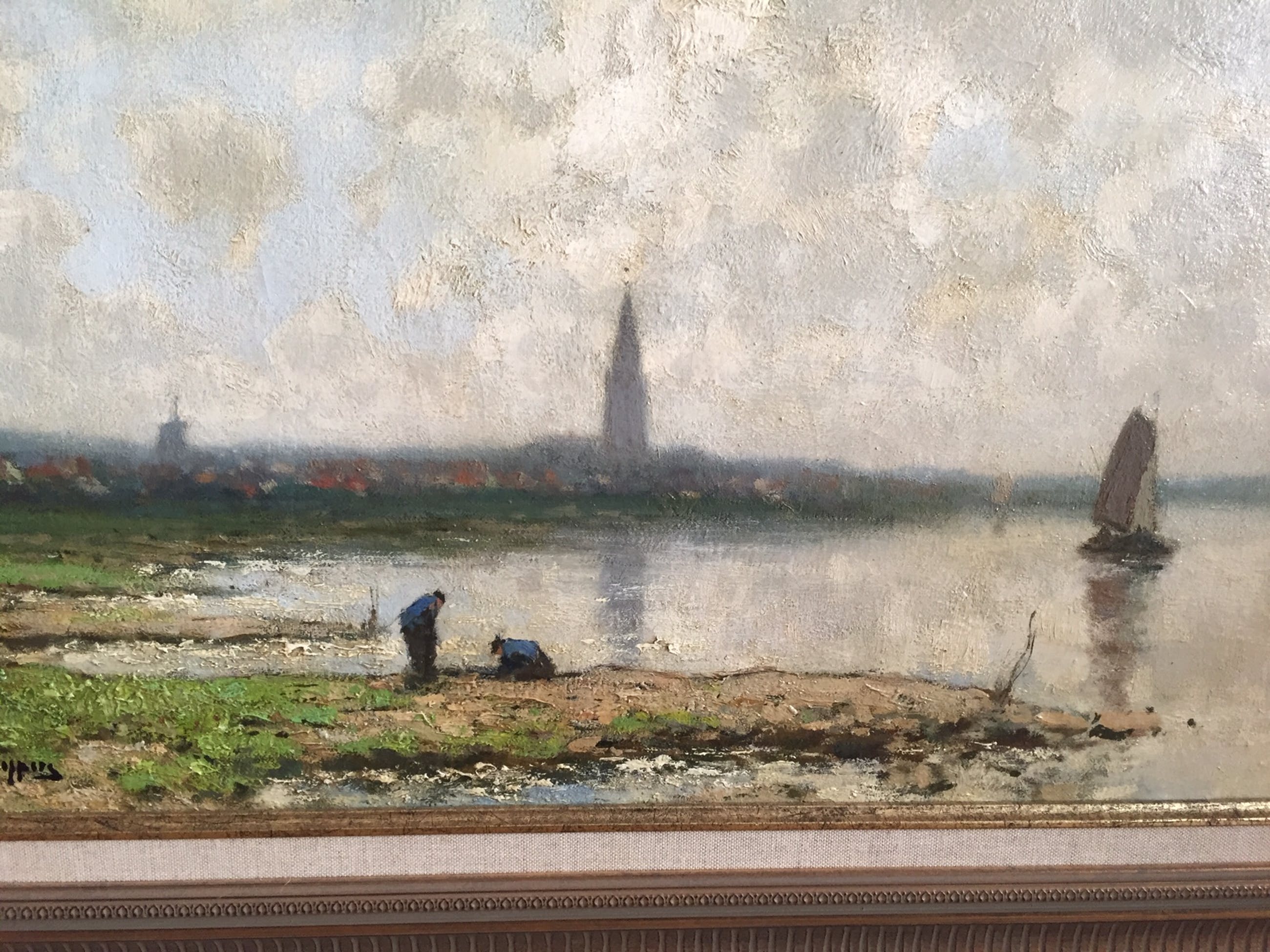 Dit aansprekende schilderij is typisch voor Kuypers: een watergezicht met daarin wat vage, aan het landschap ondergeschikte figuren en lichte wolkenpartijen. Het schilderij komt uit een erfenis en is in de jaren '80 aangekocht bij een galerij. In lijstjes van familiebezittingen komt het schilderij voor onder zowel de naam 'Zicht op de IJssel' als 'Schelpenzoekers'. Geen aankoopbon of certificaat van echtheid meer beschikbaar.