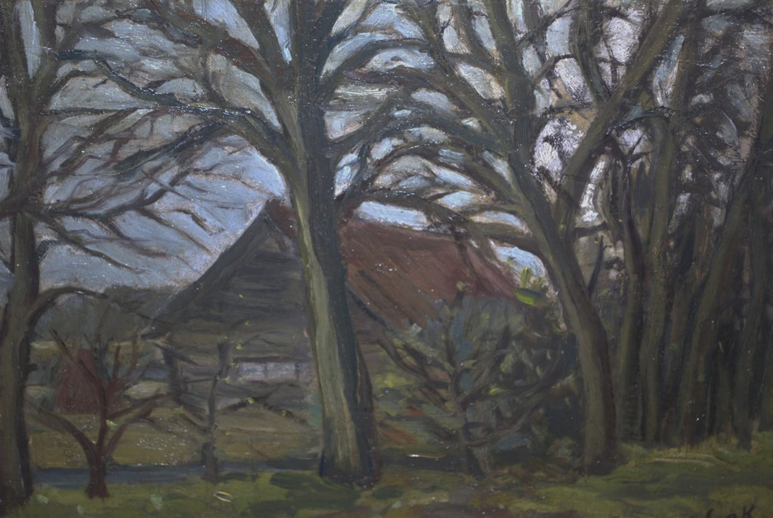 Boerderij met bomen door Cornlis Leendert Vonk (Texel 1888-Hilversum 1964), leerling van Isaac Naarden (1902-1982)
