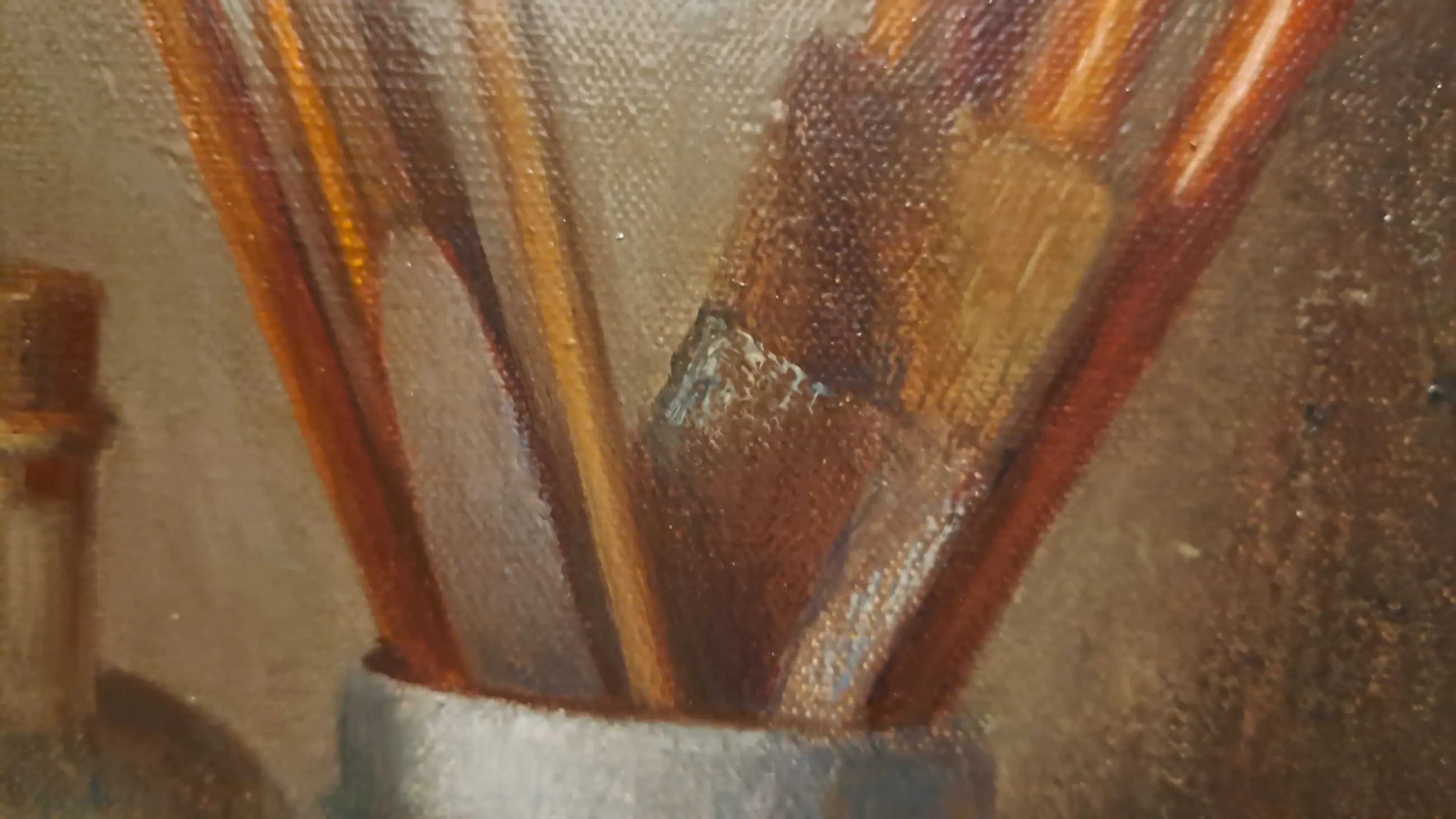 Zowel lijst als schilderij zijn nog goed in orde, De authenticiteit van het werk kan niet met zekerheid worden vastgesteld, maar lijkt wel in orde.